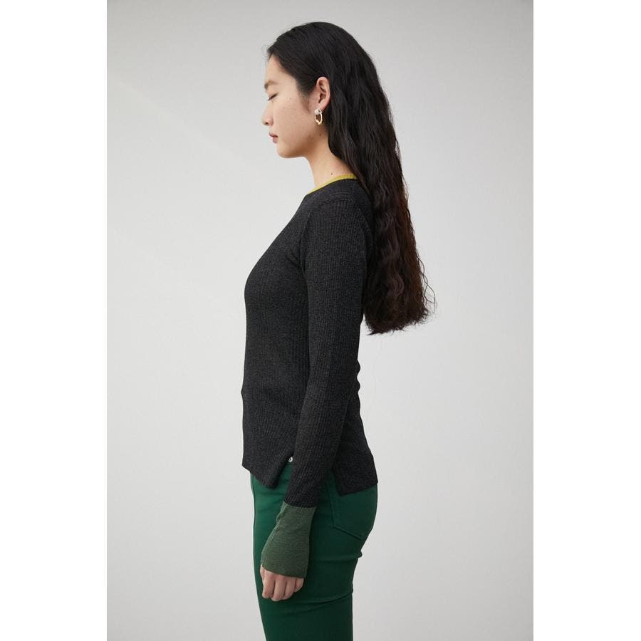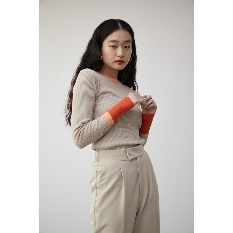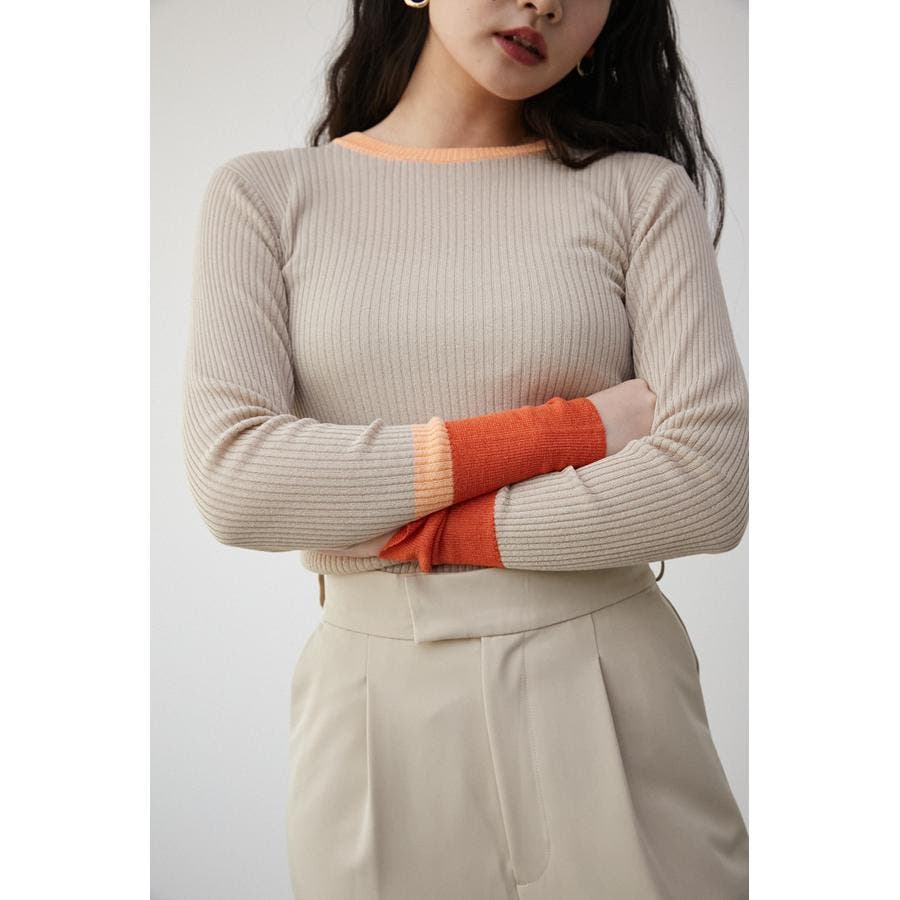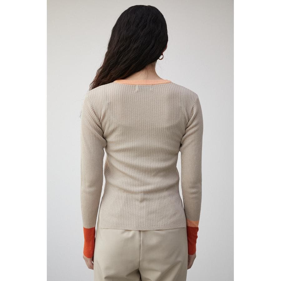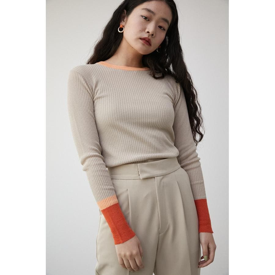 ・程よいラメ感と配色使いが特徴のシアーリブニットです。
