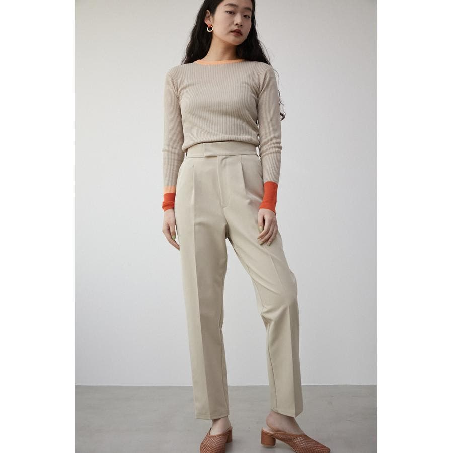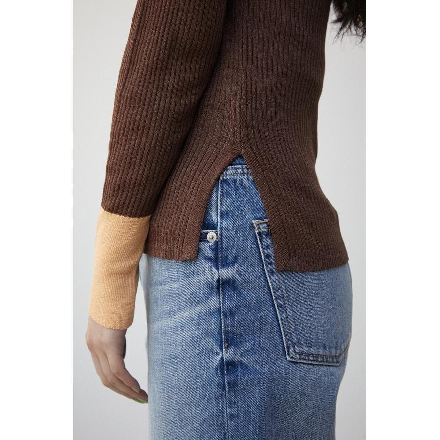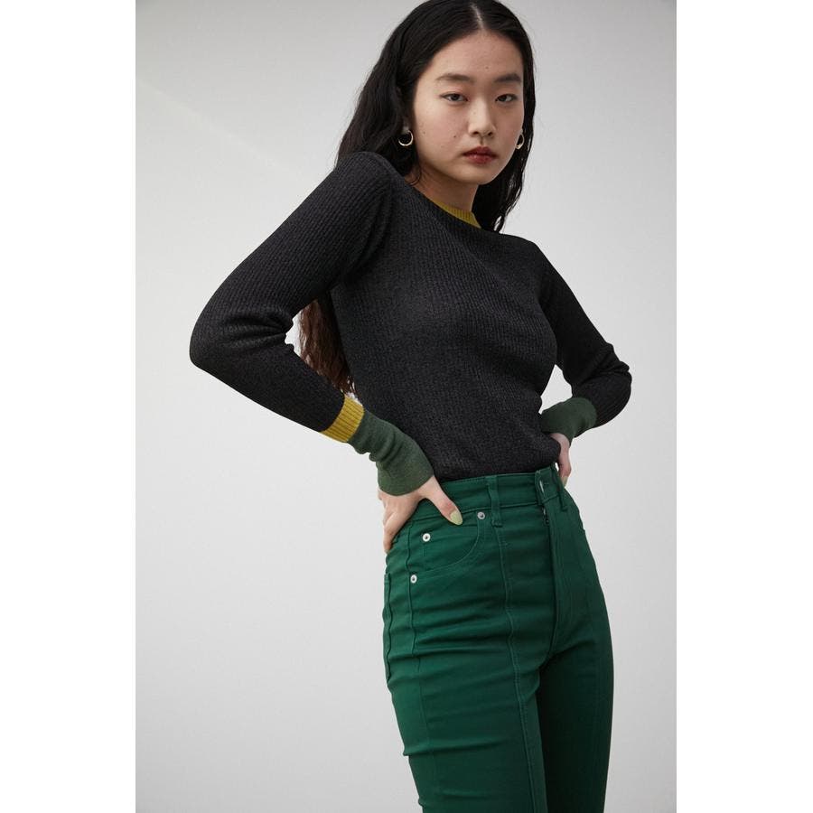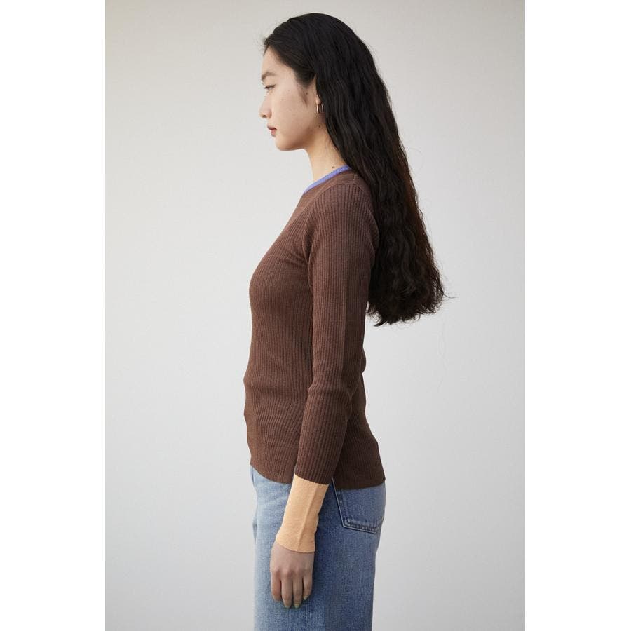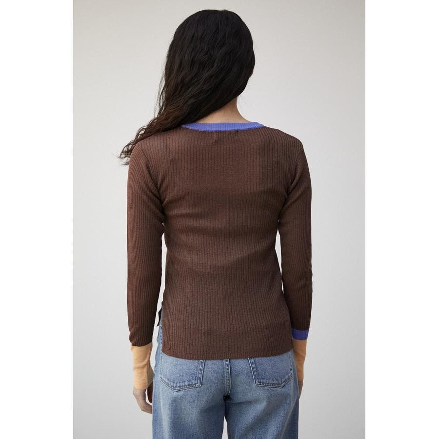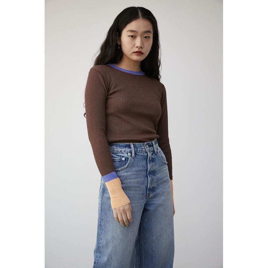 ・程よいラメ感と配色使いが特徴のシアーリブニットです。