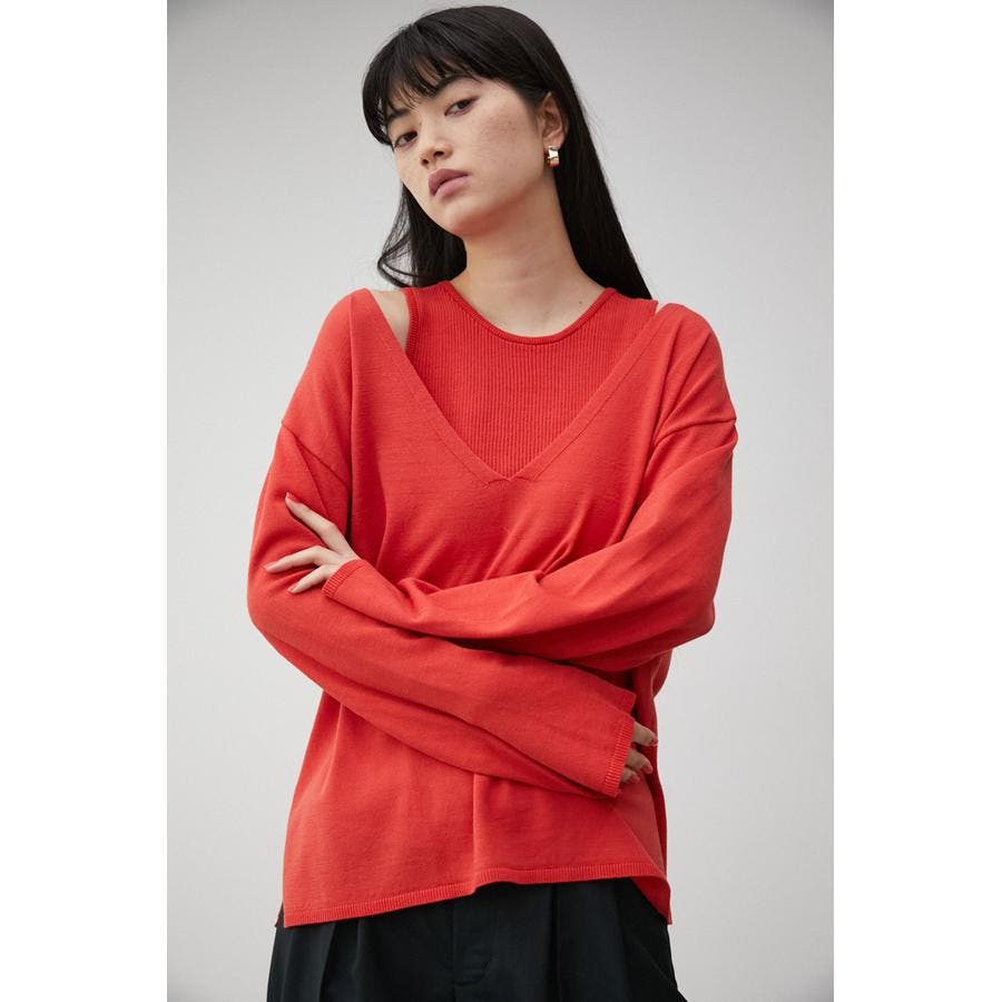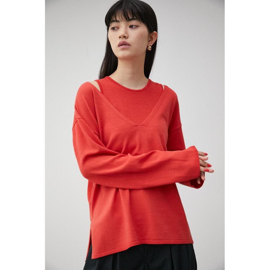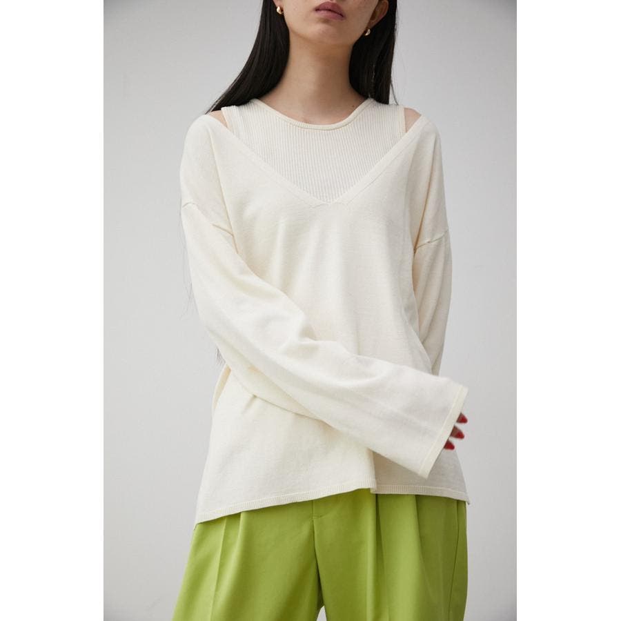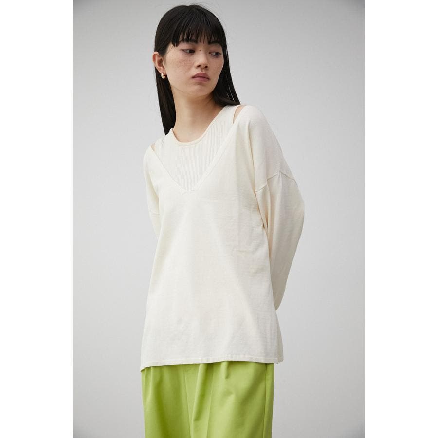 ・アメリカンスリーブのリブタンクと、前後2WAYで着用可能な深Vニットの2枚セットです。