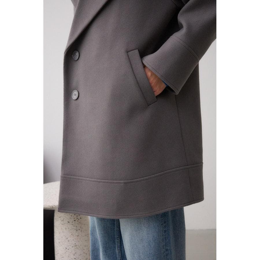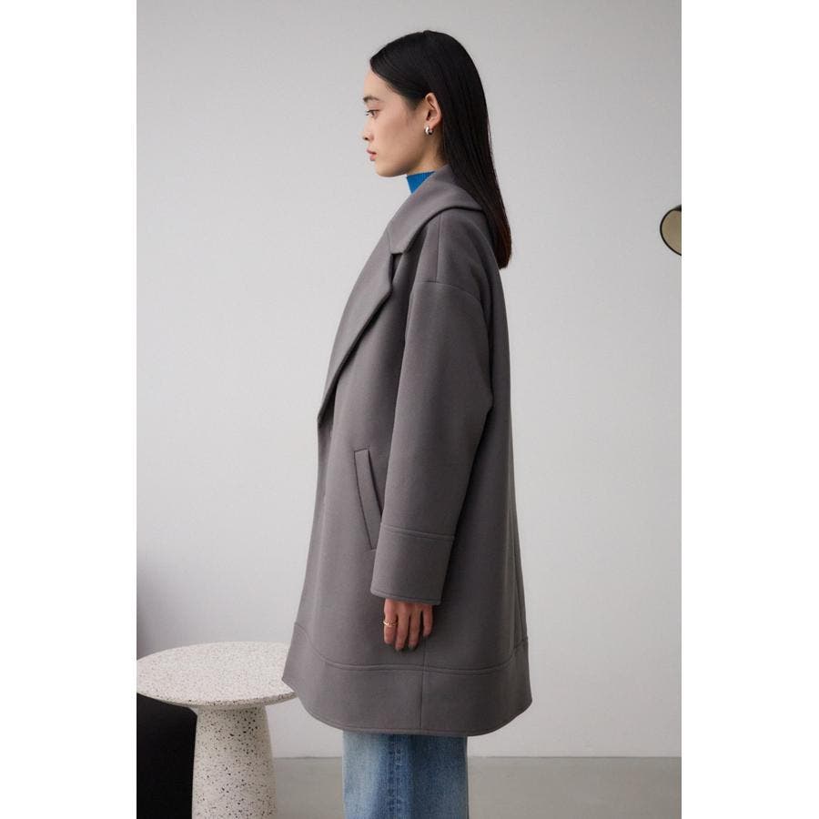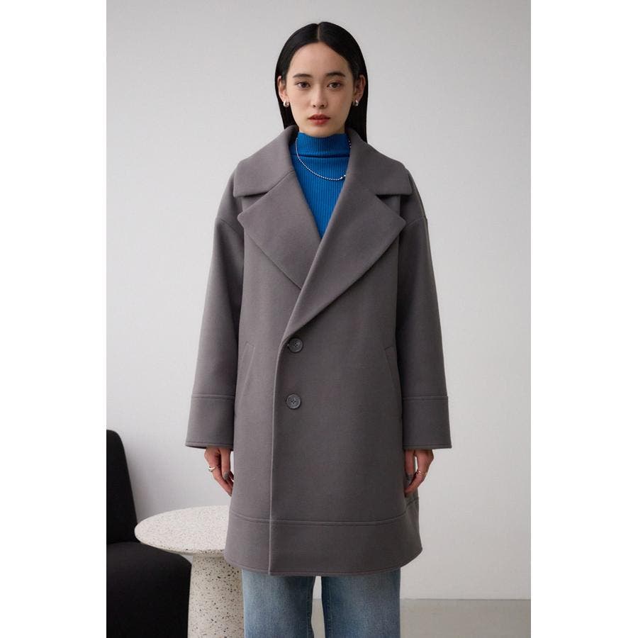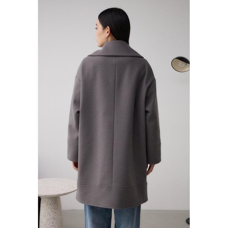 大きめの襟ディティールがポイントで、そのほかはシンプルはディティールなので着回しのしやすいコートになります。