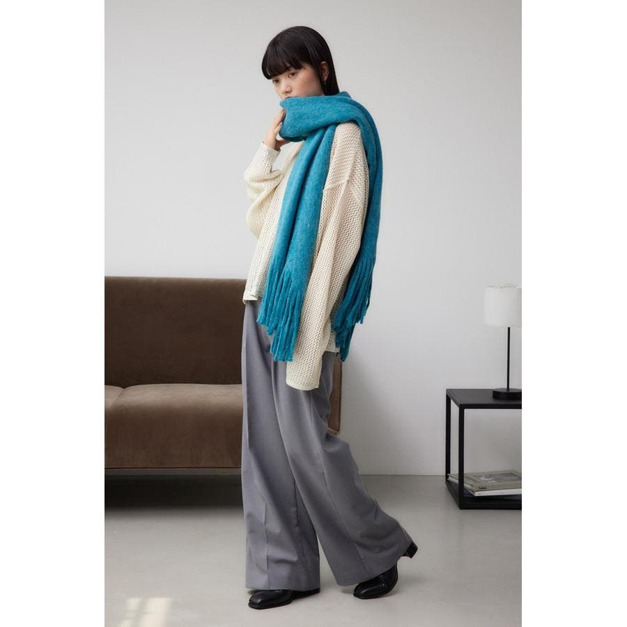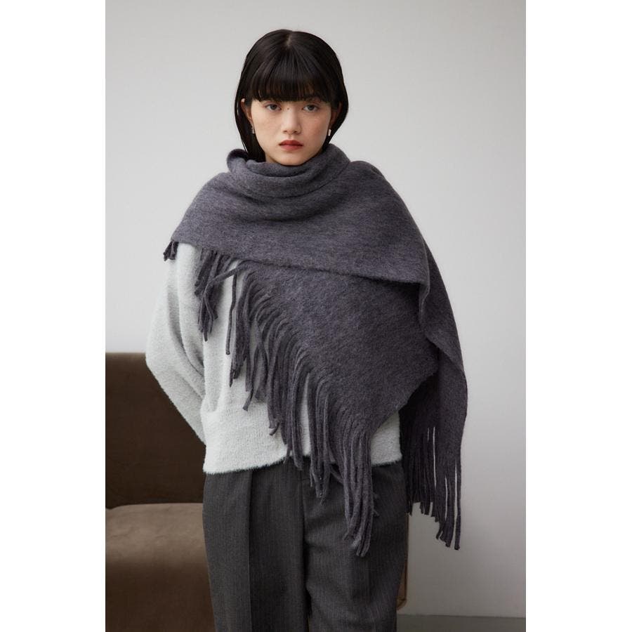 フリンジデザインがポイントとなっていてボリューム感があり、巻くだけで一気にシーズンムードを高めてくれます。
