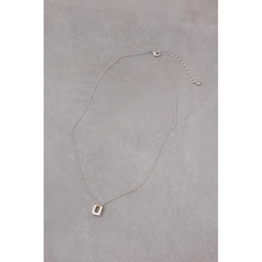 重なり合ったスクエア形状のペンダントが中心となり、モダンでシックな印象を与えます。