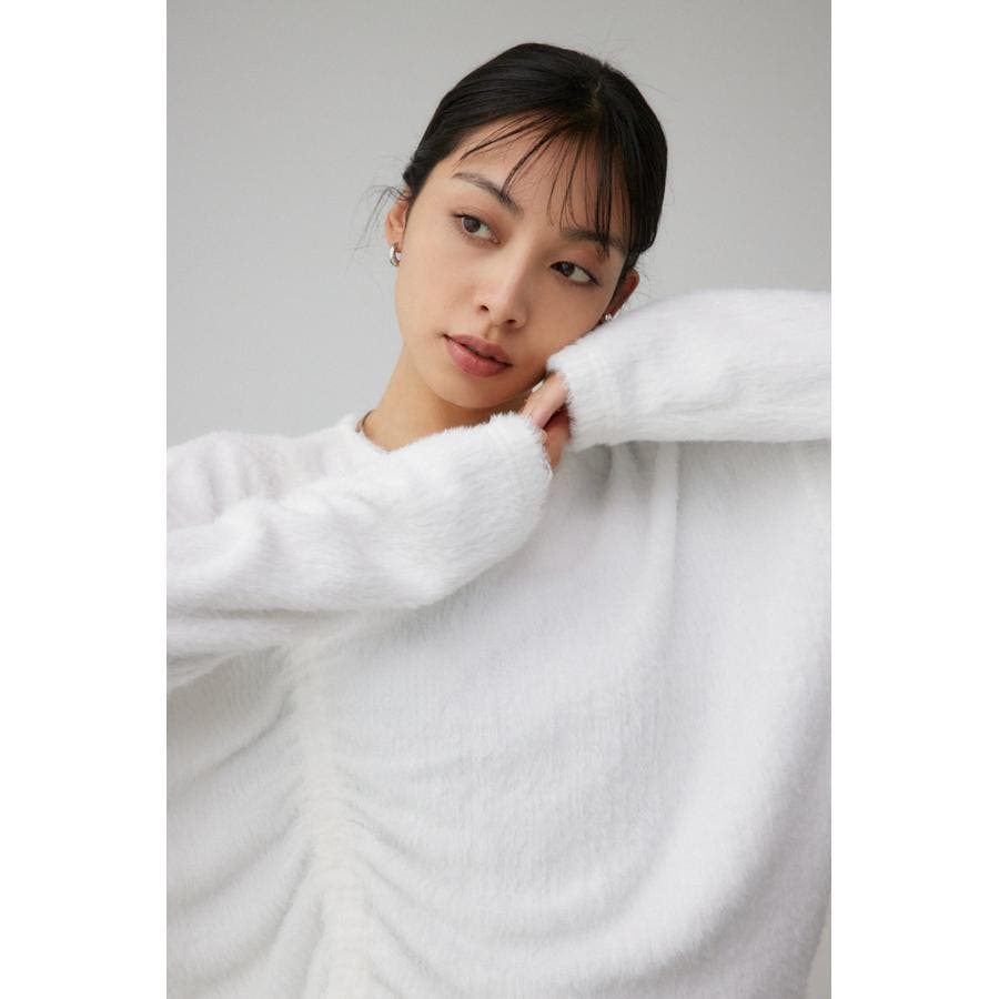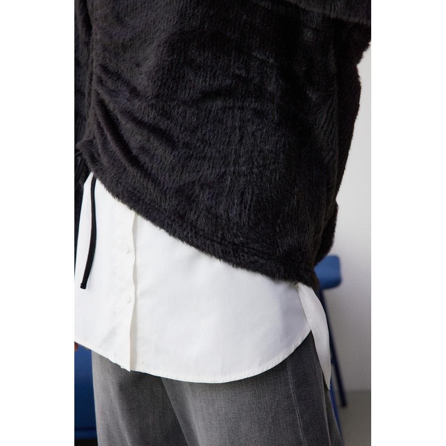 着丈はややショートでボリュームのあるボトムとの相性が良いですが、その他デニムやストレートシルエットのボトムとの合わせもおすすめです。