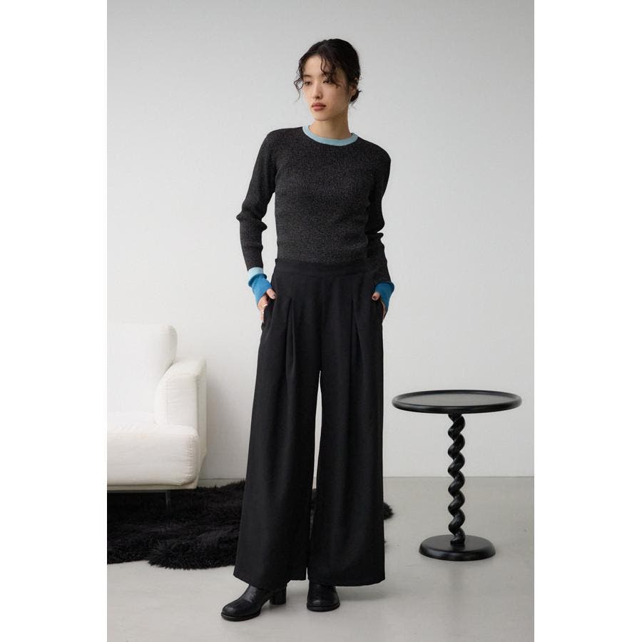 広いワイドのシルエットパンツのため、コンパクトなトップスとの合わせがおすすめです。