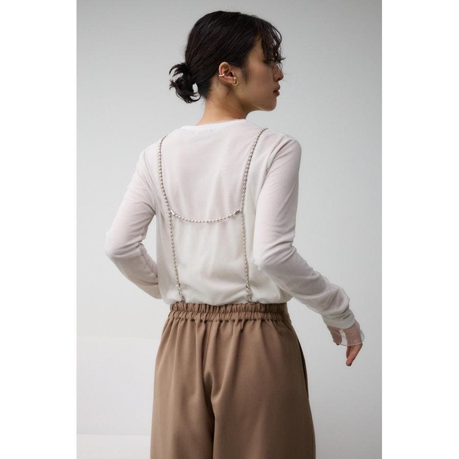 取り外しの出来るチェーンストラップ付きワイドシルエットのパンツです。
