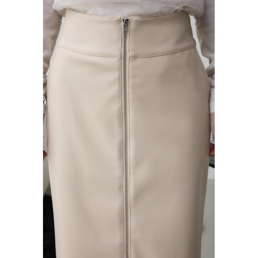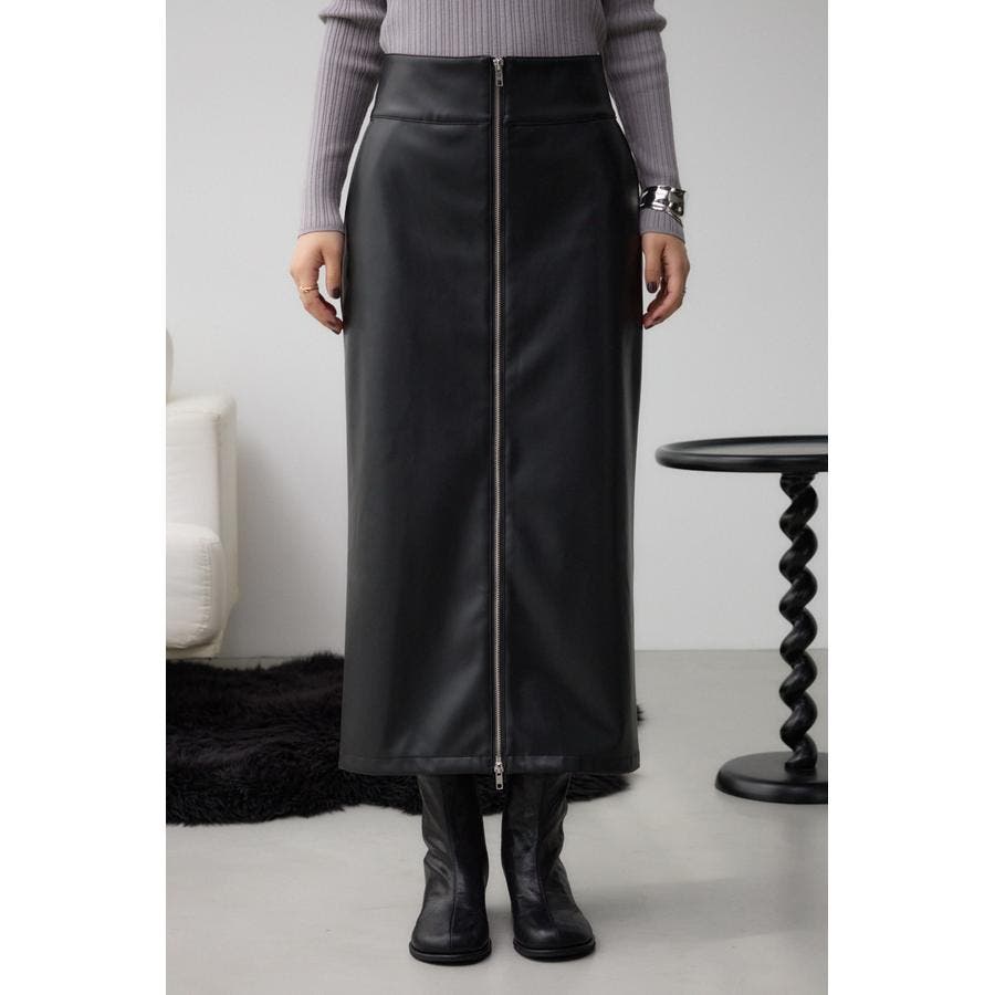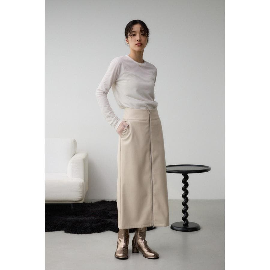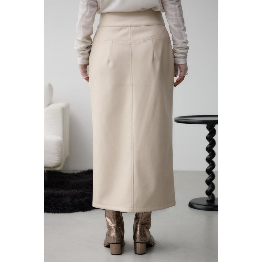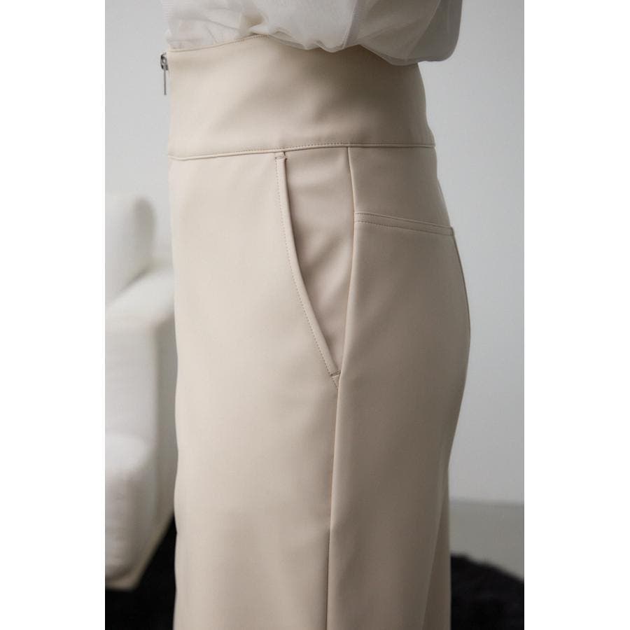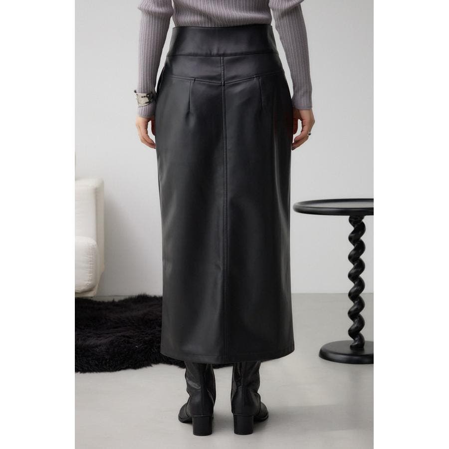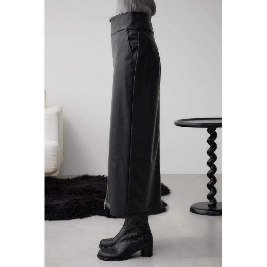 柔らかい合成皮革素材を使用しタイトシルエットにこだわったスカート。