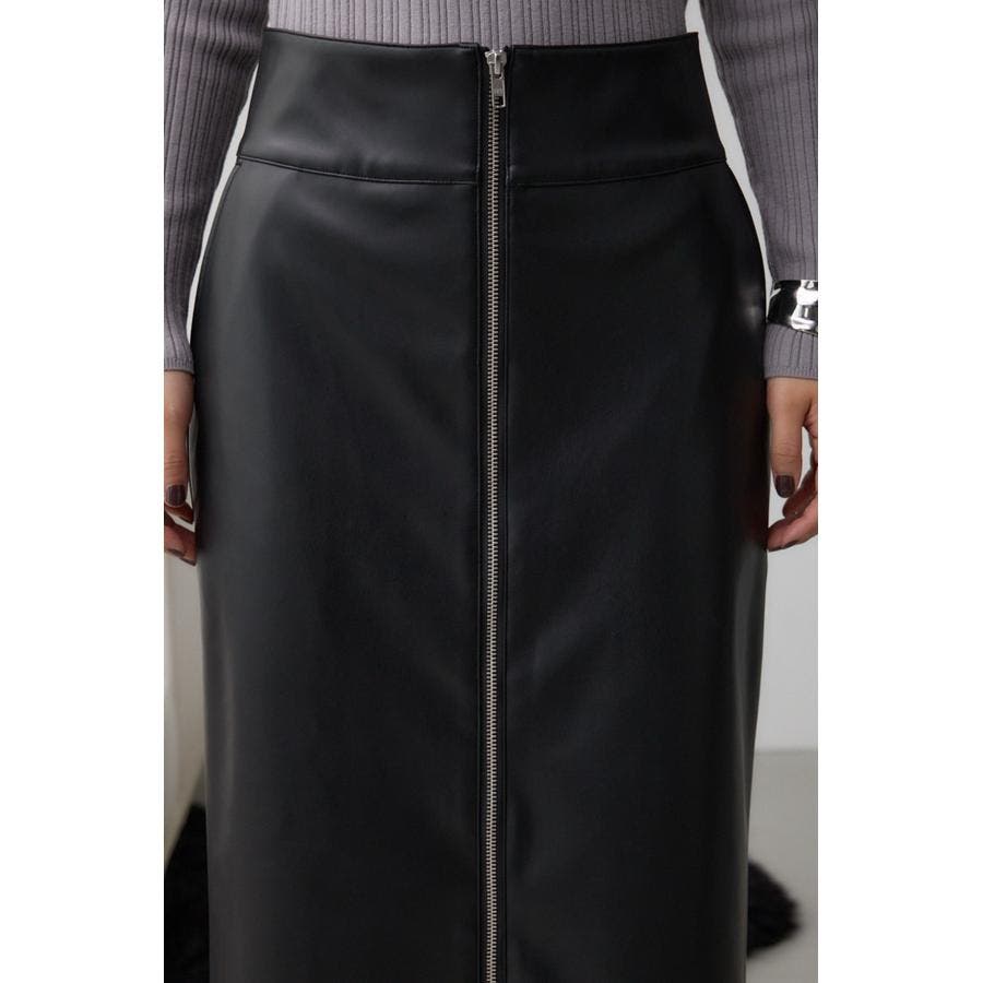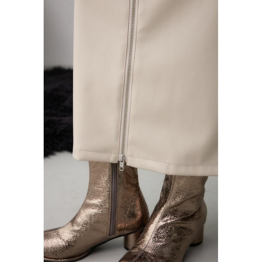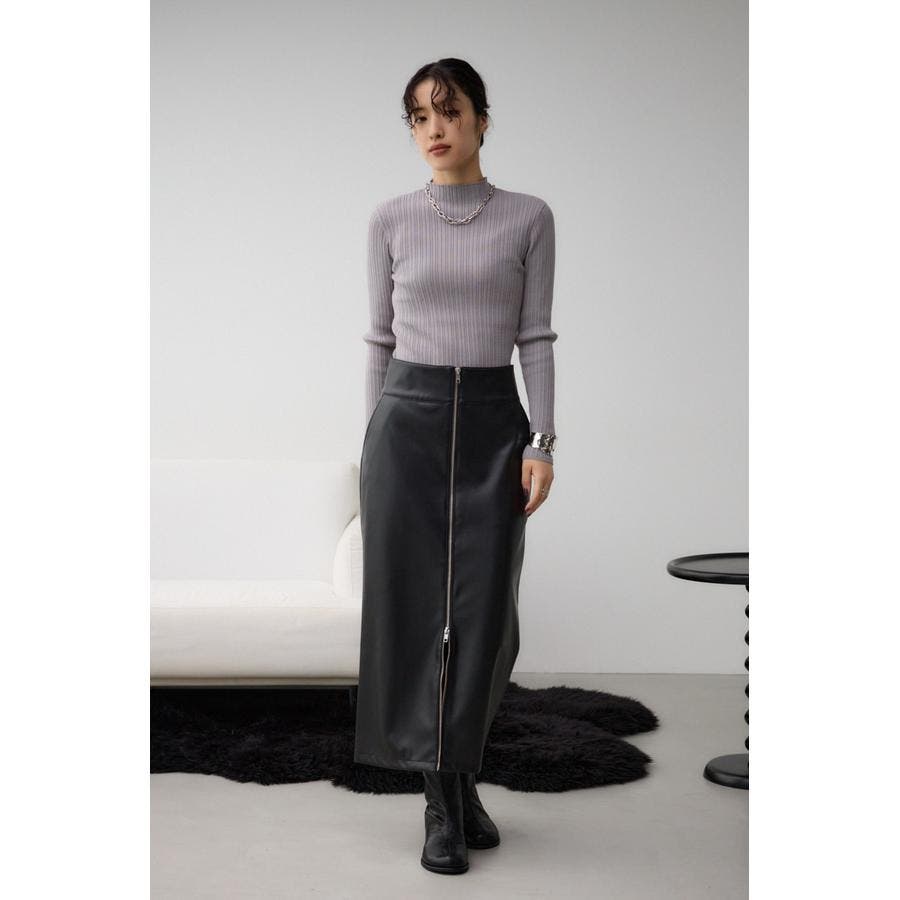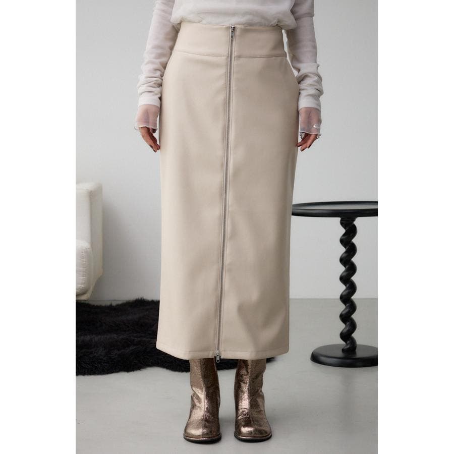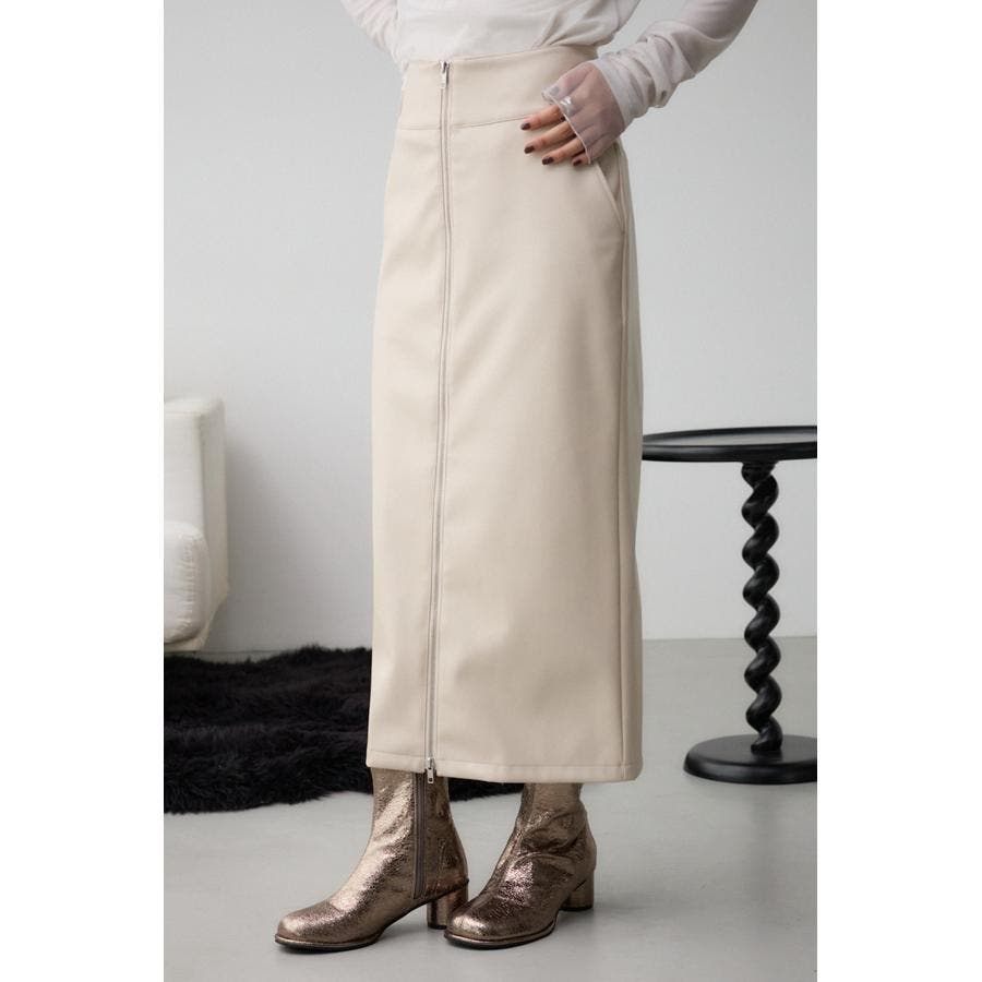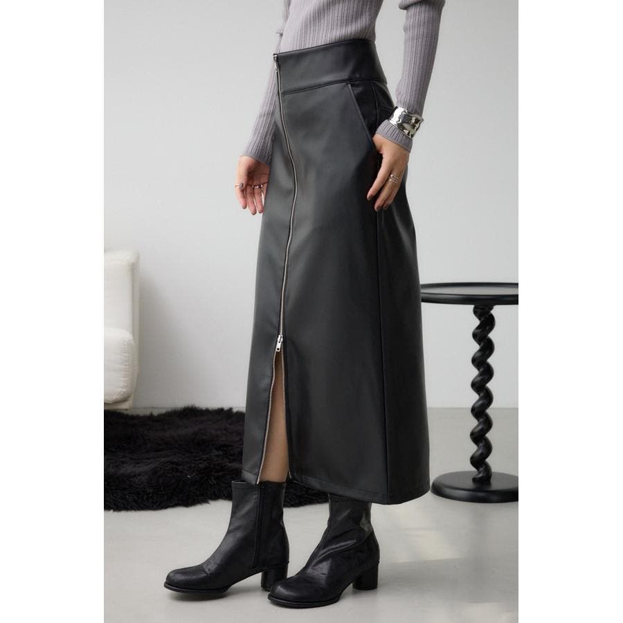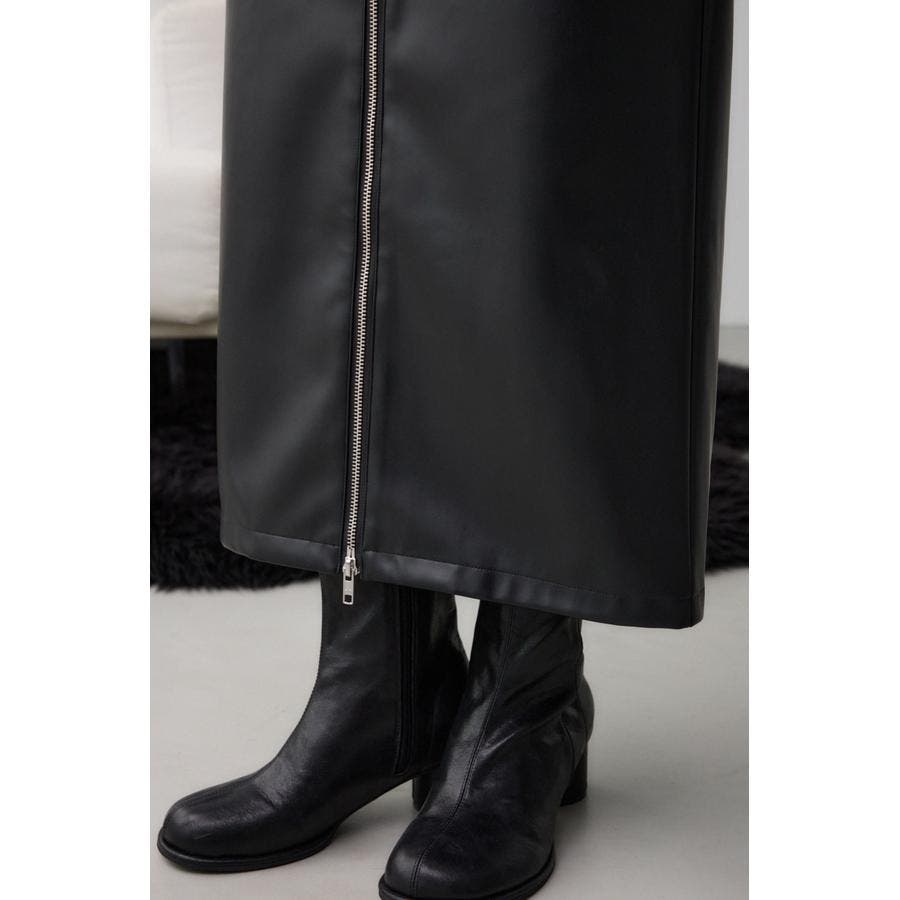 柔らかい合成皮革素材を使用しタイトシルエットにこだわったスカート。