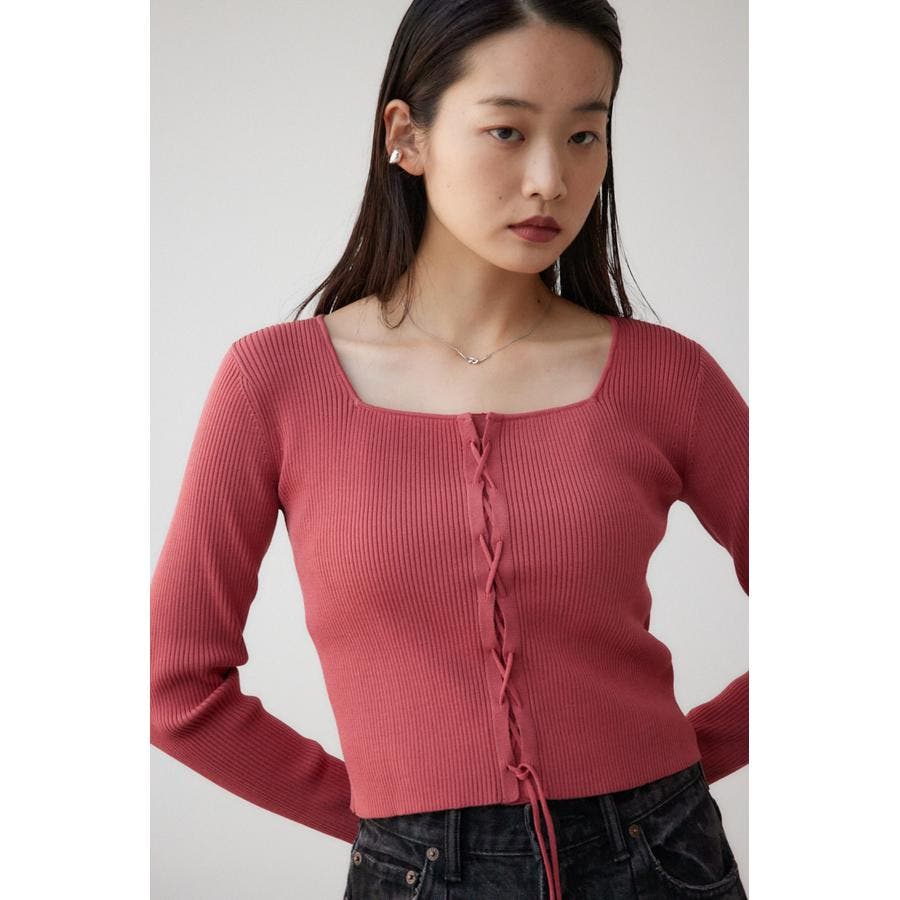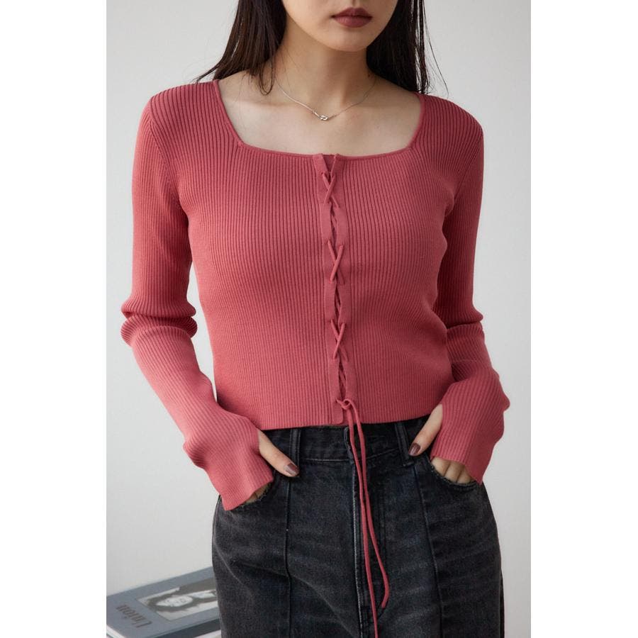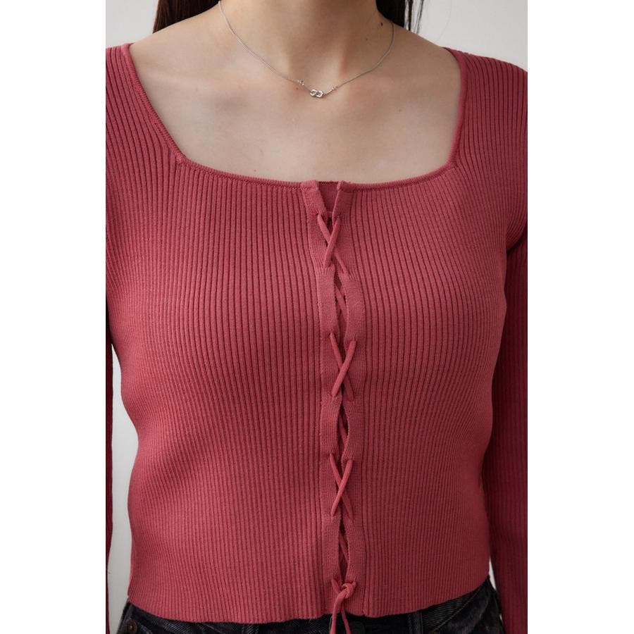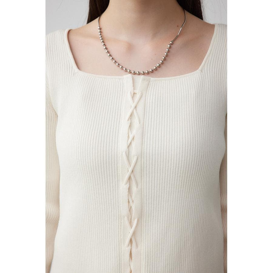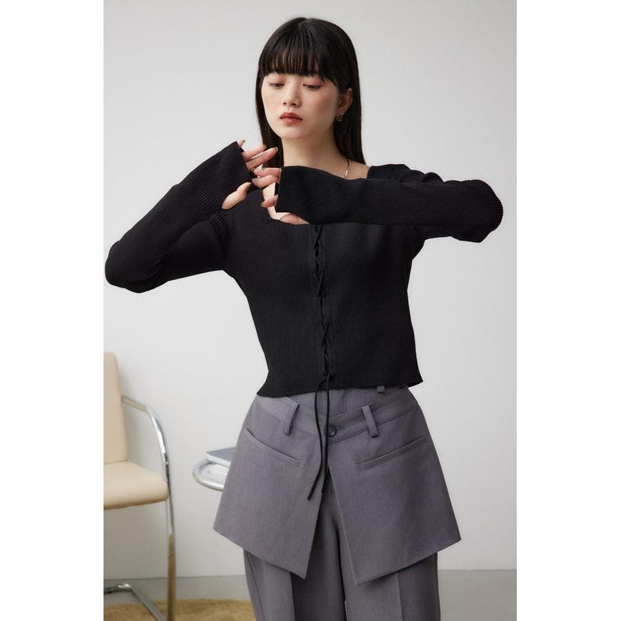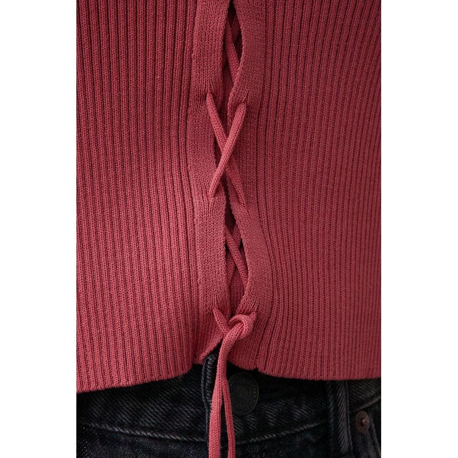 フロント部分のレースアップデザインがポイントのリブニットです。