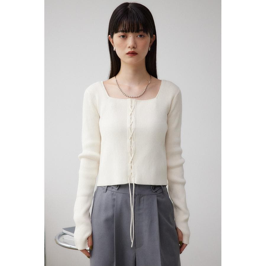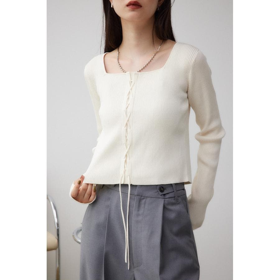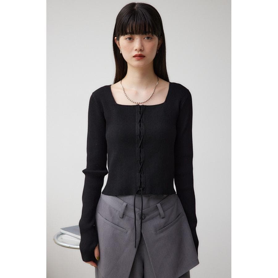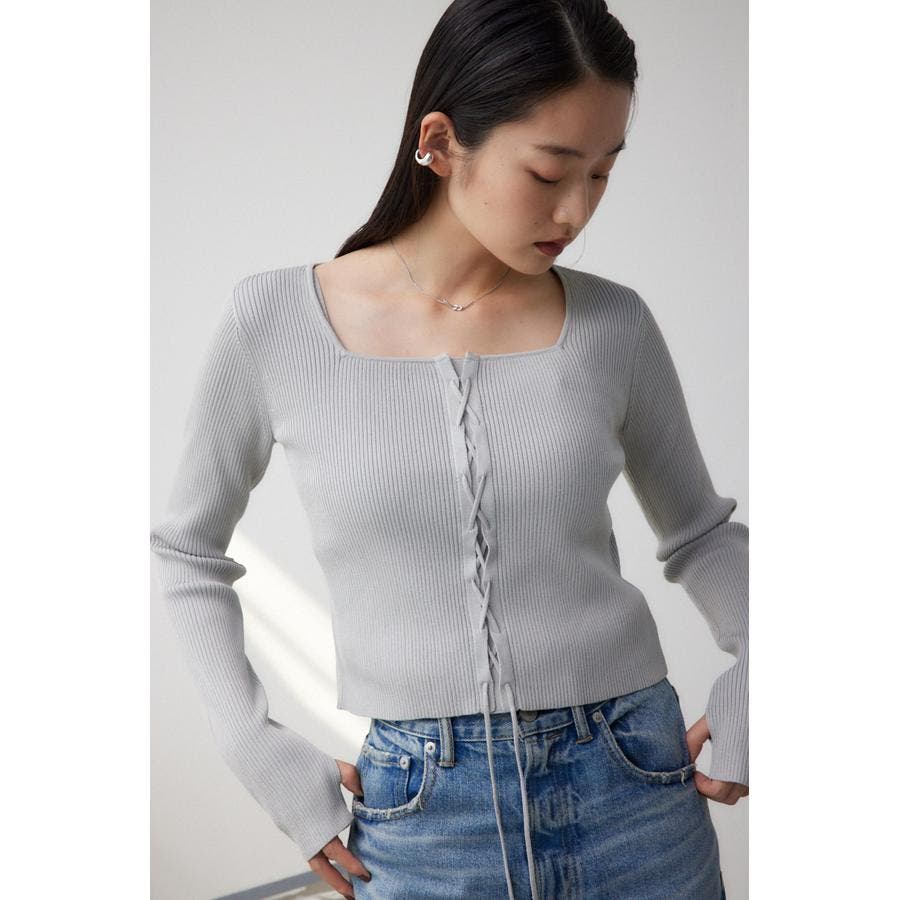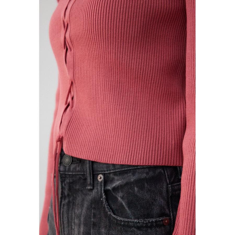 フロント部分のレースアップデザインがポイントのリブニットです。