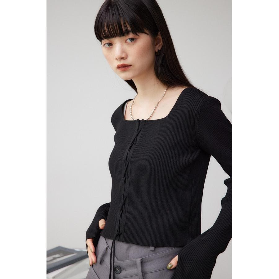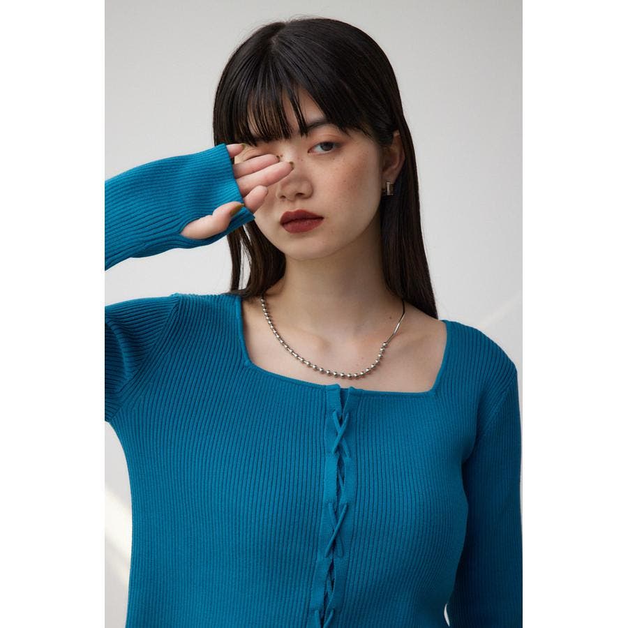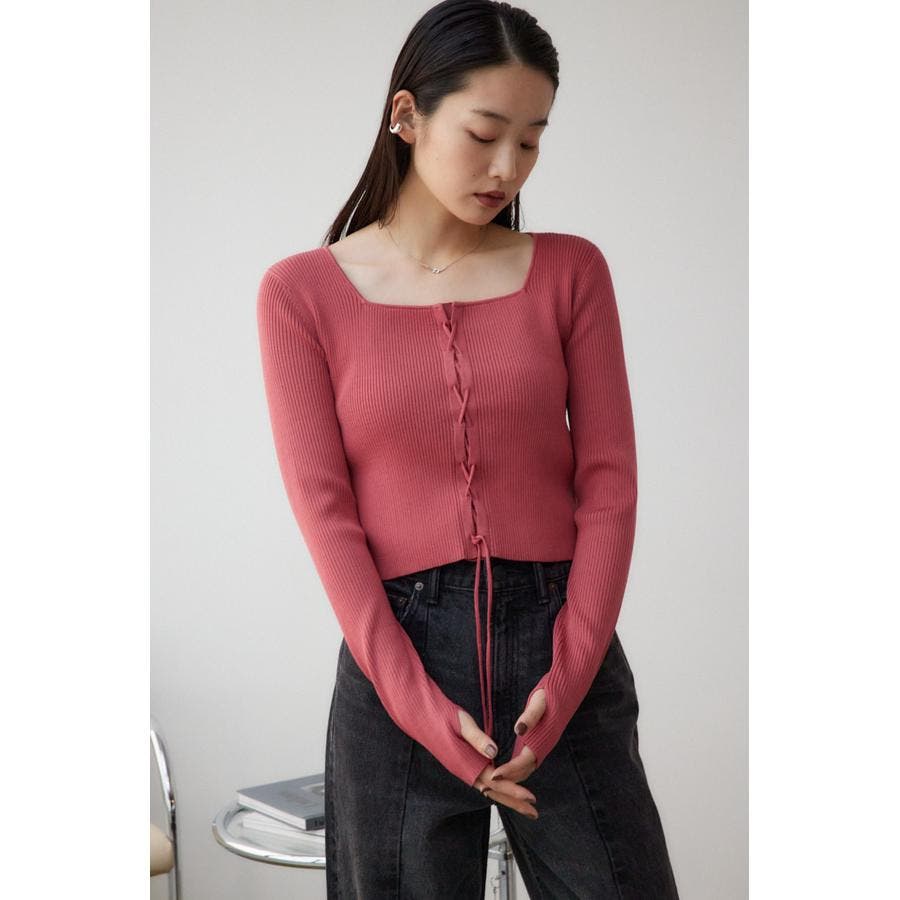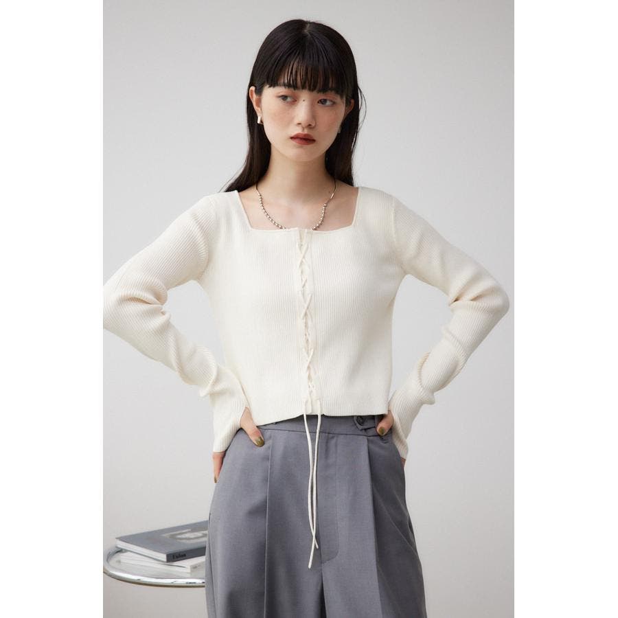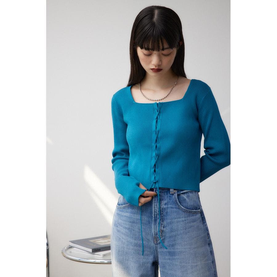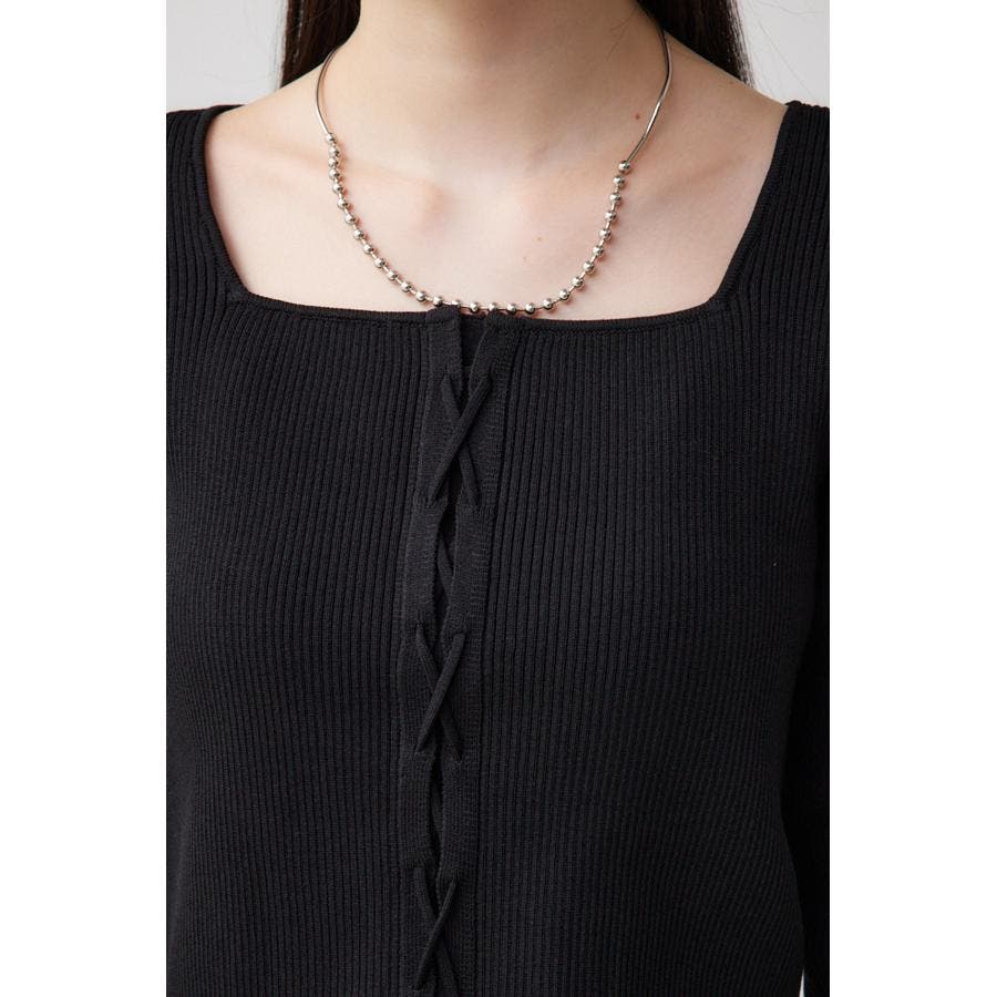 フロント部分のレースアップデザインがポイントのリブニットです。