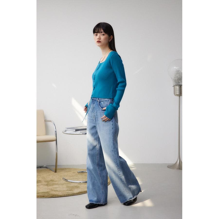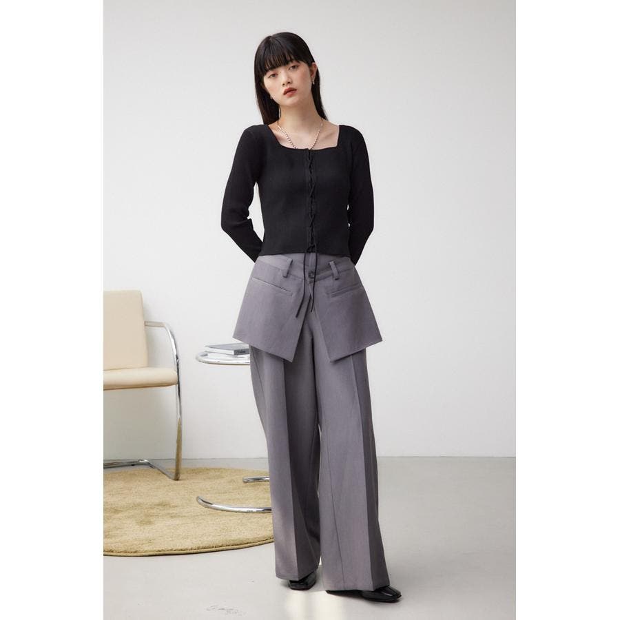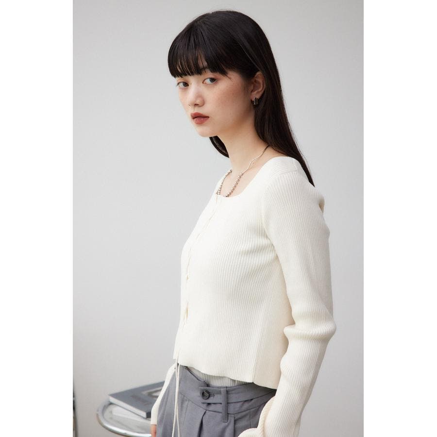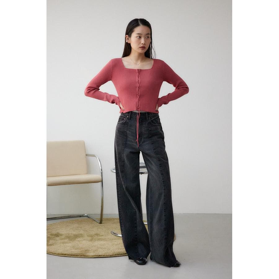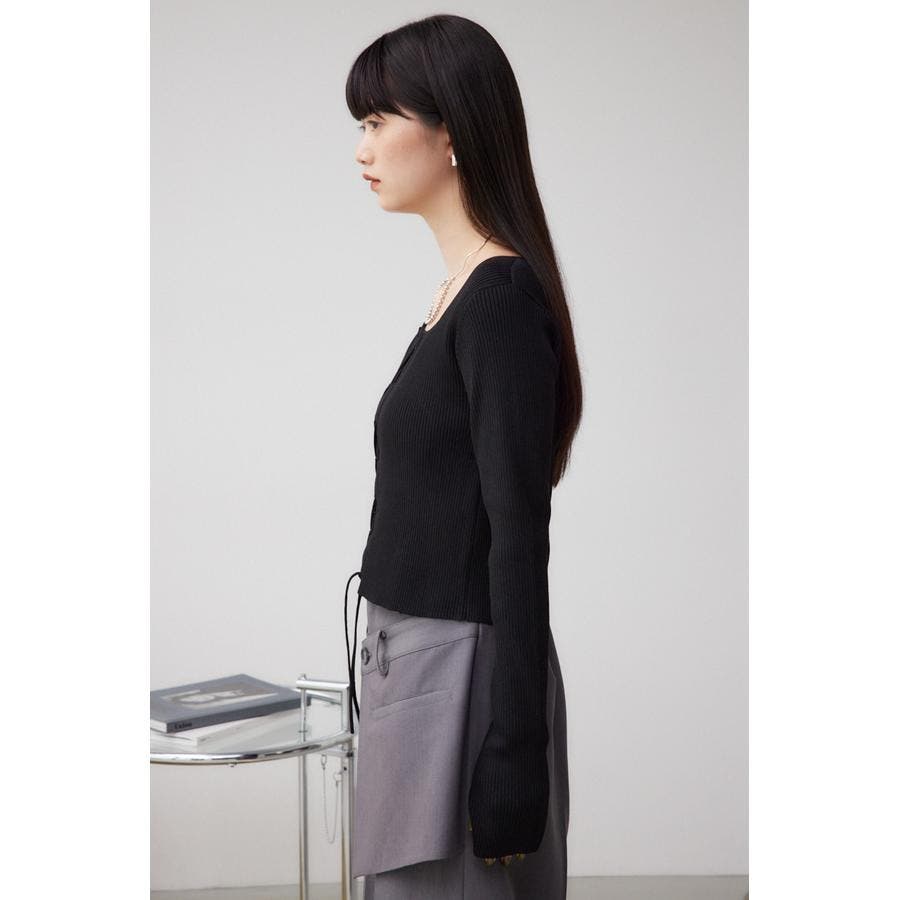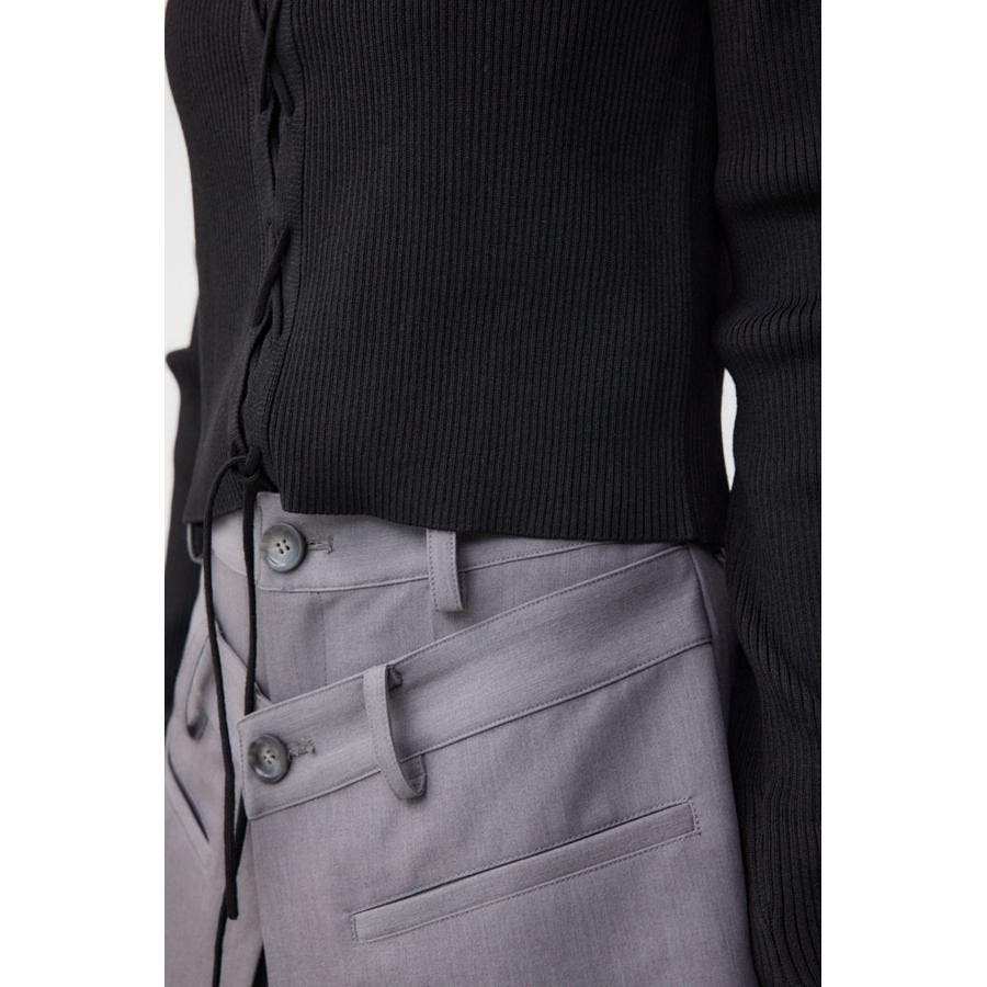 フロント部分のレースアップデザインがポイントのリブニットです。