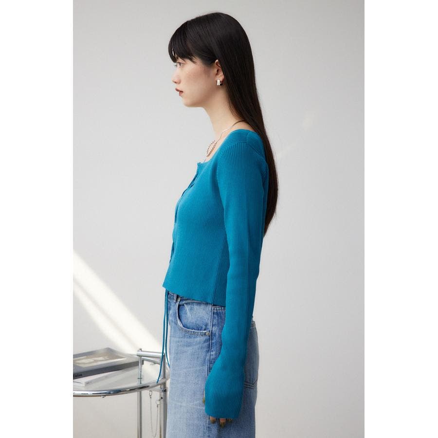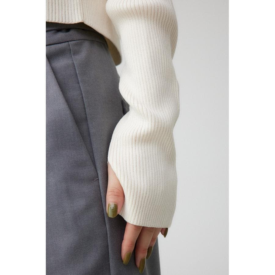 今季トレンドのショート丈、レースアップ使い、サムホールのデザイン要素を取り入れたリブニットです。