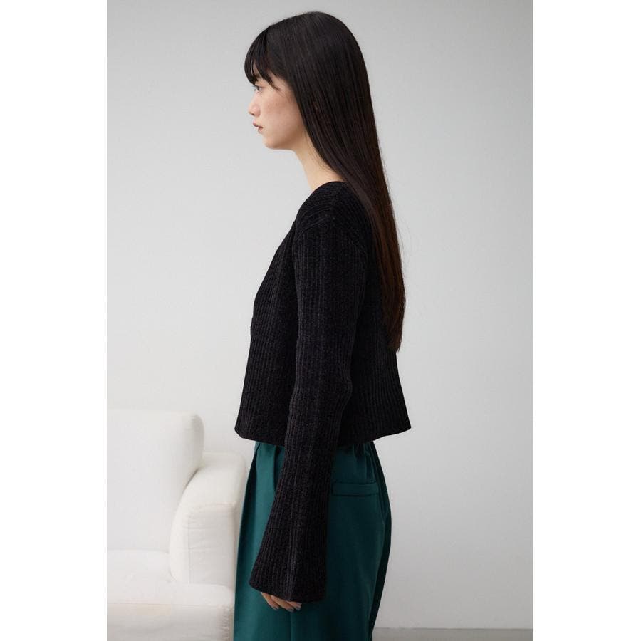 ■素 材:微光沢のモールヤーンをリブ地に編み立てています。