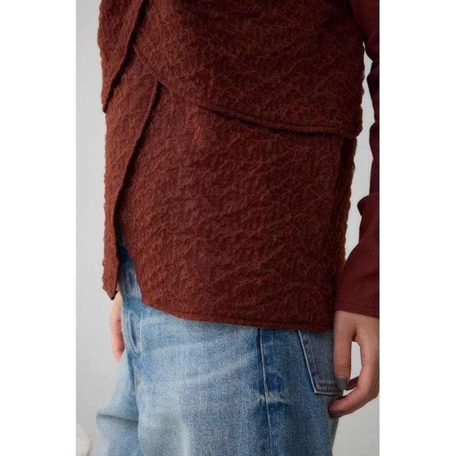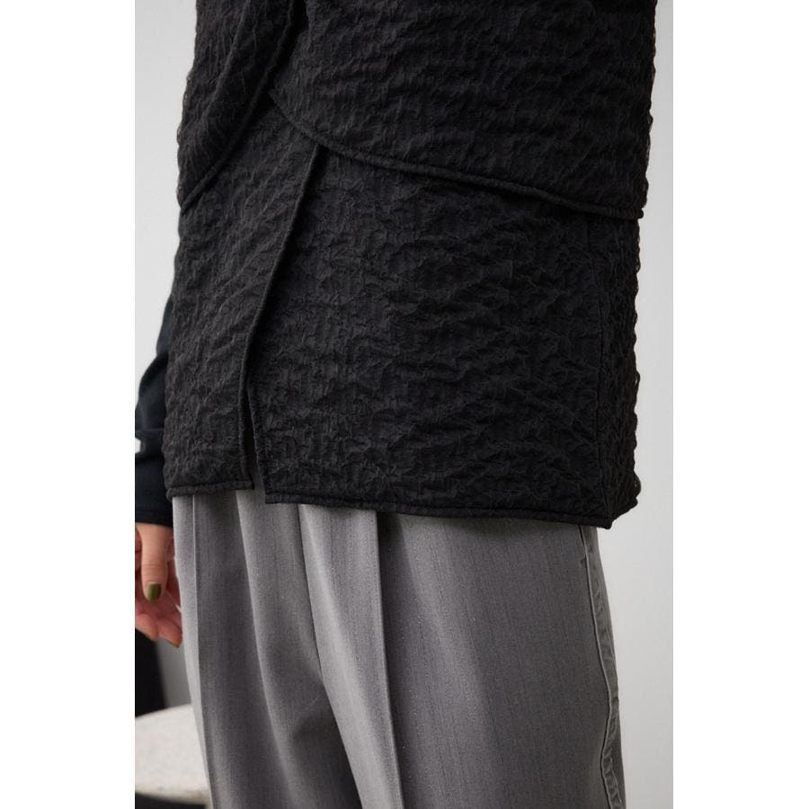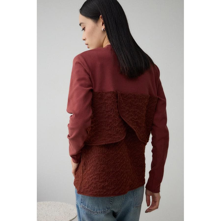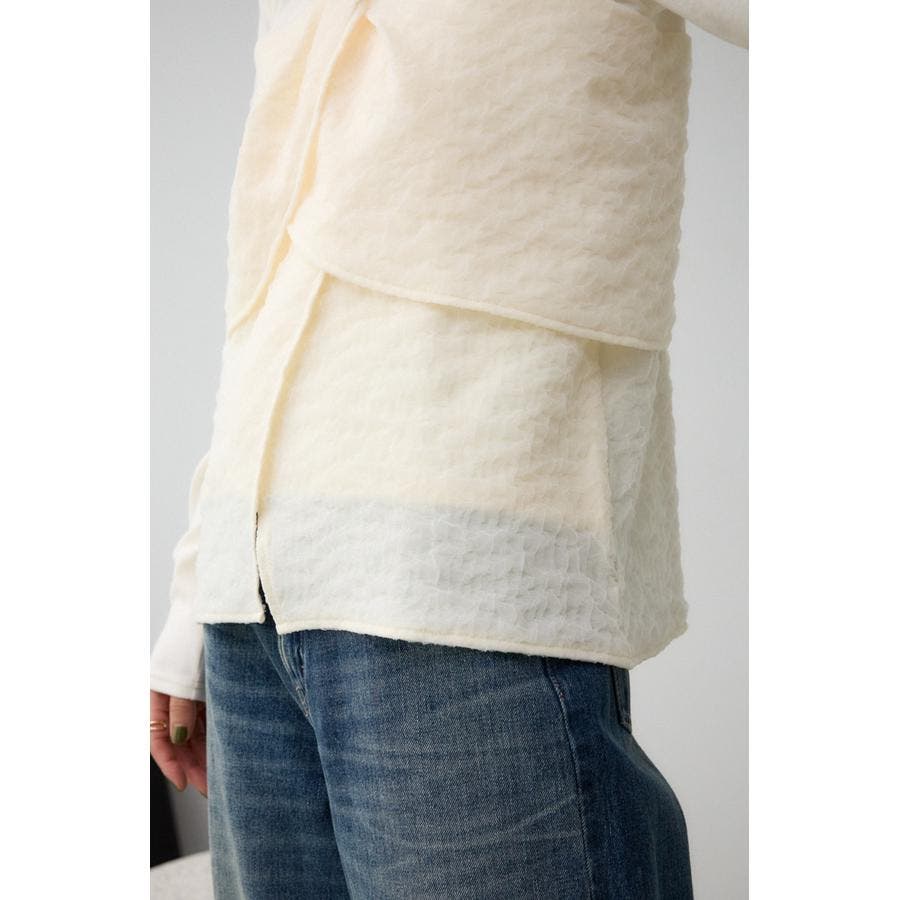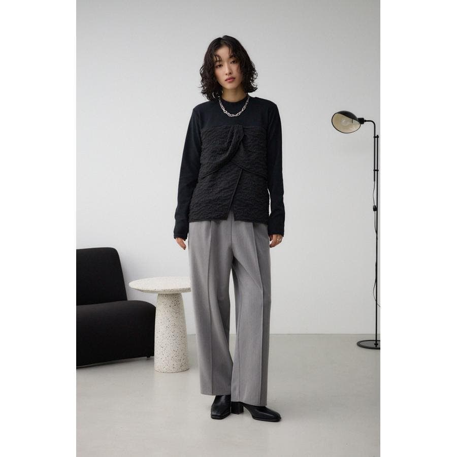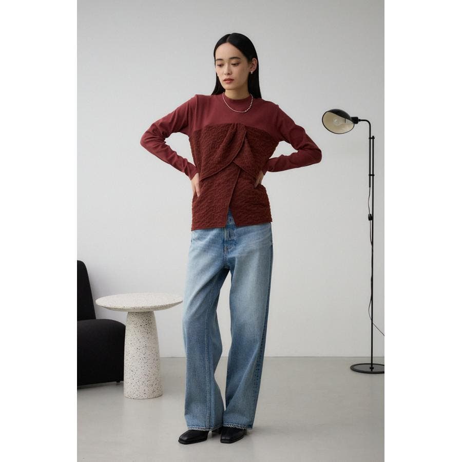 シルエットはすっきりとしていてカットソーとオーガンジーの布帛のドッキングトップス。