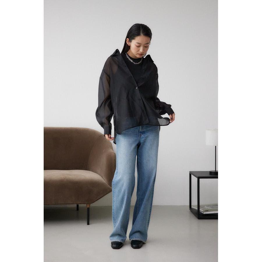 女性らしいアイテムに仕上げていますので、ワイドデニムでカジュアルにコーディネートするのがおすすめです。