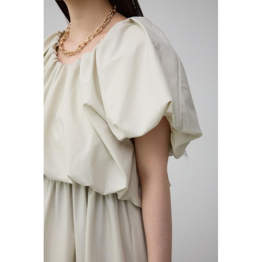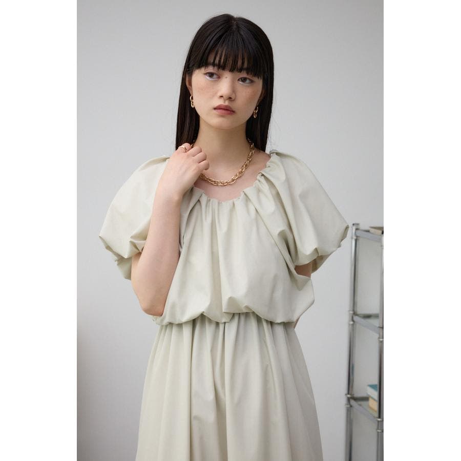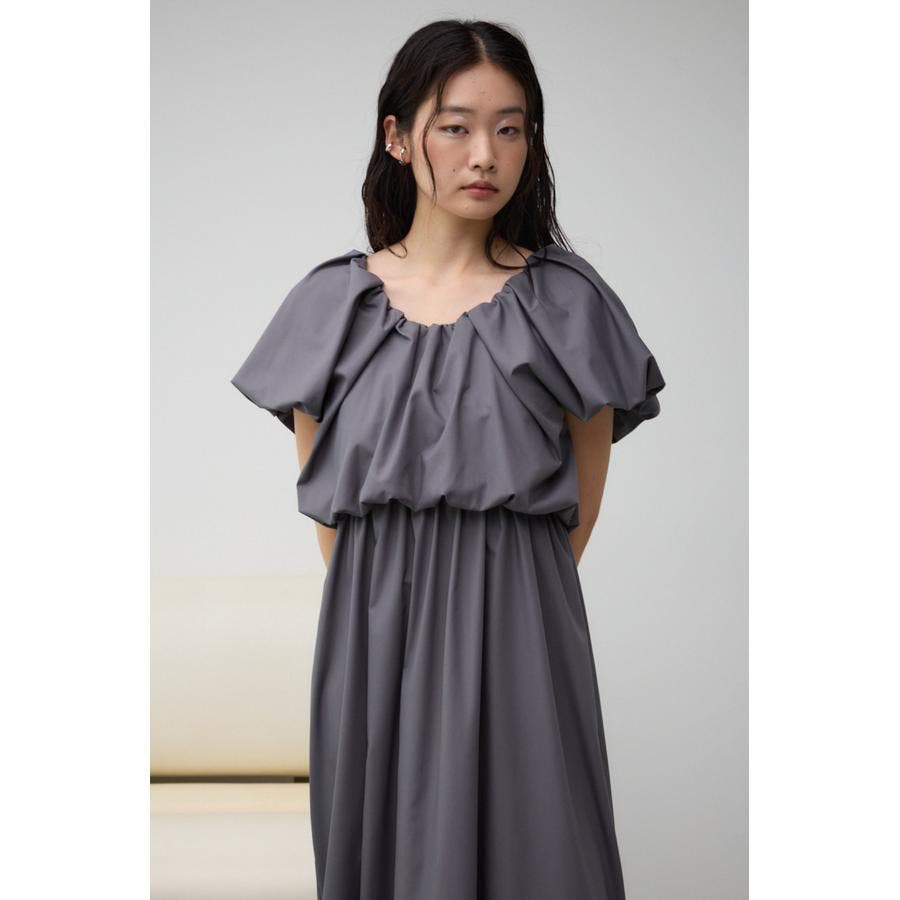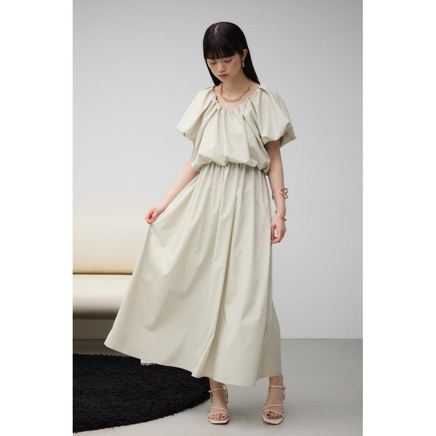 スカート部分もギャザーを施し、女性らしいフレアシルエットに仕上げています。