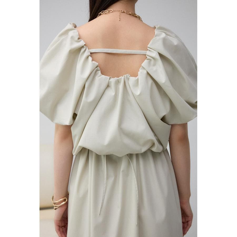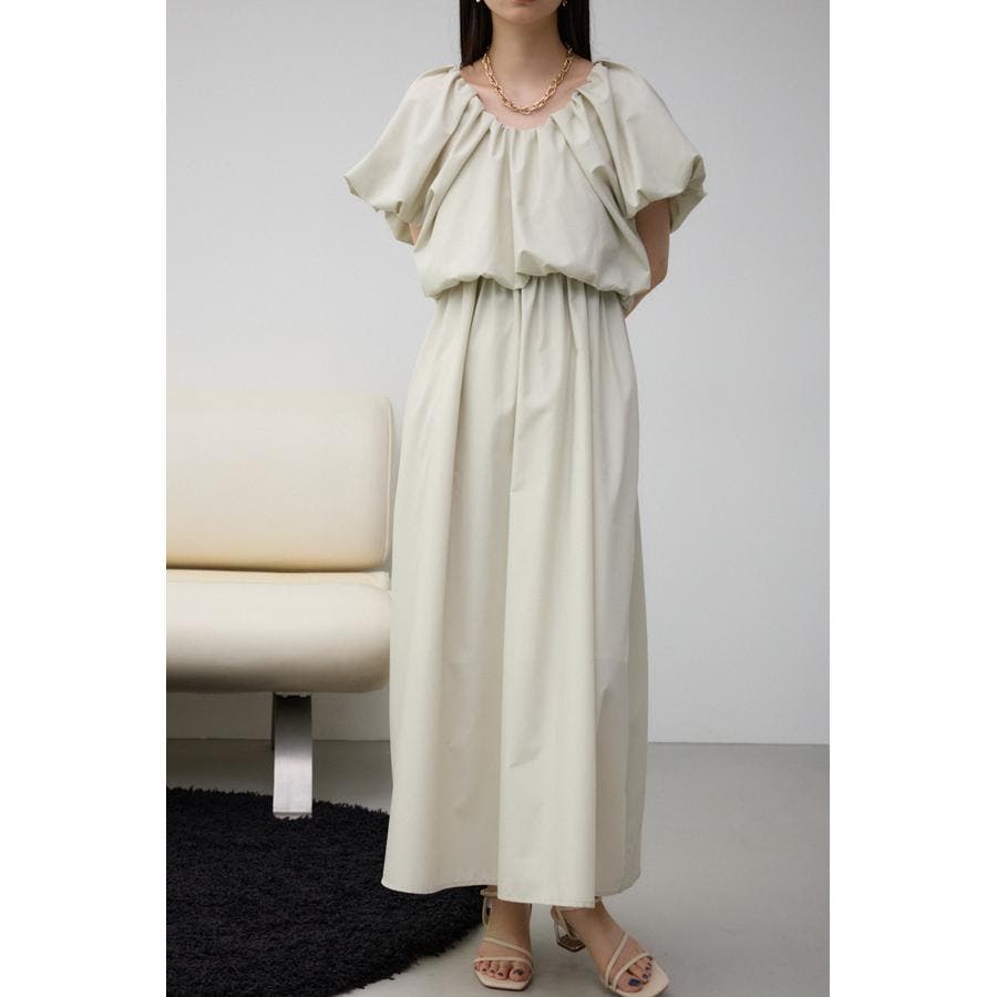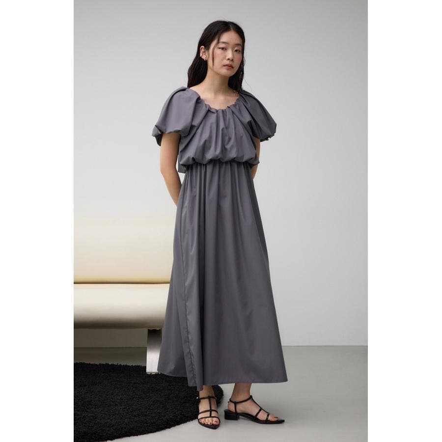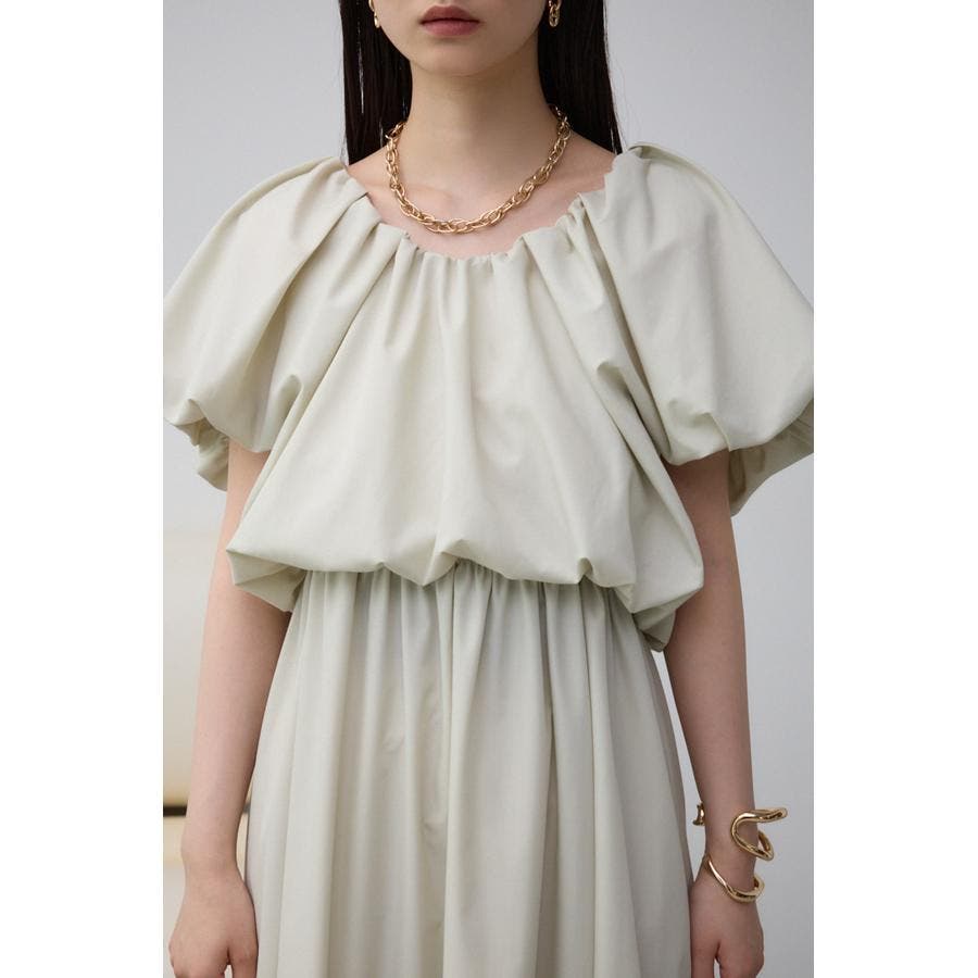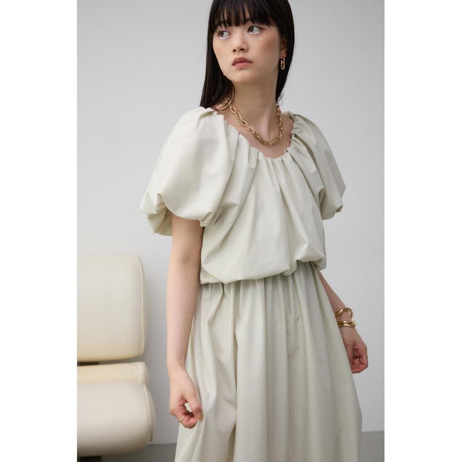 スカート部分もギャザーを施し、女性らしいフレアシルエットに仕上げています。