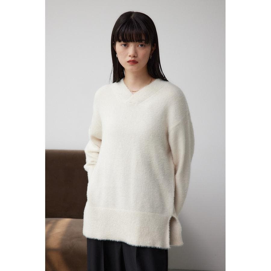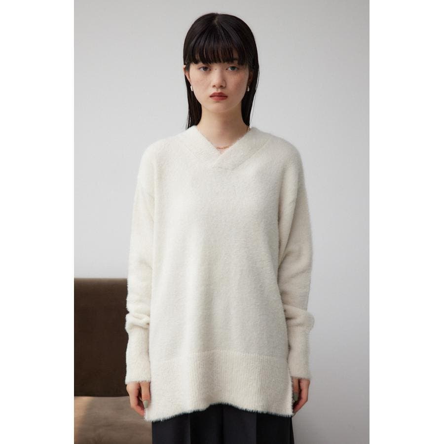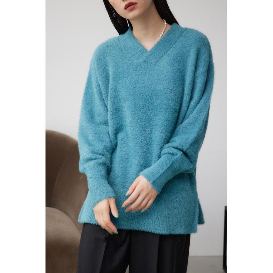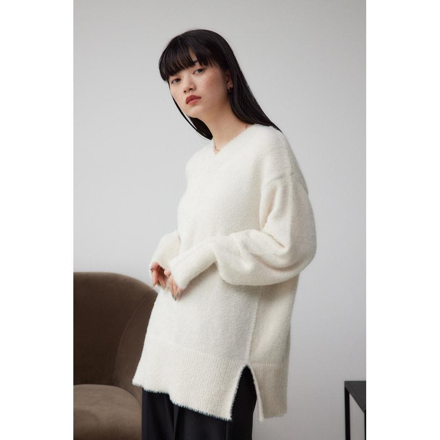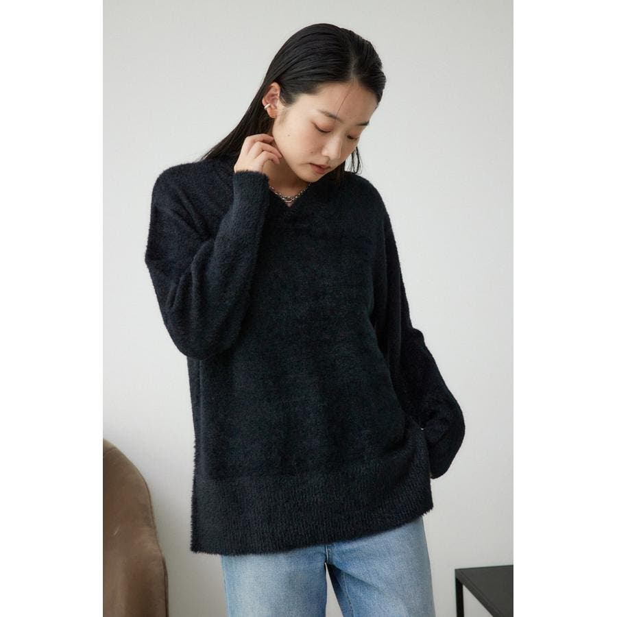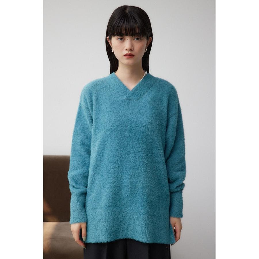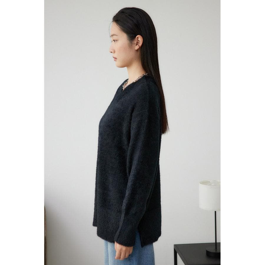 ■素 材:繊細な短い毛足のシャギー糸を使用したニットです。滑らかな手触りが特徴です。