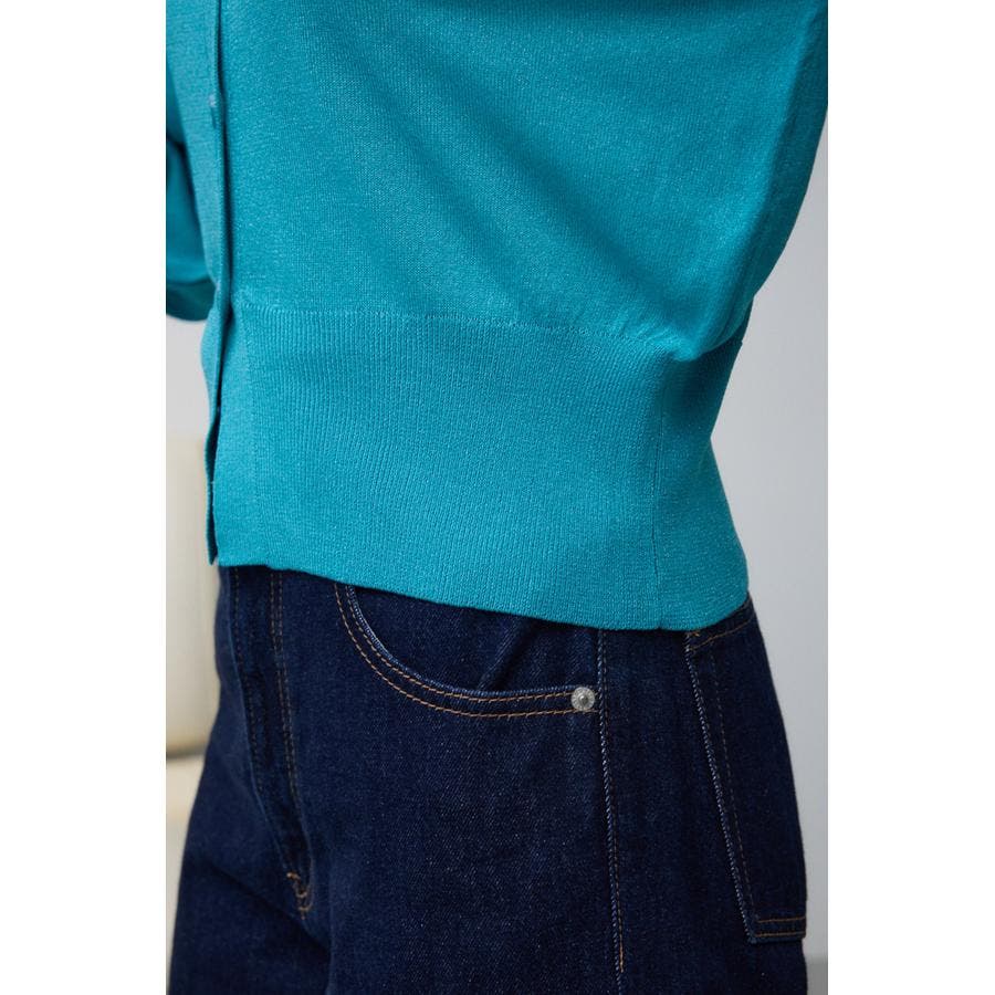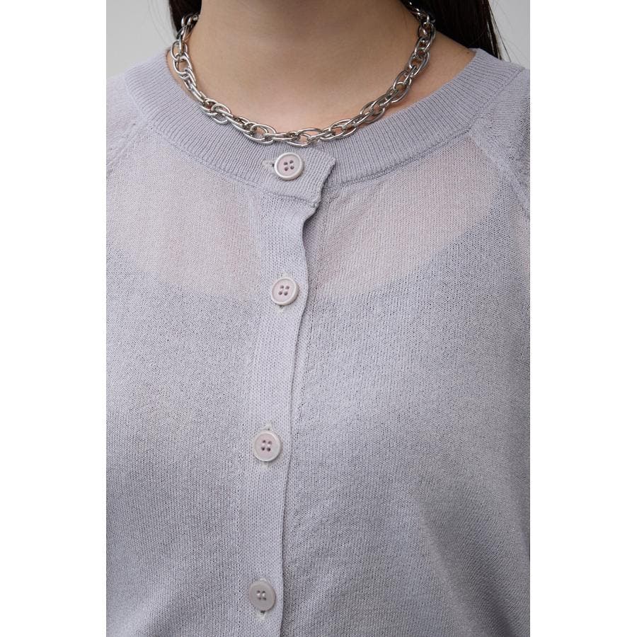 ■商品(デザイン)ポイント:コンパクトなデザインでやや透け感のあるショート丈カーディガンです。