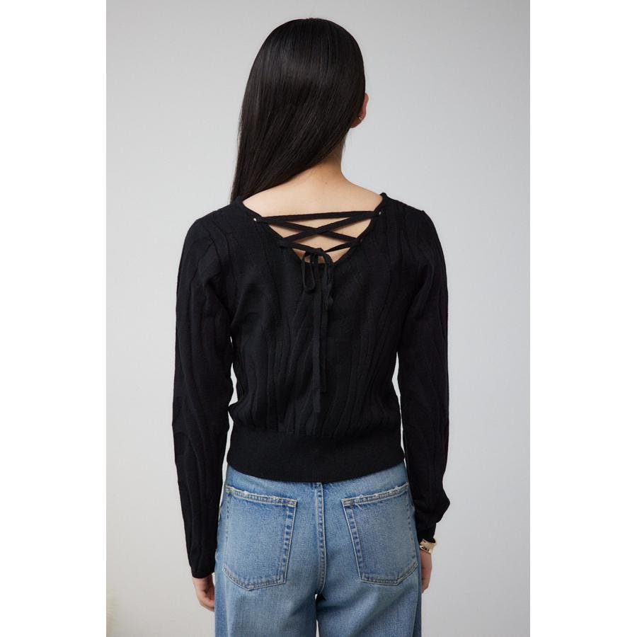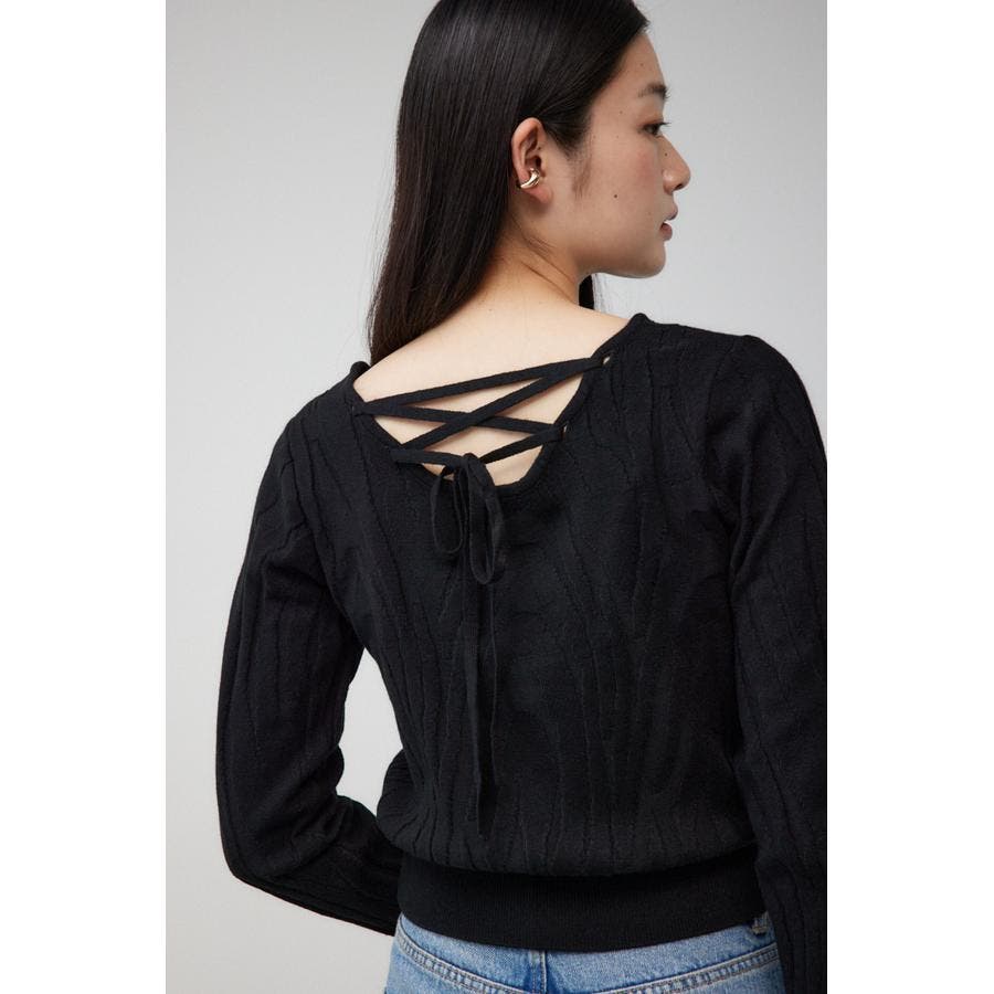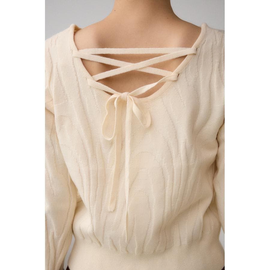 ジャガード柄とバックリボンのデザインがポイントのニットです。