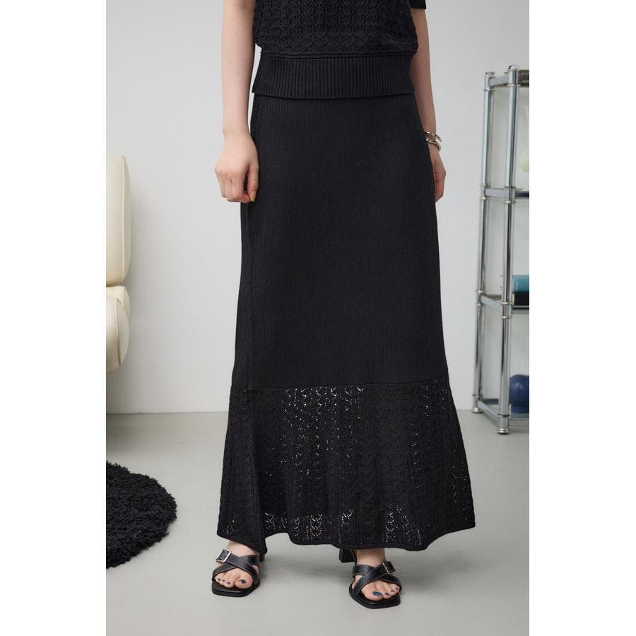 ■商品(デザイン)ポイント:・リブとクロシェを組みあせたニットスカート。