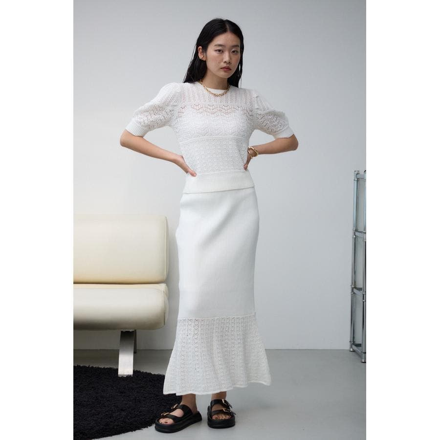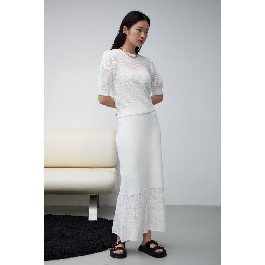■スタイリング:同素材のTOPS250HAF70-254Fレース半袖ニットトップスと合わせてSET UPとして着用しただけます。