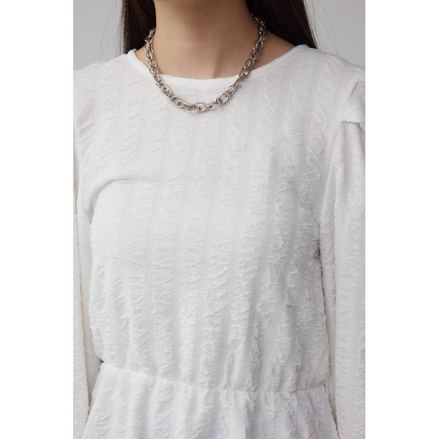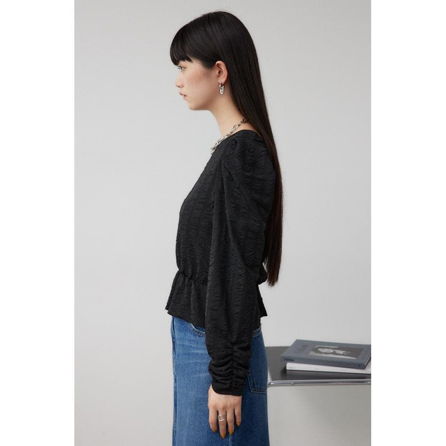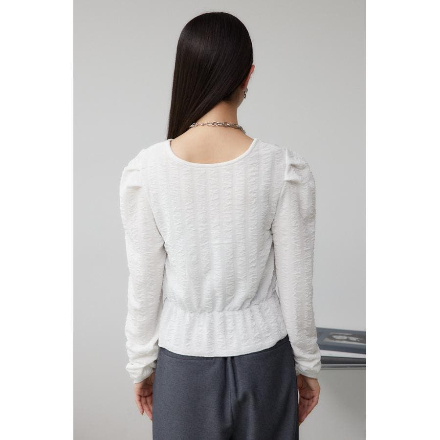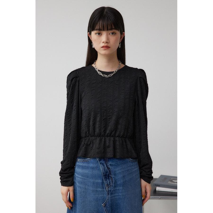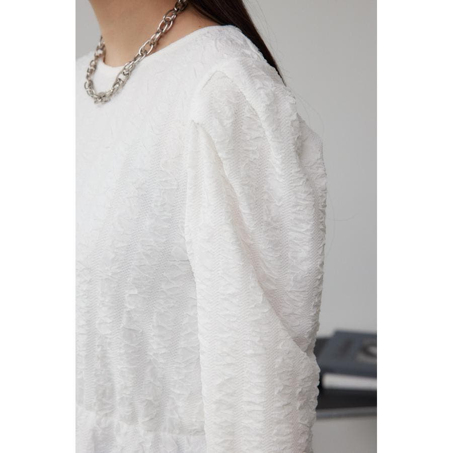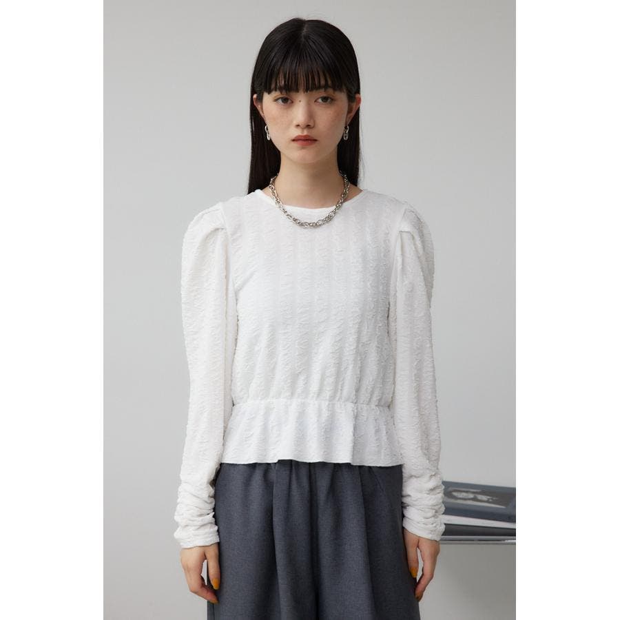 表面感のあるふくれジャガード生地が目を引くカットソートップスです。