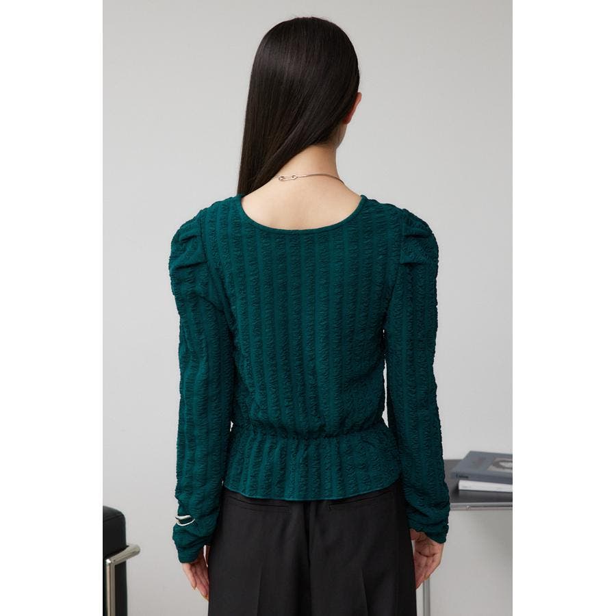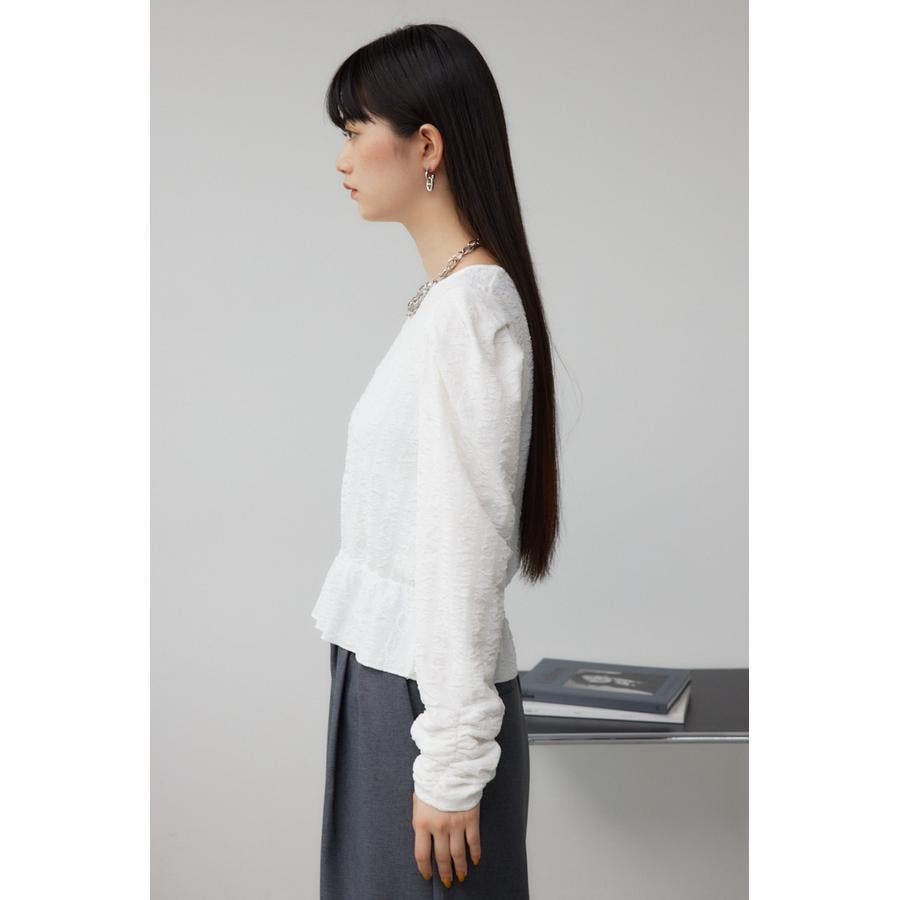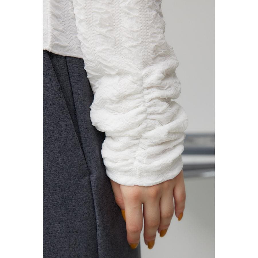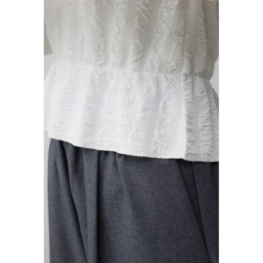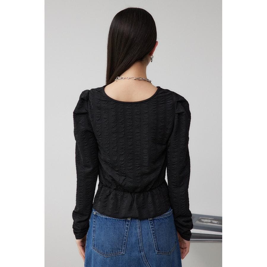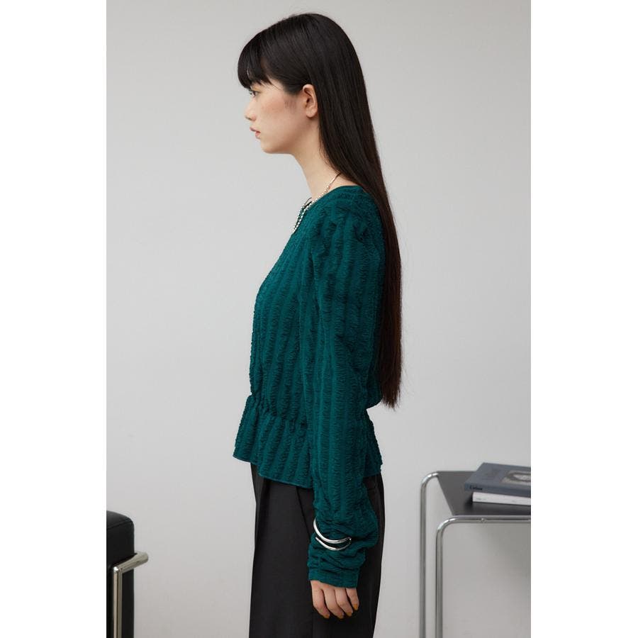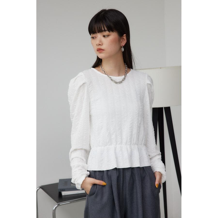 表面感のあるふくれジャガード生地が目を引くカットソートップスです。