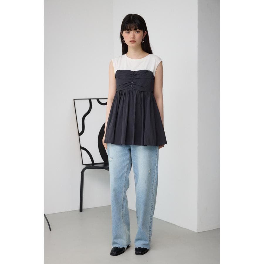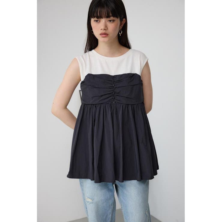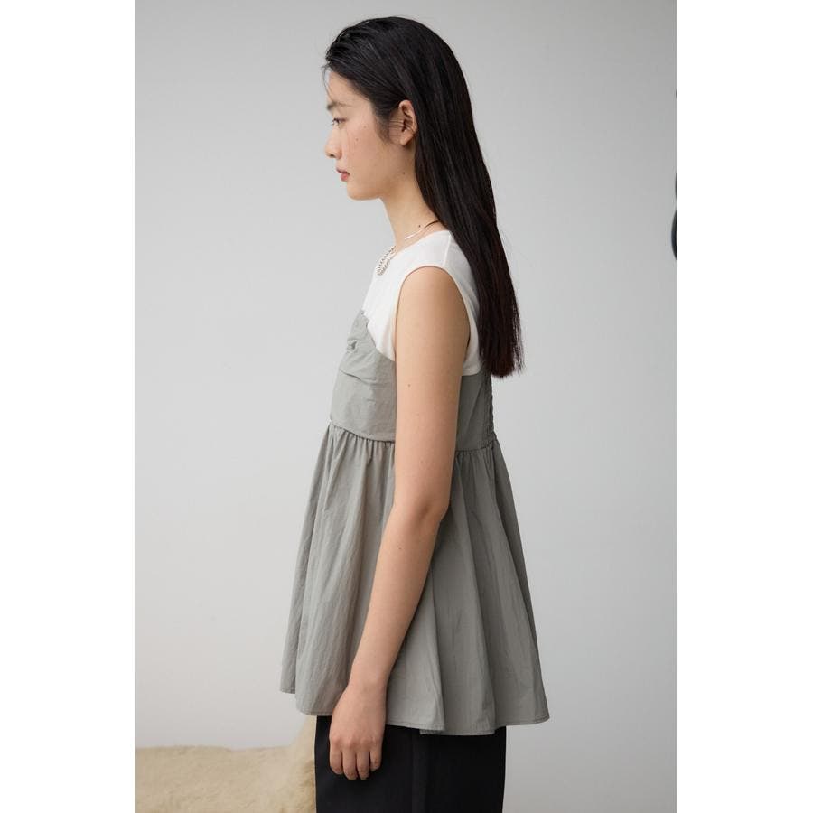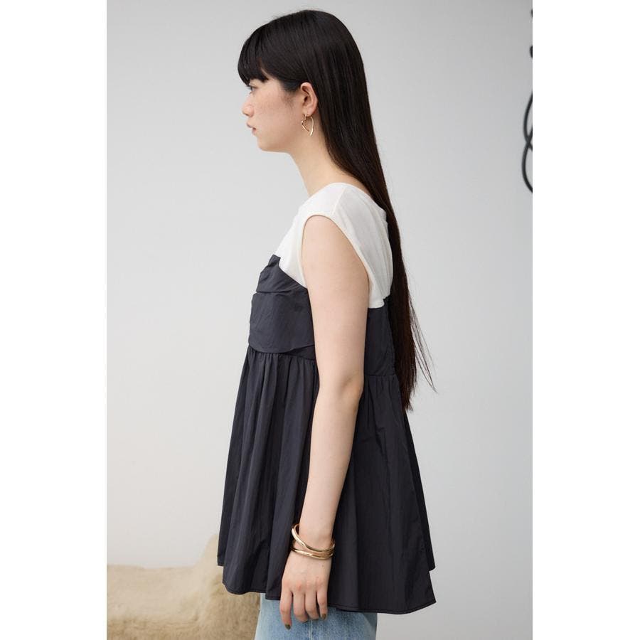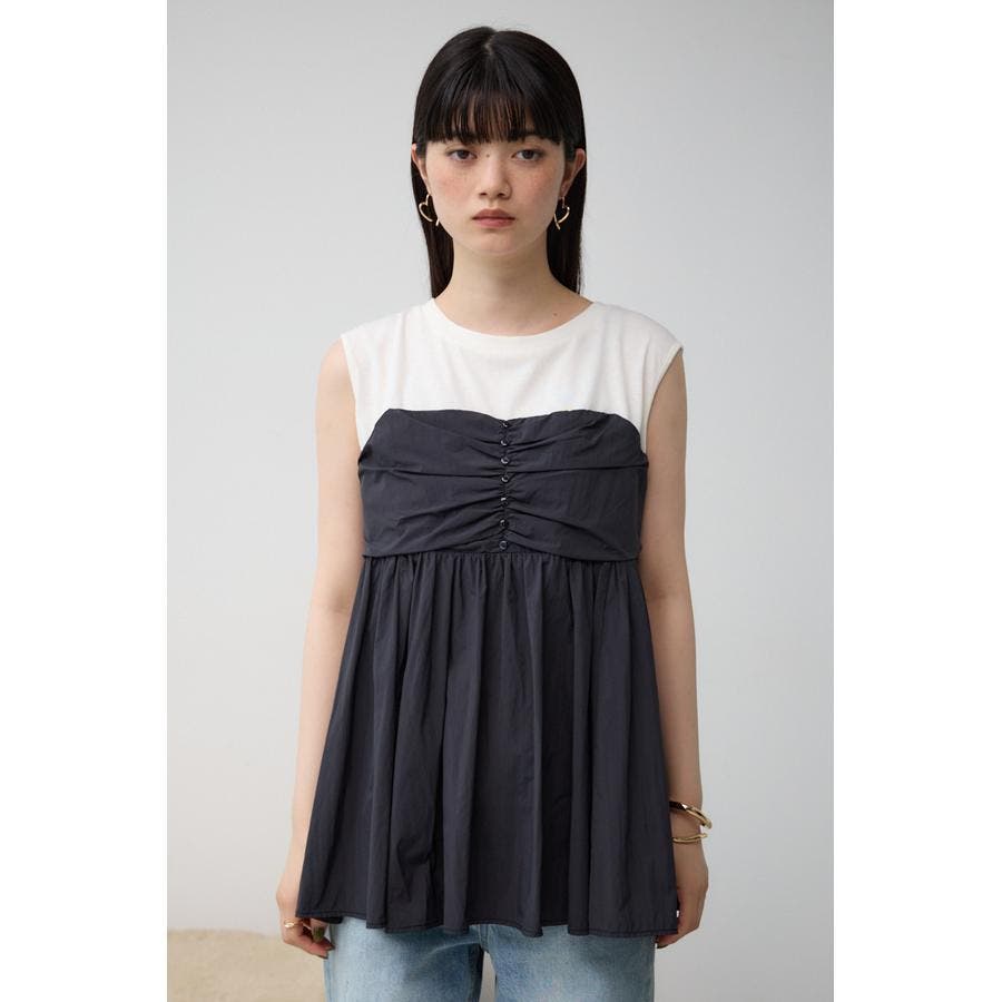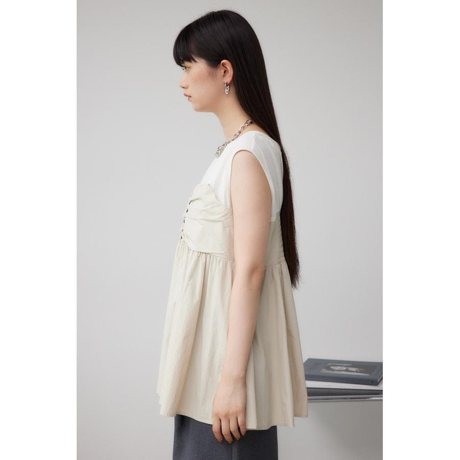 ■商品(デザイン)ポイント:1枚着るだけでスタイリングが完成するビスチェドッキングトップス。