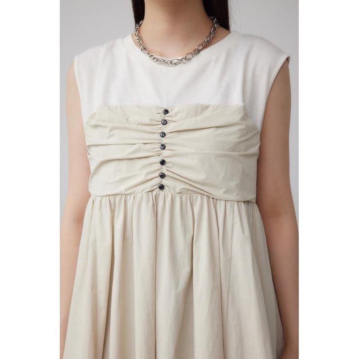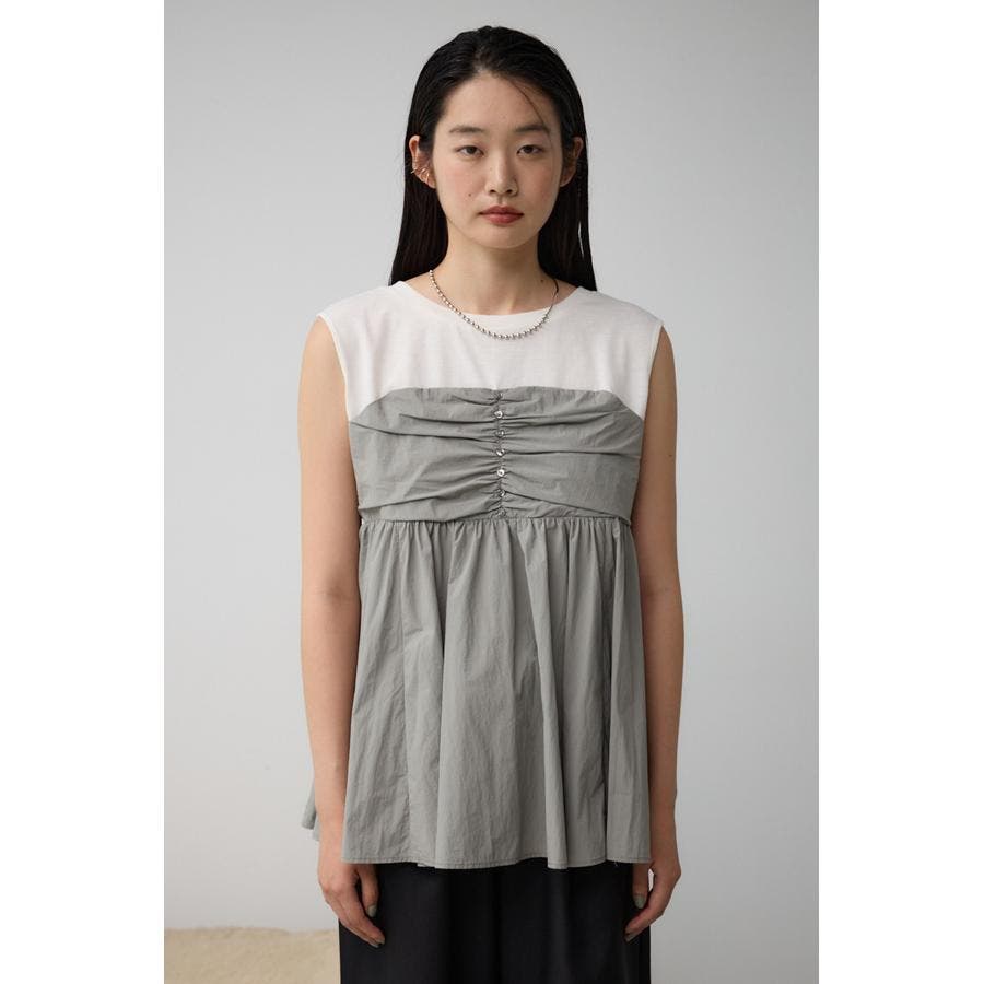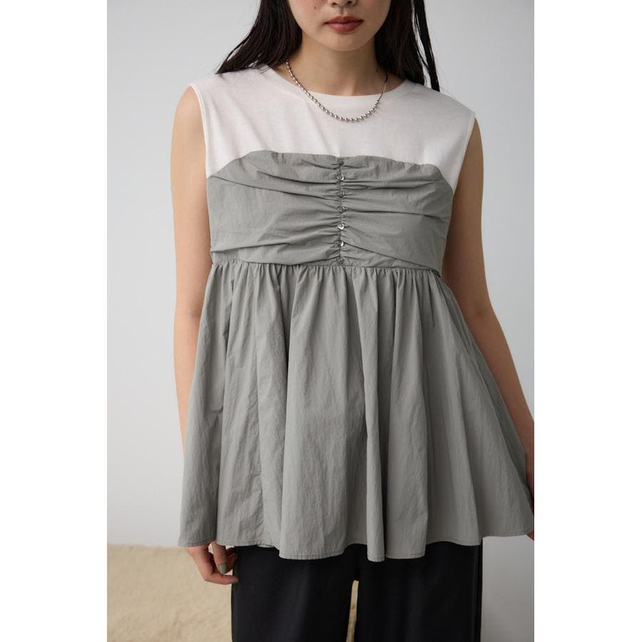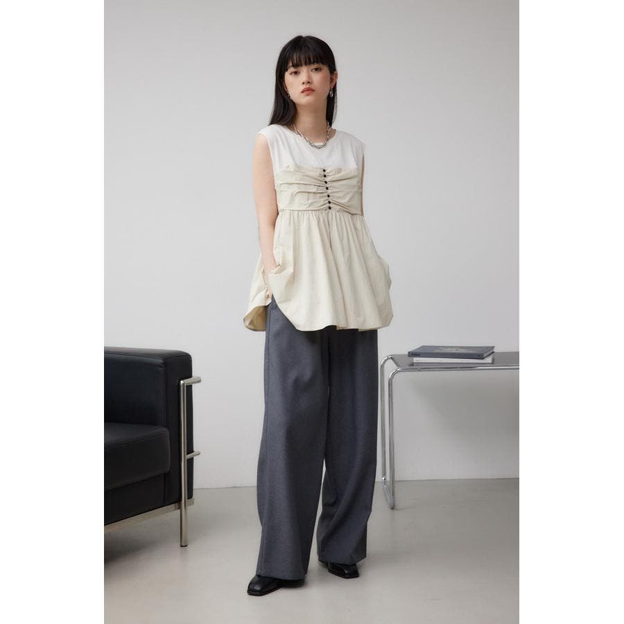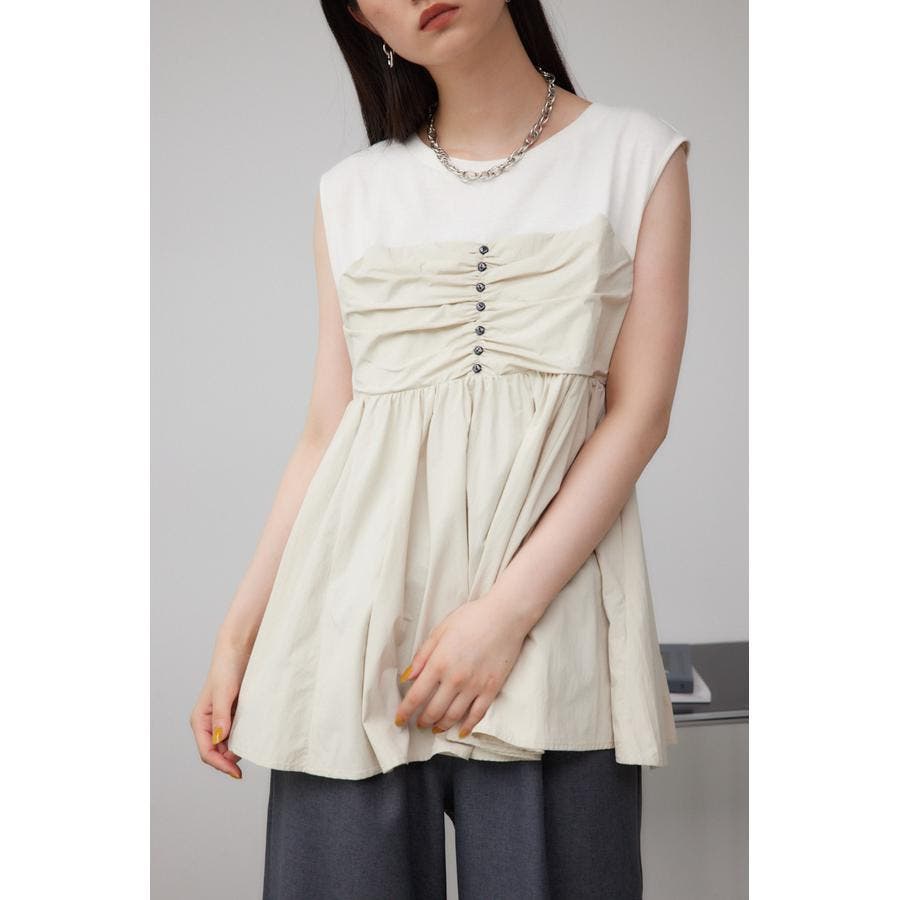 ■商品(デザイン)ポイント:1枚着るだけでスタイリングが完成するビスチェドッキングトップス。