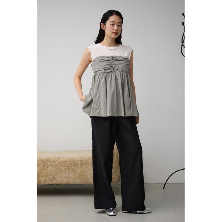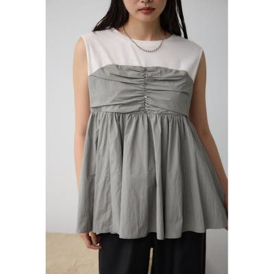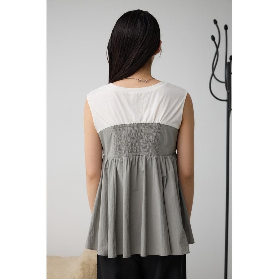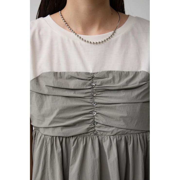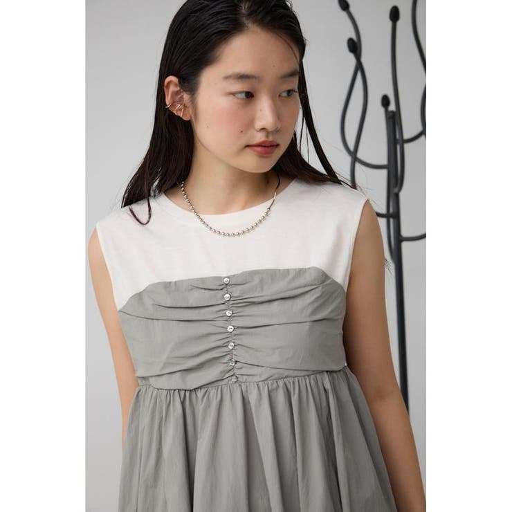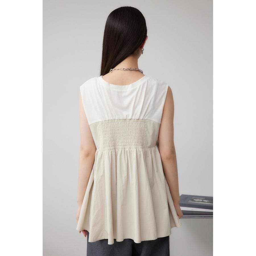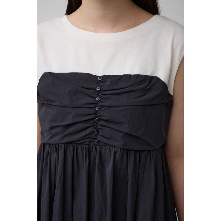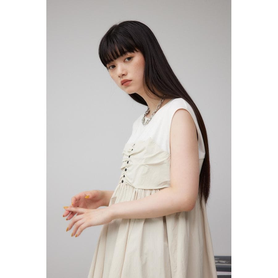 ■商品(デザイン)ポイント:1枚着るだけでスタイリングが完成するビスチェドッキングトップス。