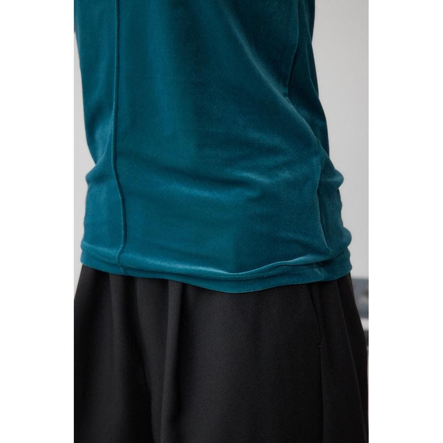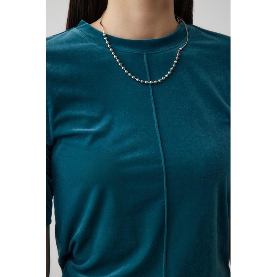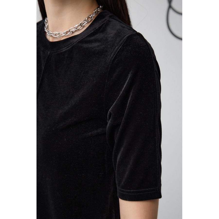 肘上まである5分袖で、体のラインを拾いすぎずにきれいなシルエットを出せるようにこだわりました。