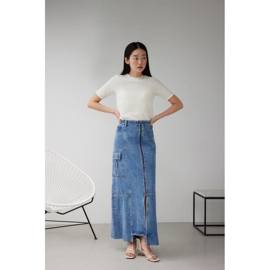 ■商品(デザイン)ポイント:加工感が目を引くデザインデニムスカート。