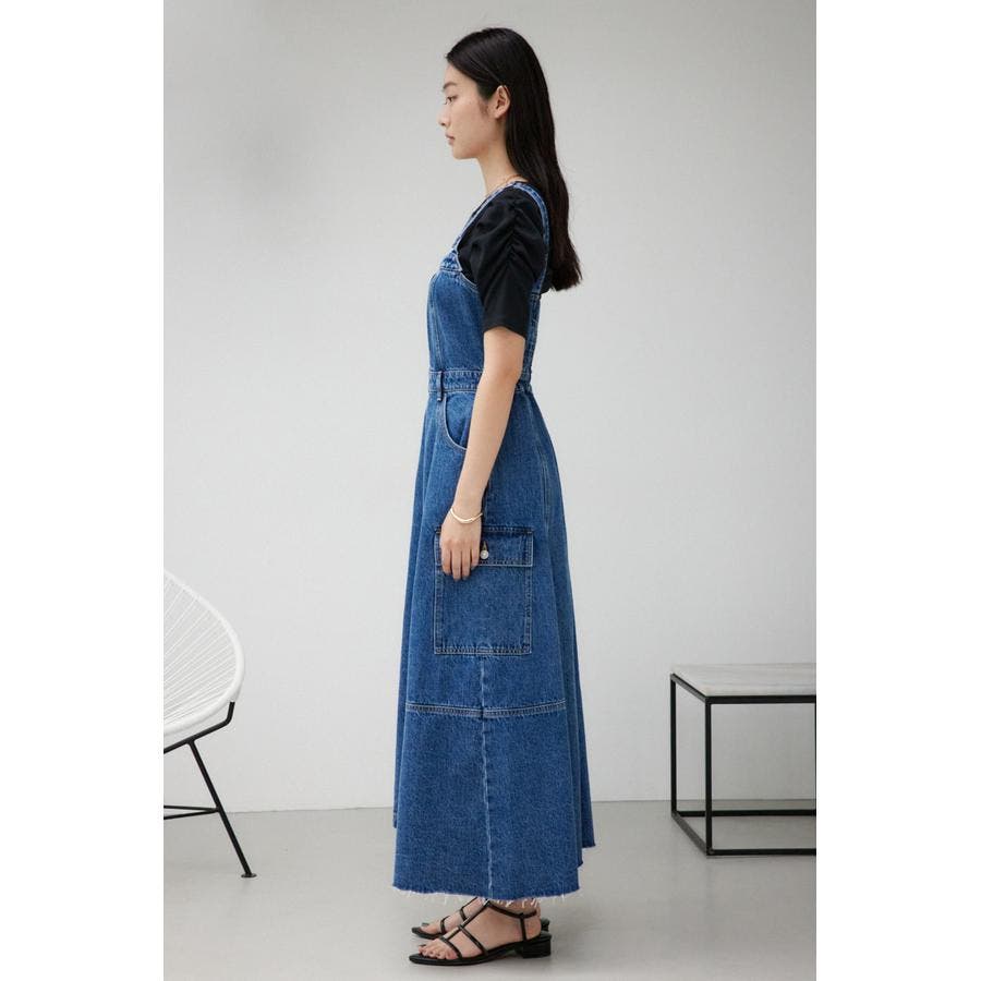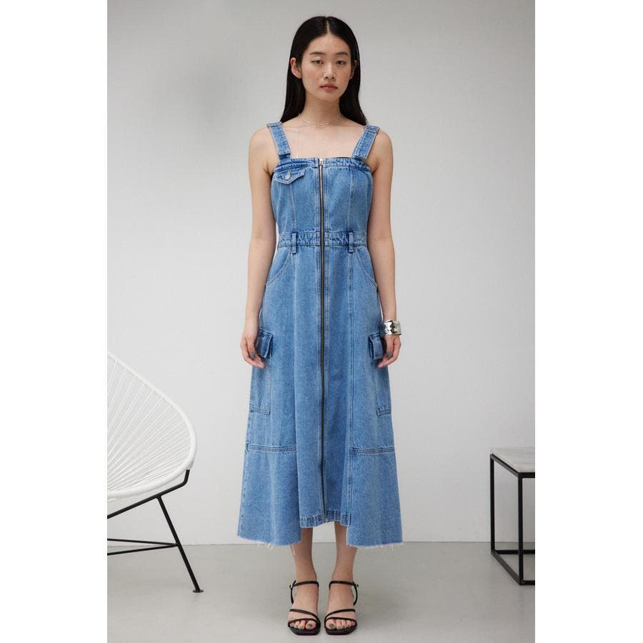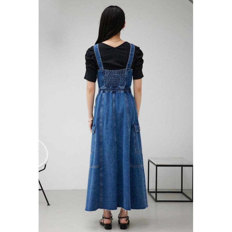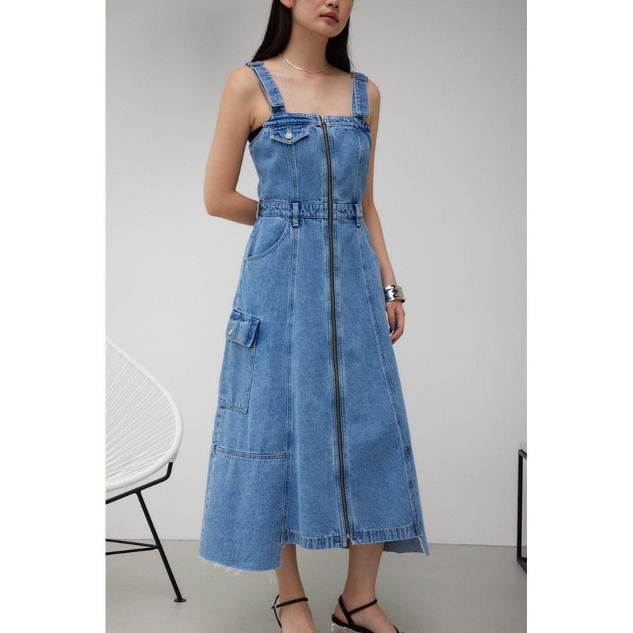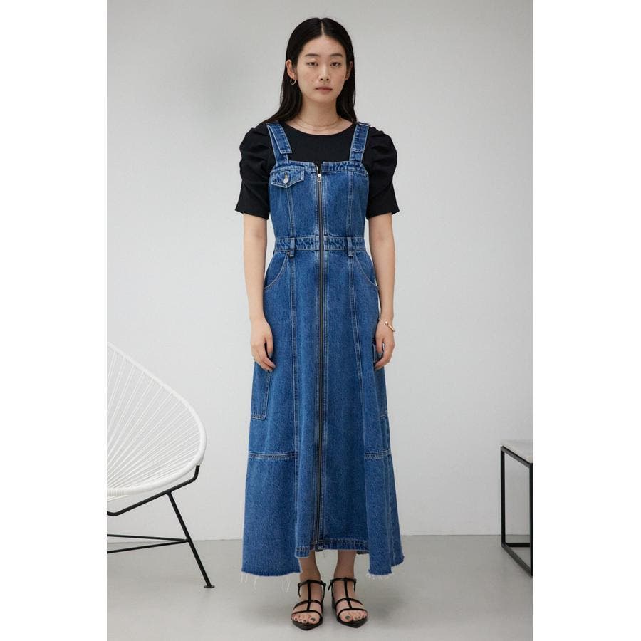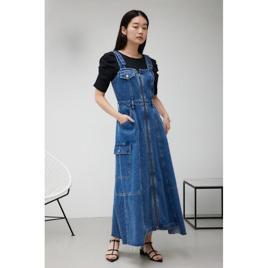 ■商品(デザイン)ポイント:雰囲気のある加工感がポイントのロングデニムワンピース。