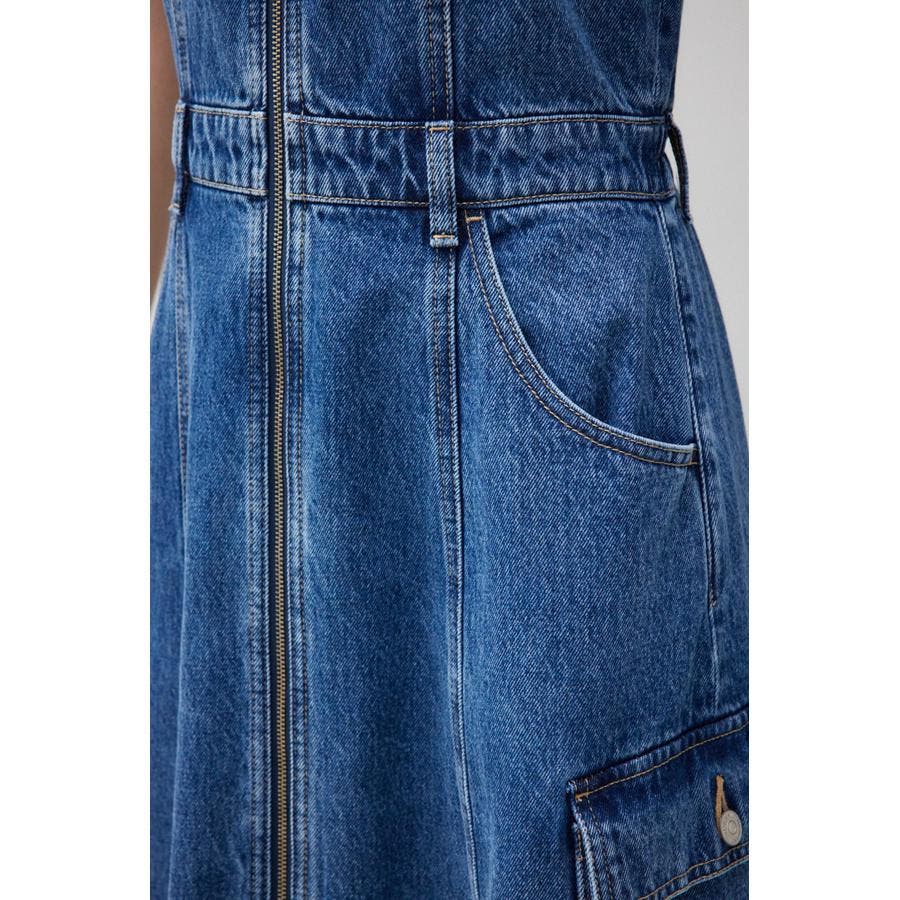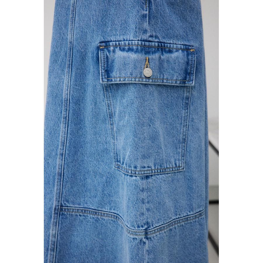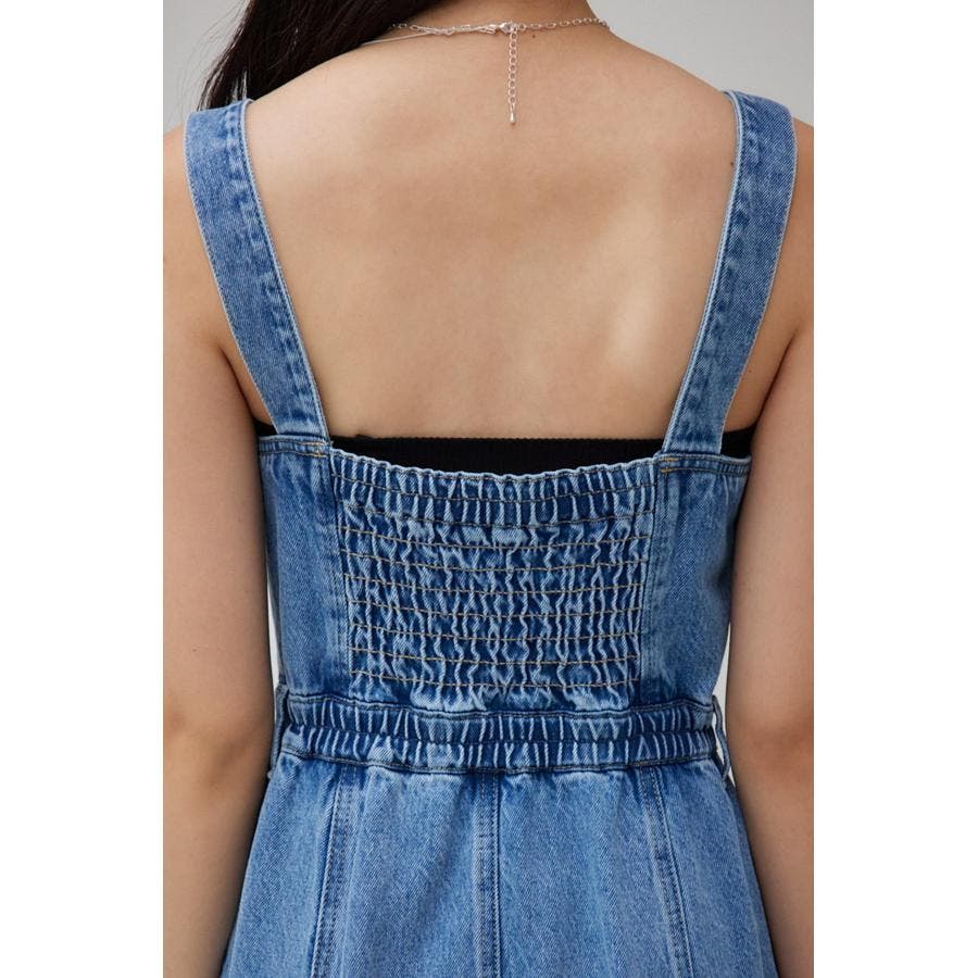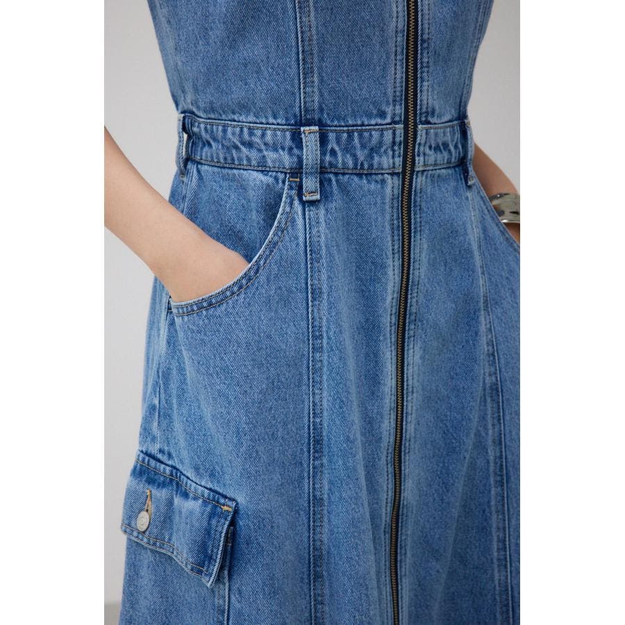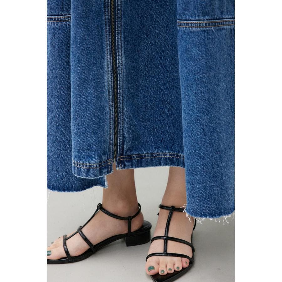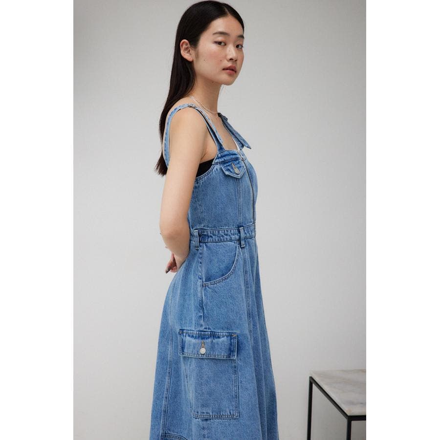 ■商品(デザイン)ポイント:雰囲気のある加工感がポイントのロングデニムワンピース。