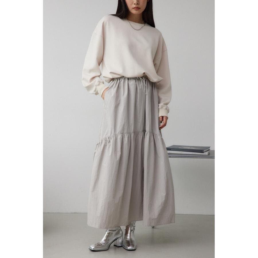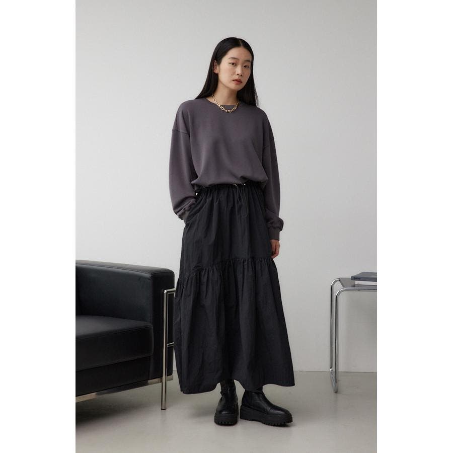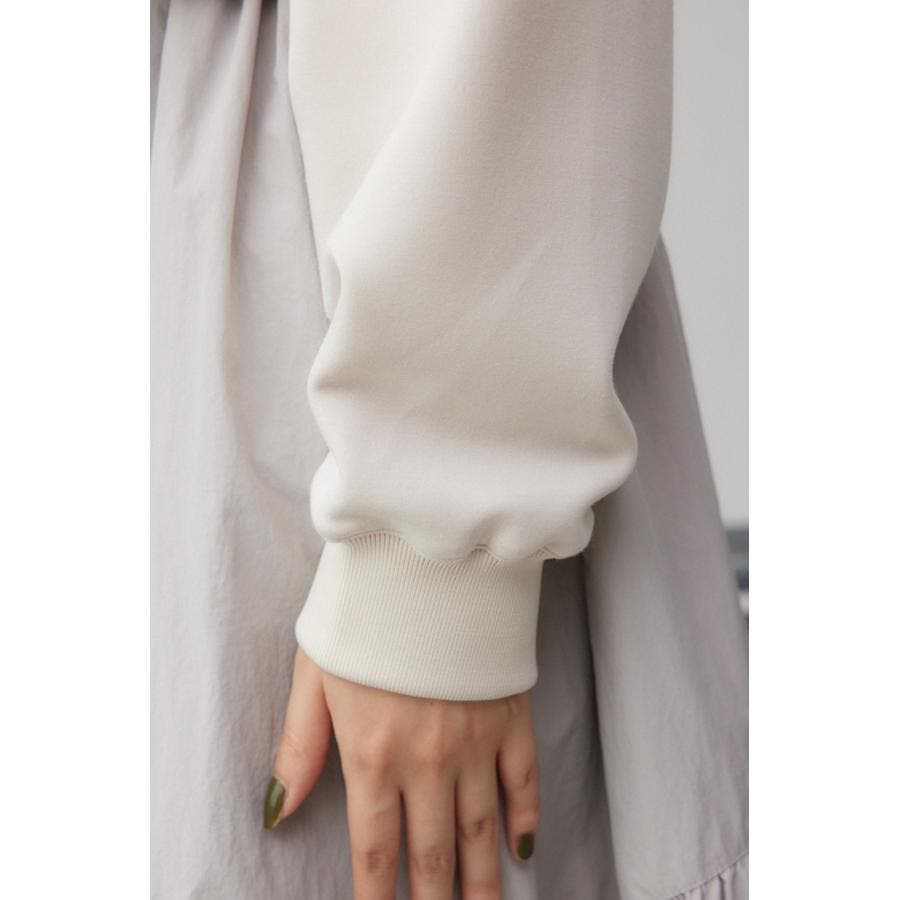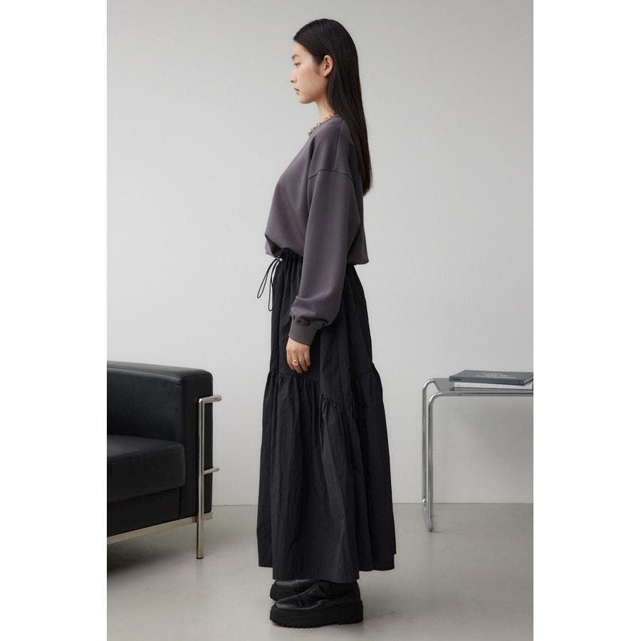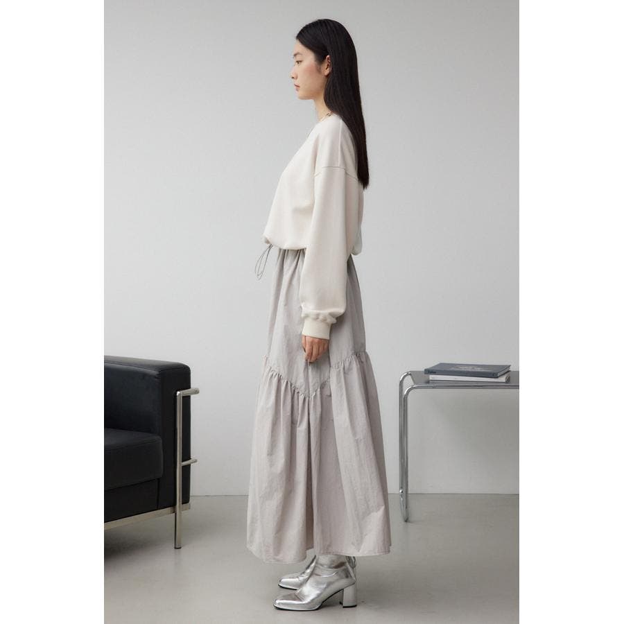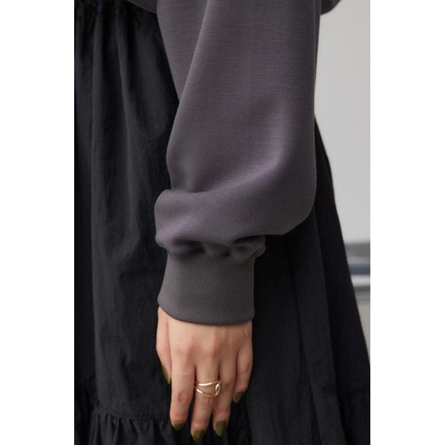 たっぷりとギャザーの入ったボリュームのあるスカートに、スウェットを合わせたようなドッキングデザインです。
