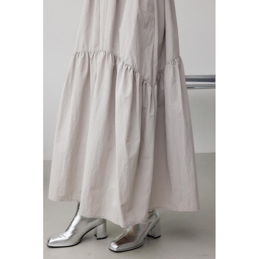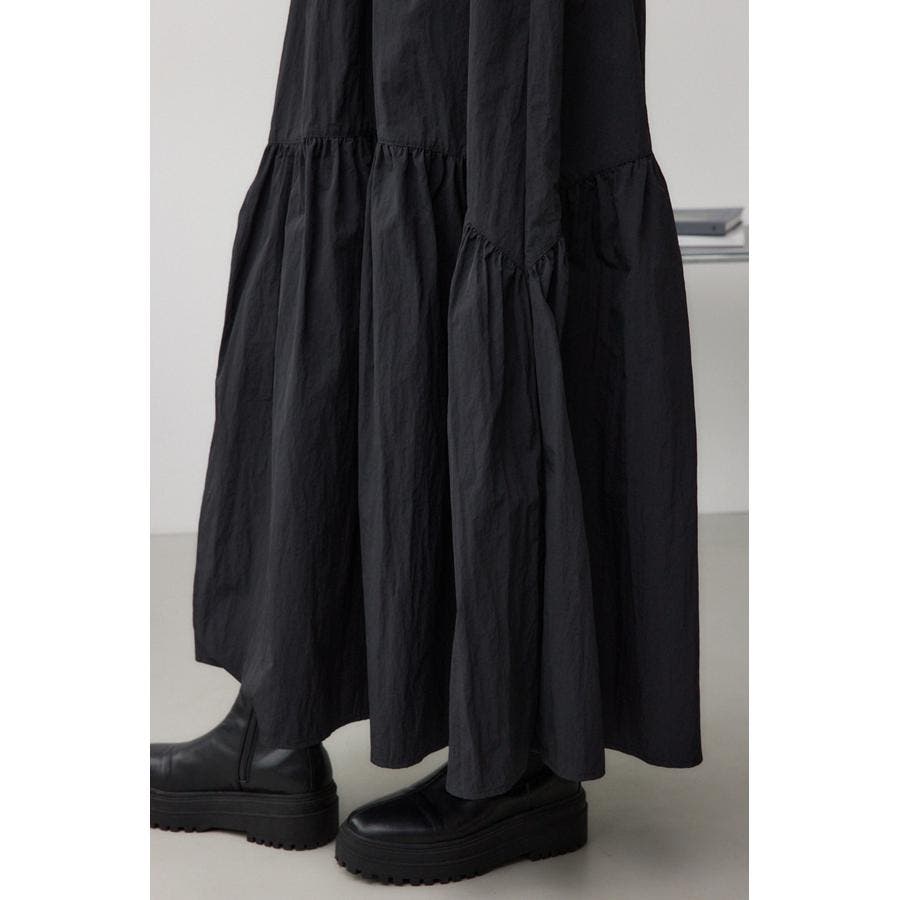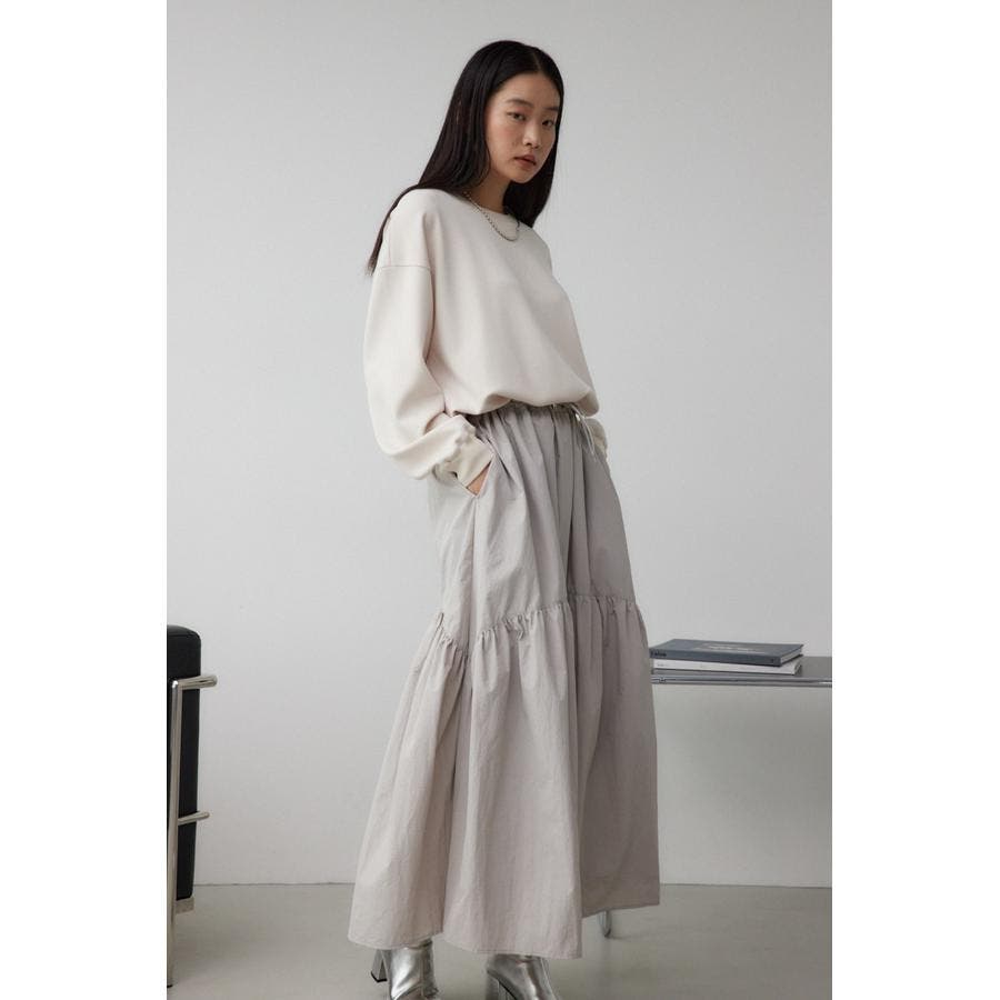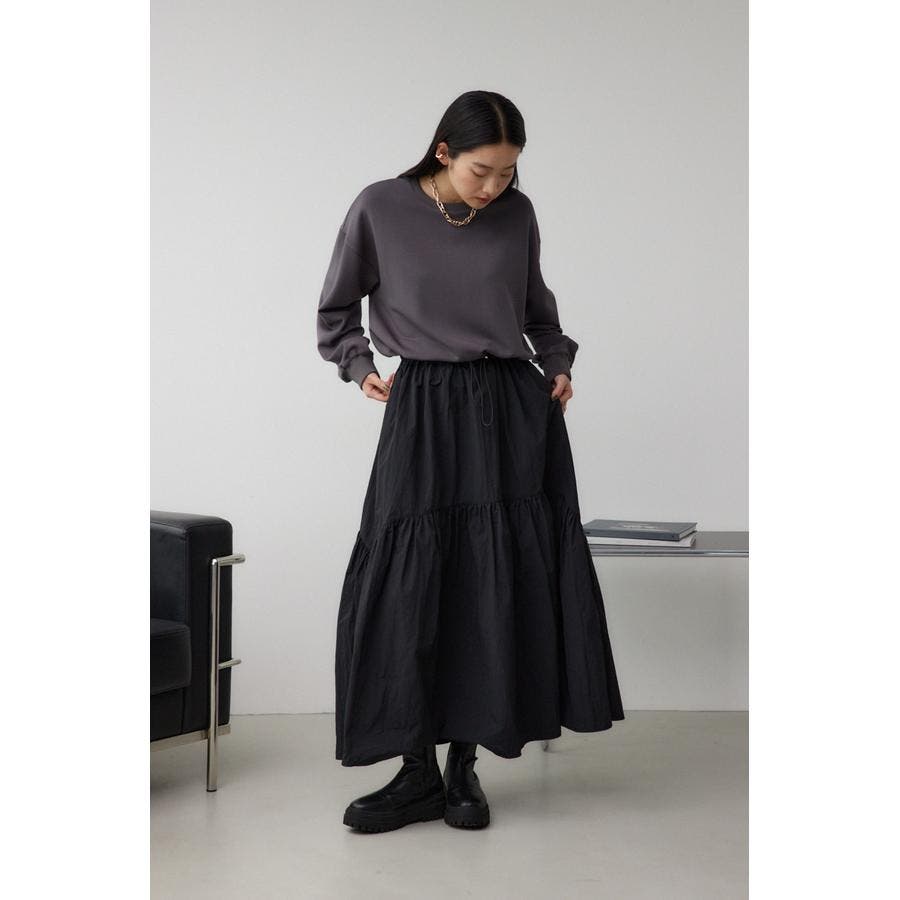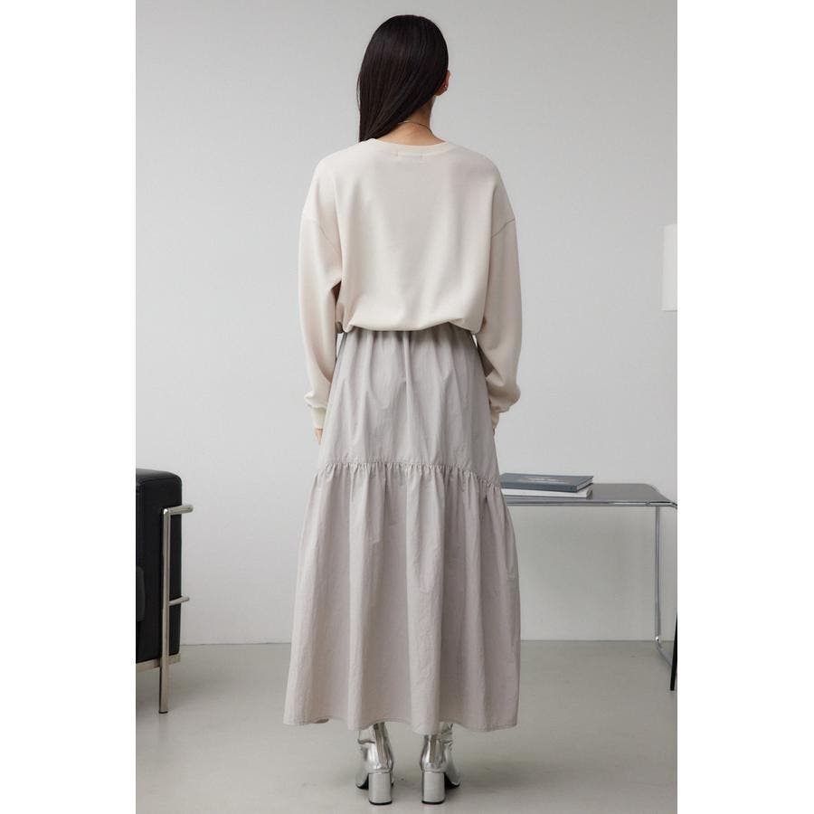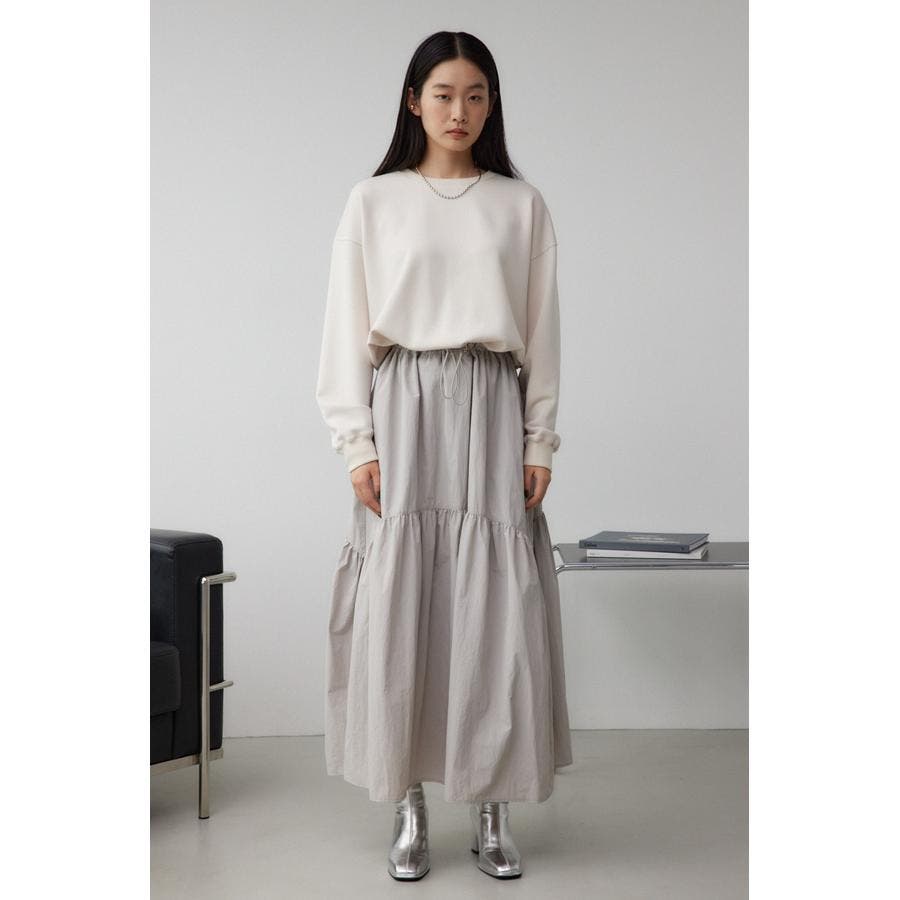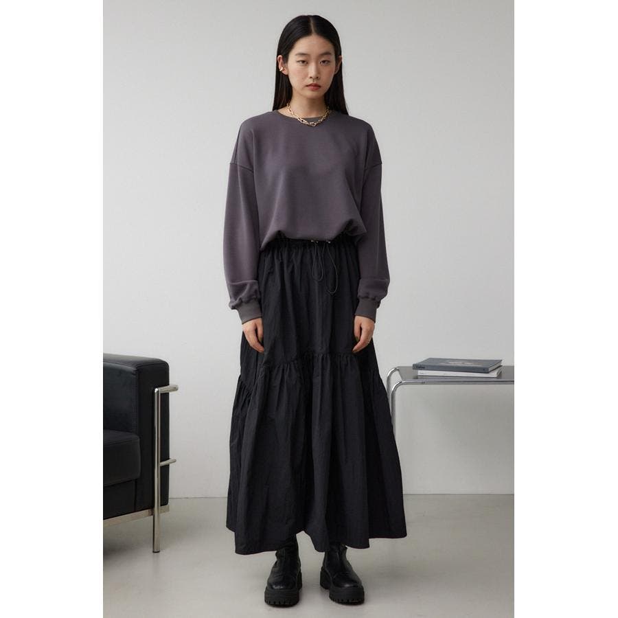 たっぷりとギャザーの入ったボリュームのあるスカートに、スウェットを合わせたようなドッキングデザインです。