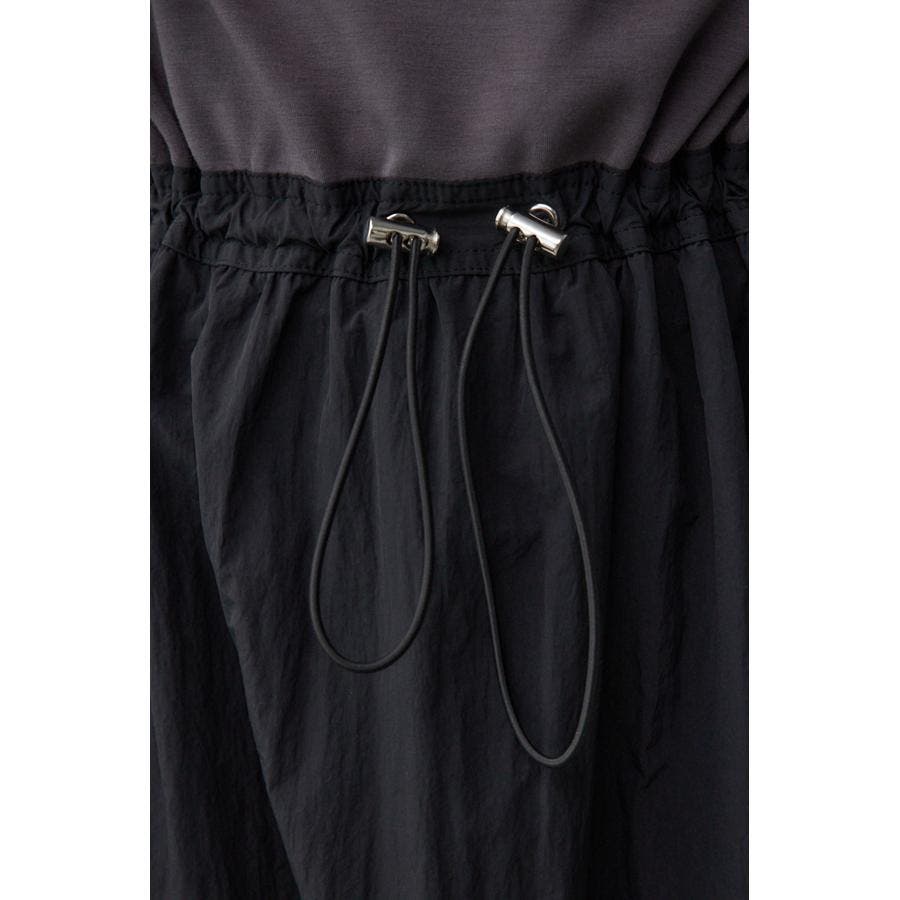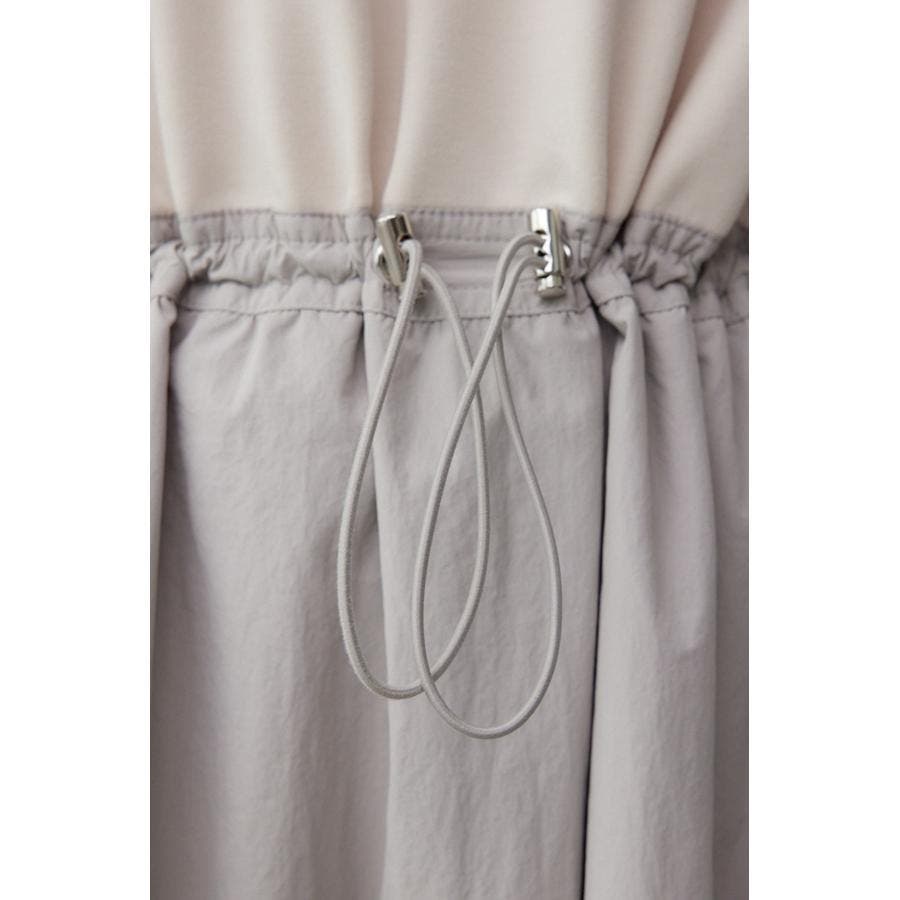 トップス部分はさらりとした風合いのカットソーを使用し、スカート部分は程よいハリ感のナイロン生地を使用しています。