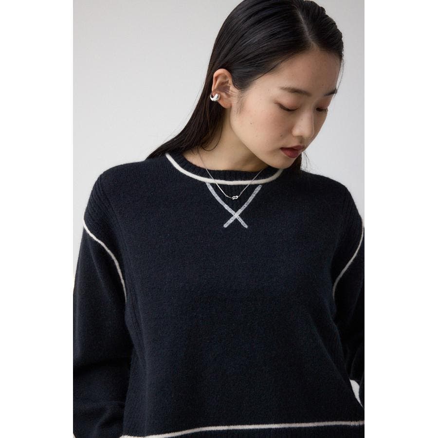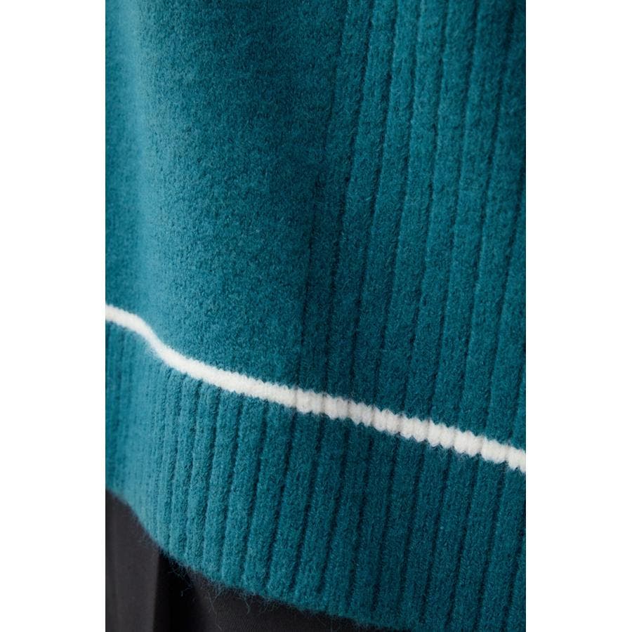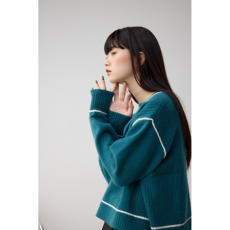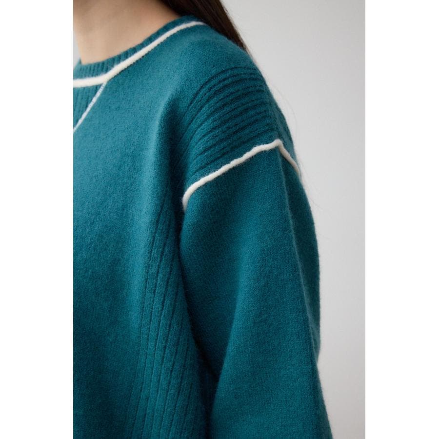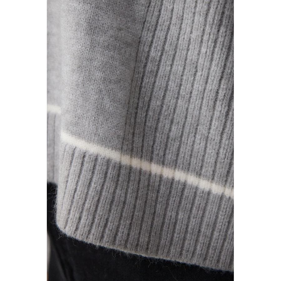 スウェットライクな配色ラインデザインのニットプルオーバー。