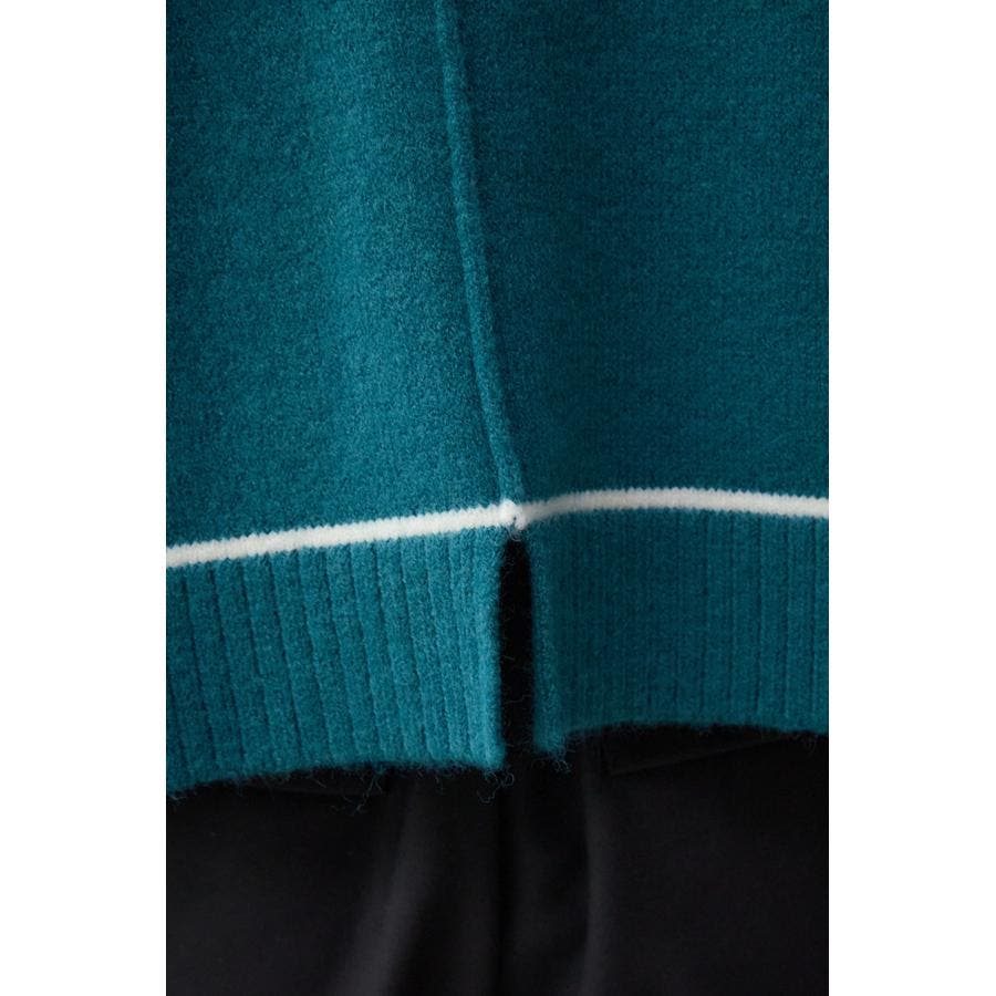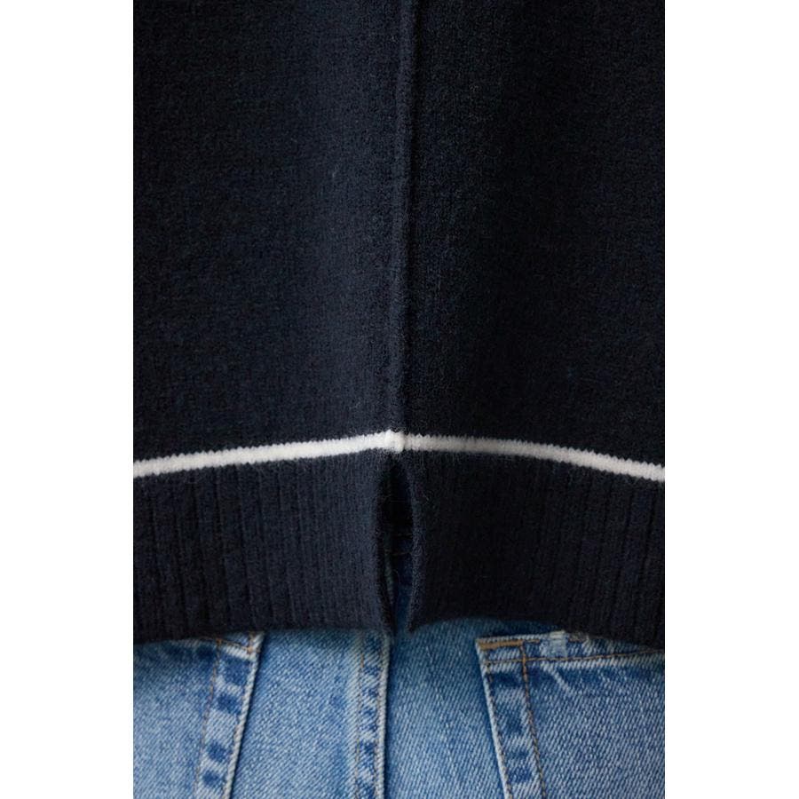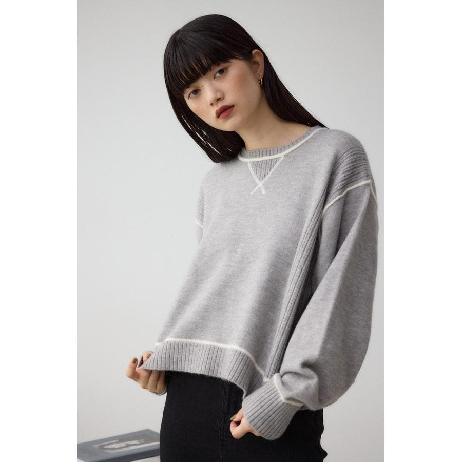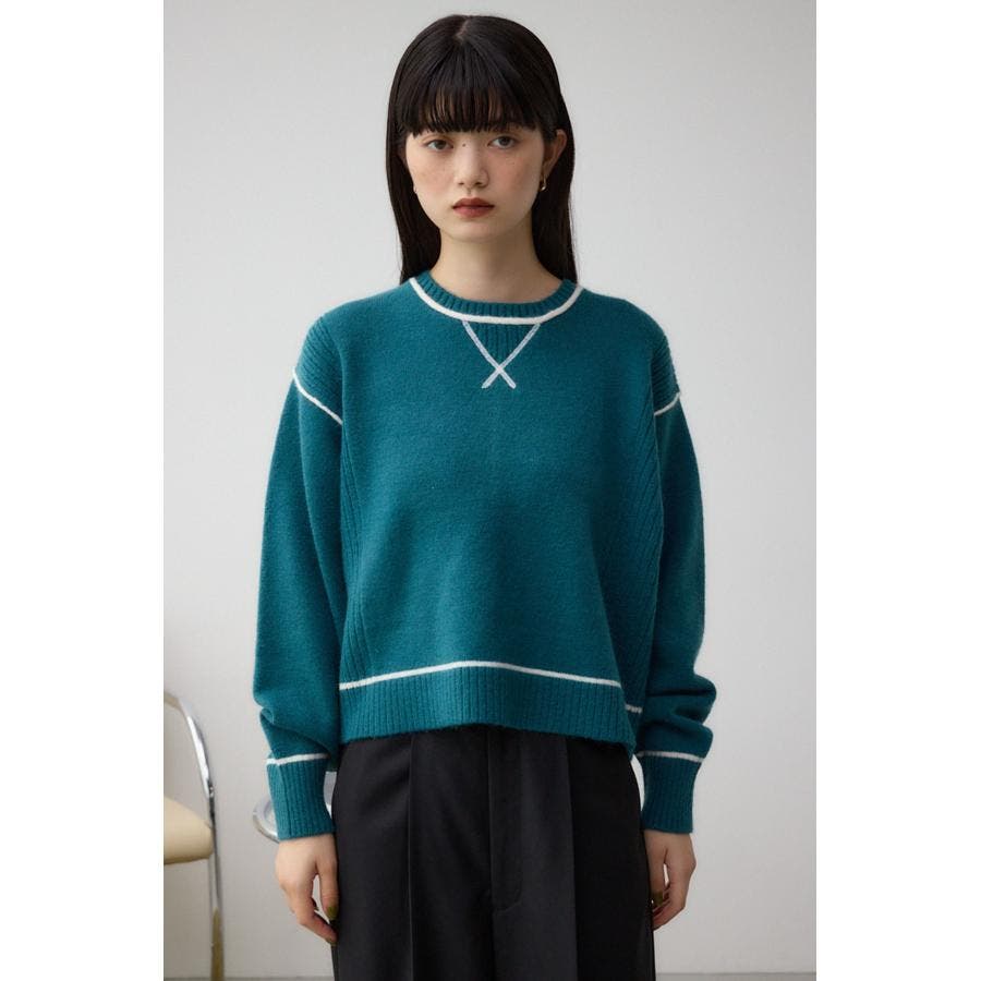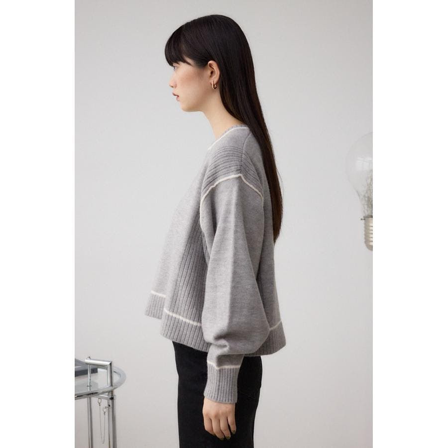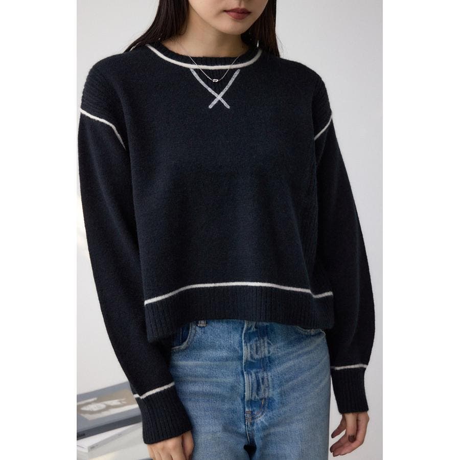 スウェットライクな配色ラインデザインのニットプルオーバー。