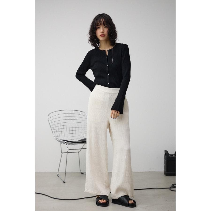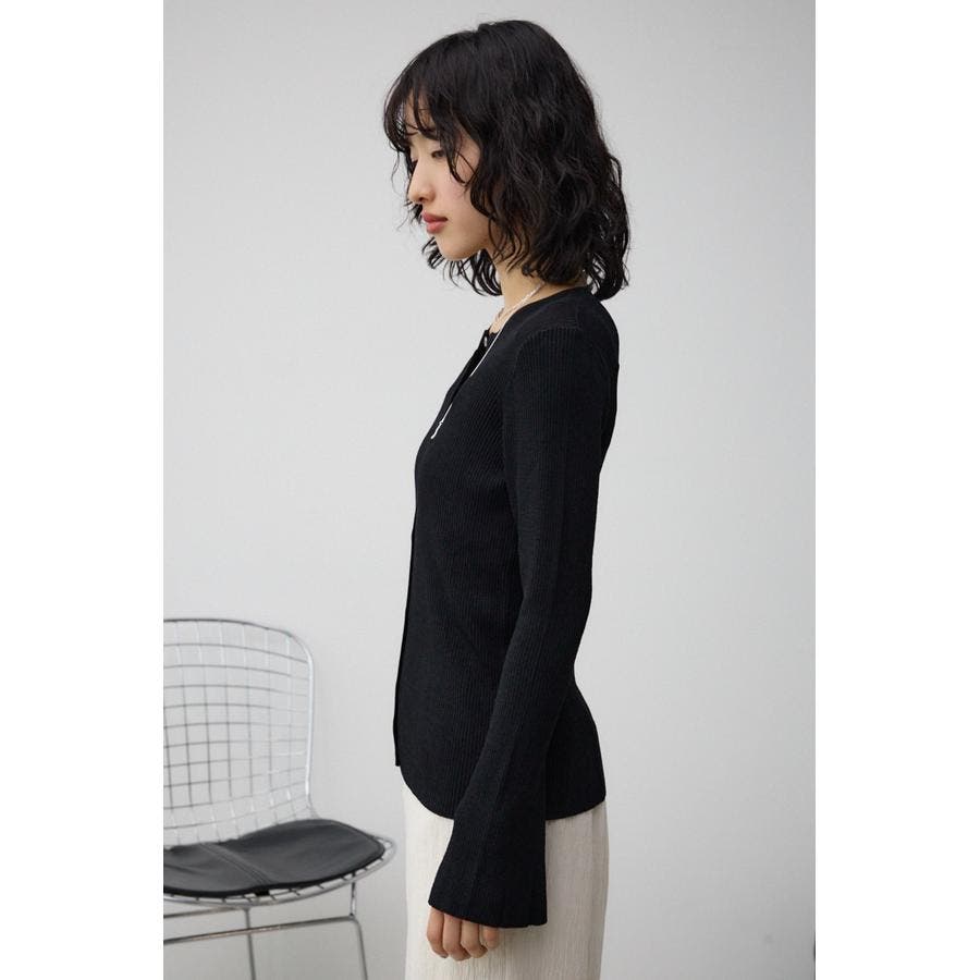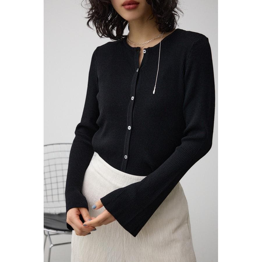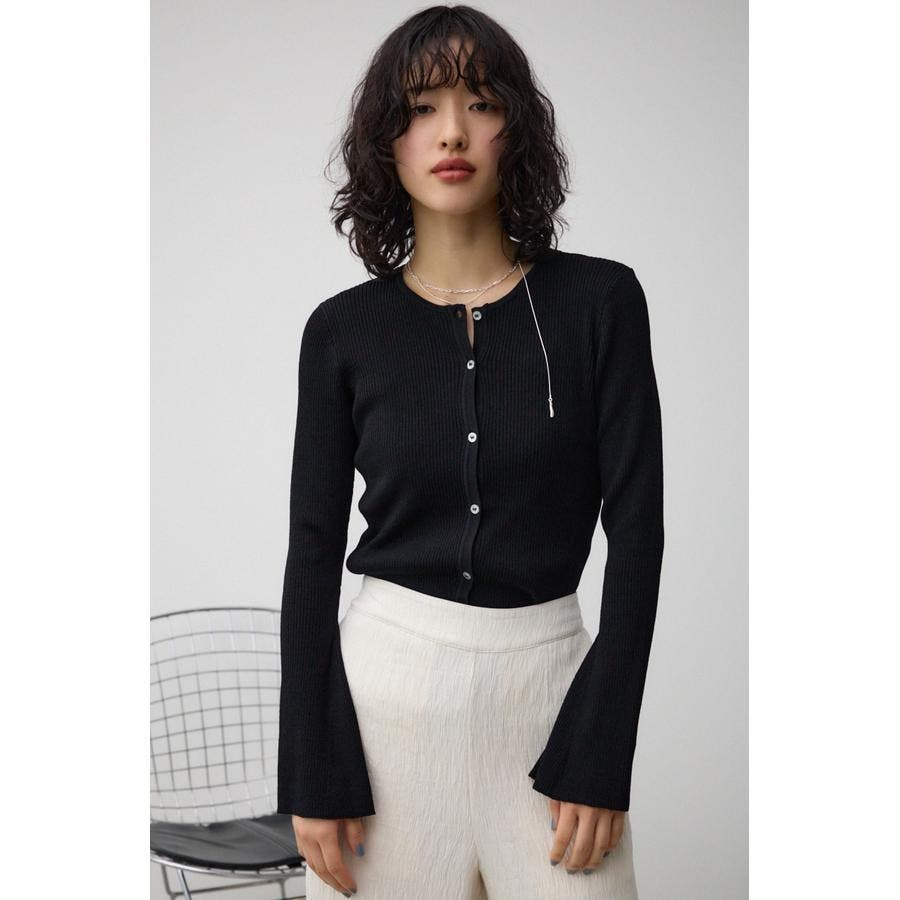 ■商品(デザイン)ポイント: スリムですっきりとしたシルエットで袖がフレアデザインのリブクルーカーディガン。