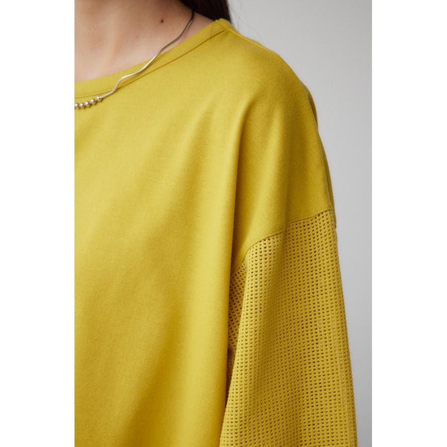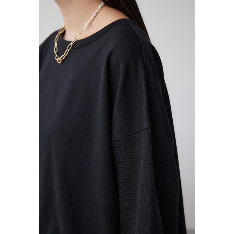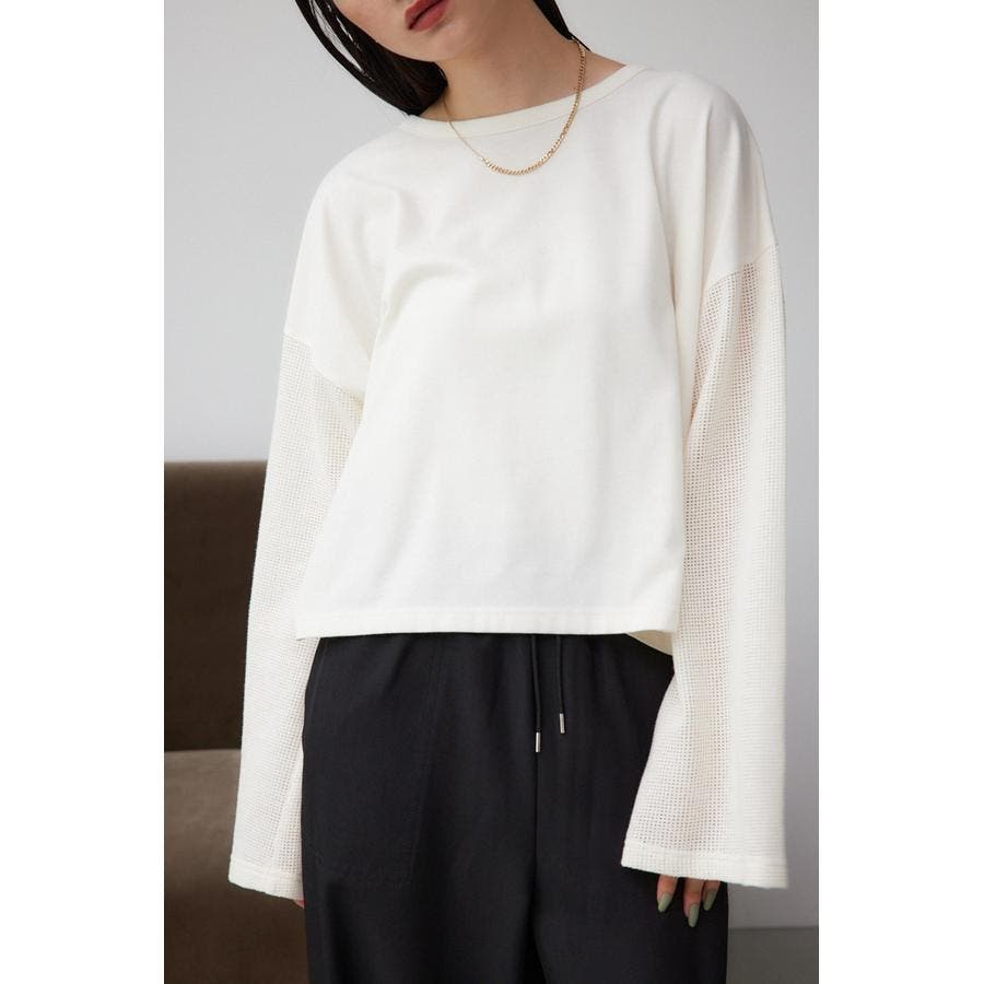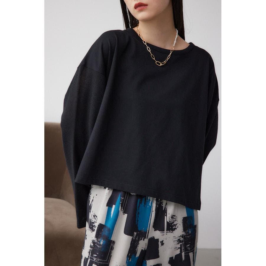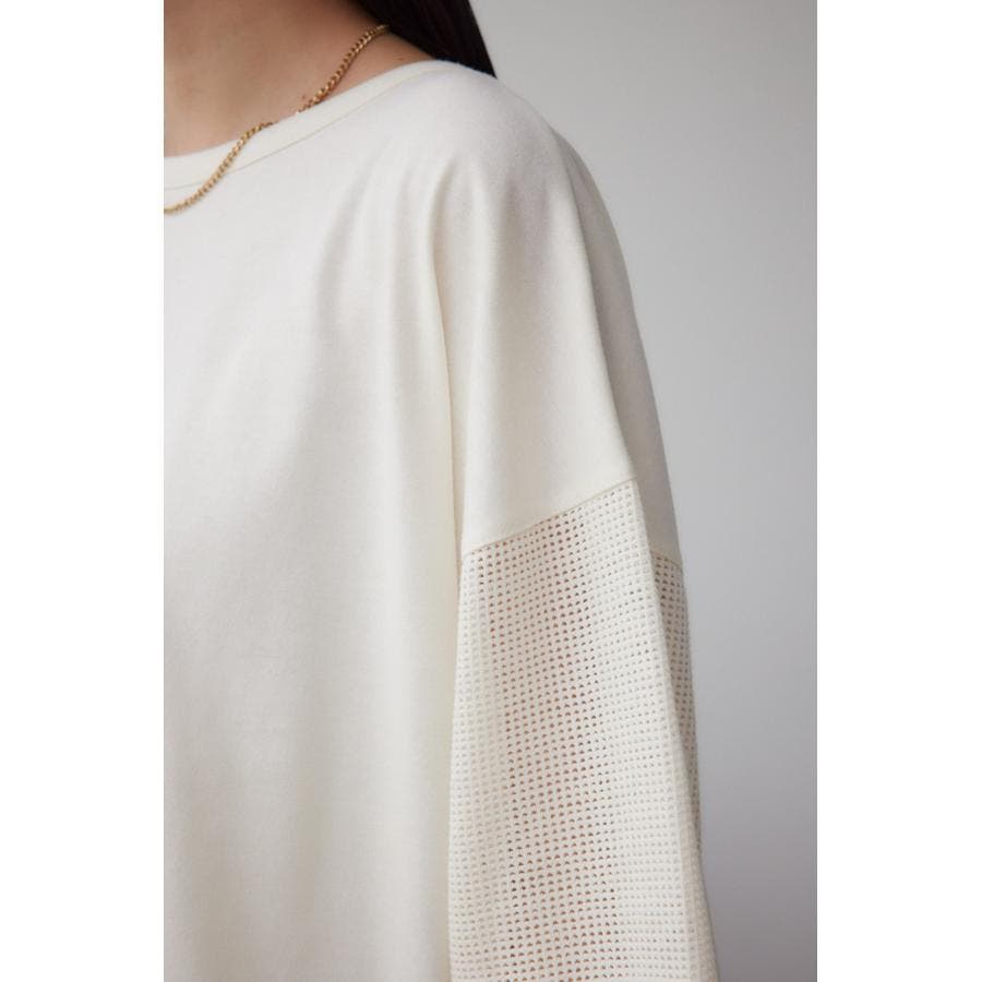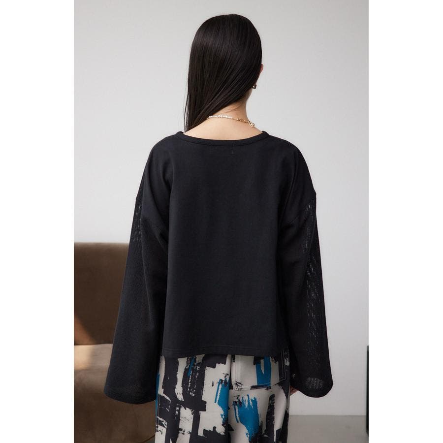 袖にメッシュ生地を使用した異素材使いのトップスです。