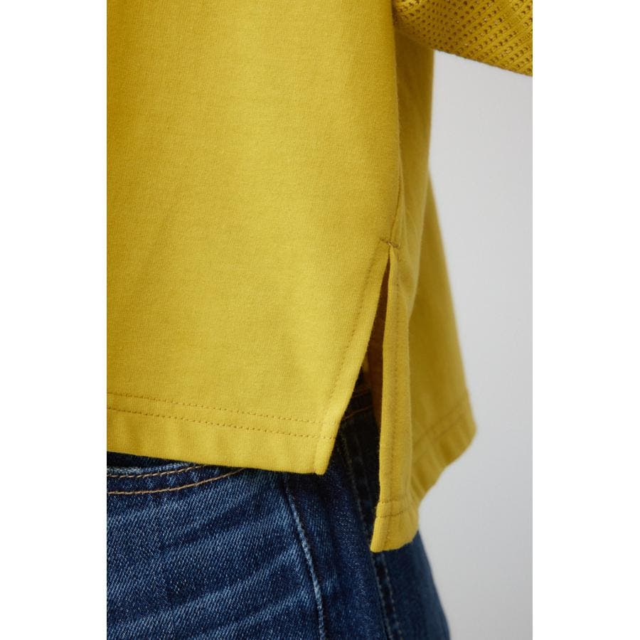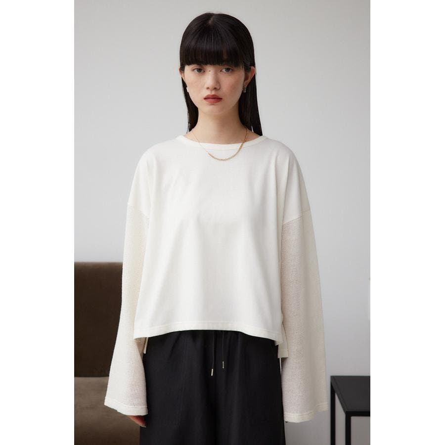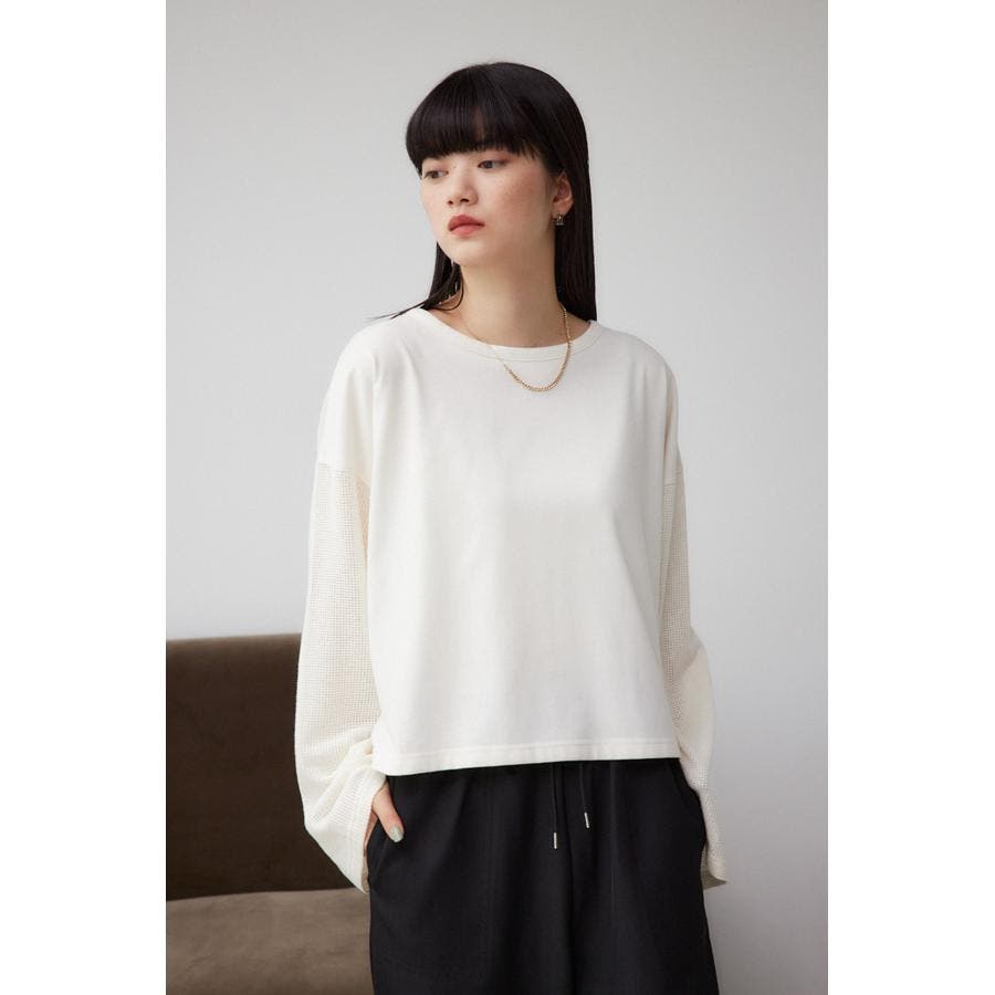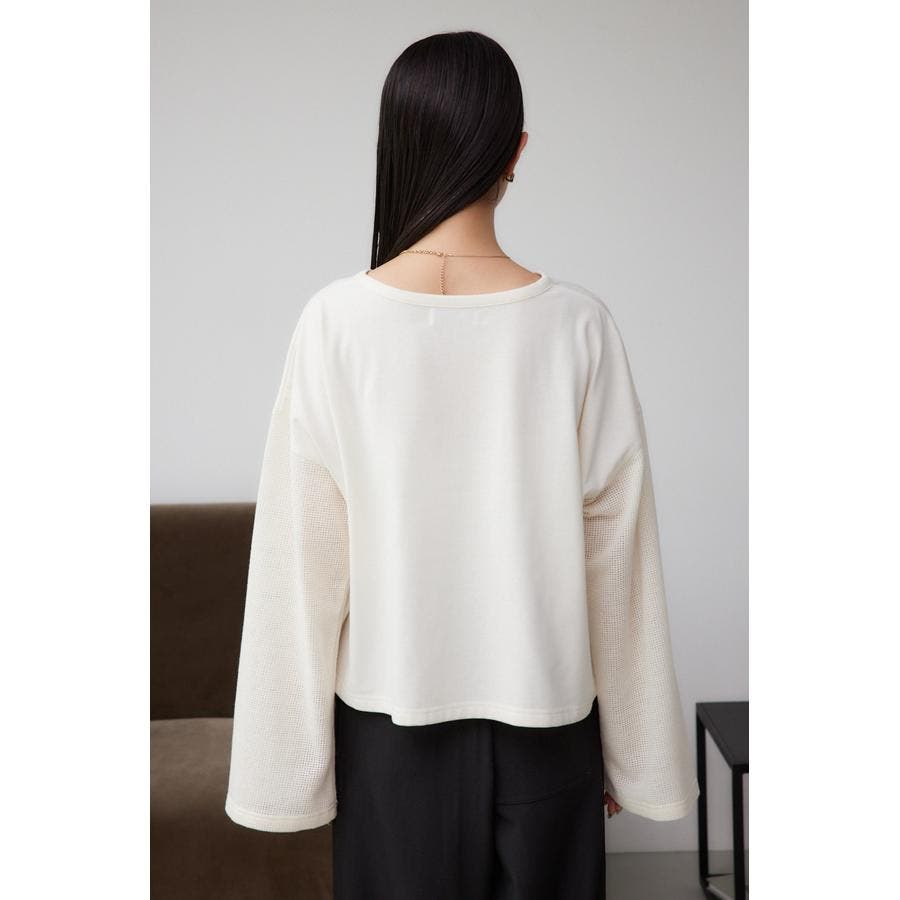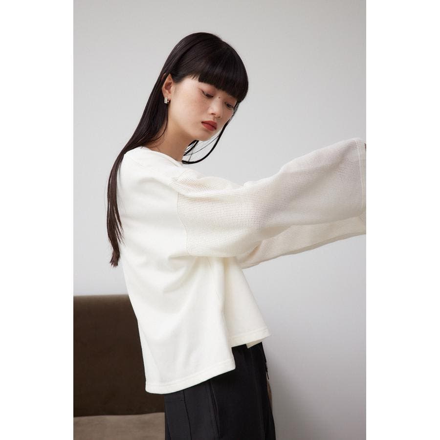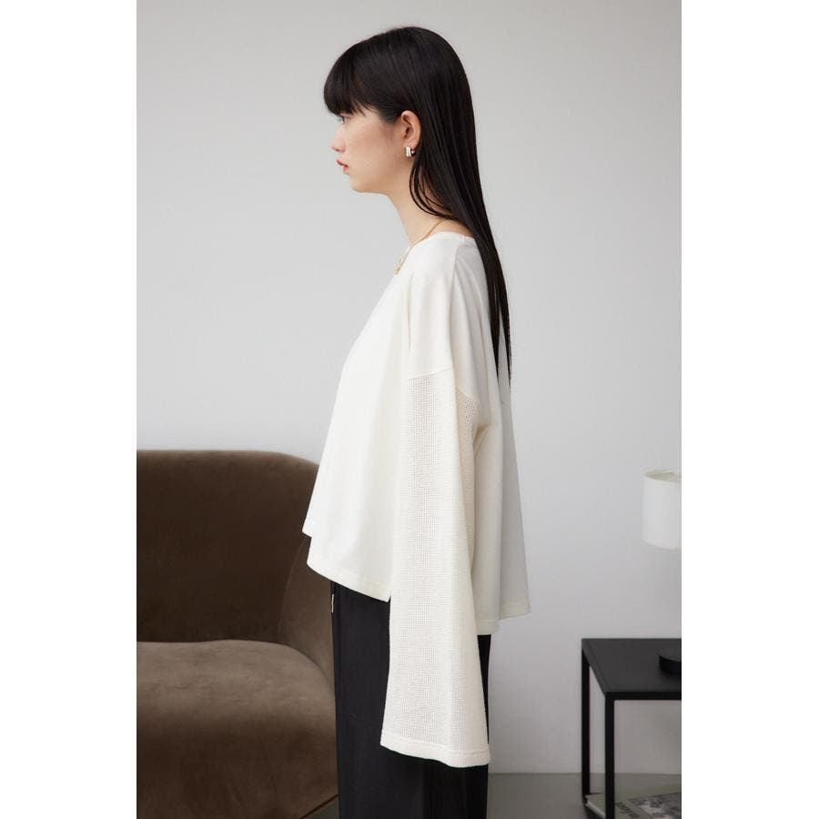 袖にメッシュ生地を使用した異素材使いのトップスです。