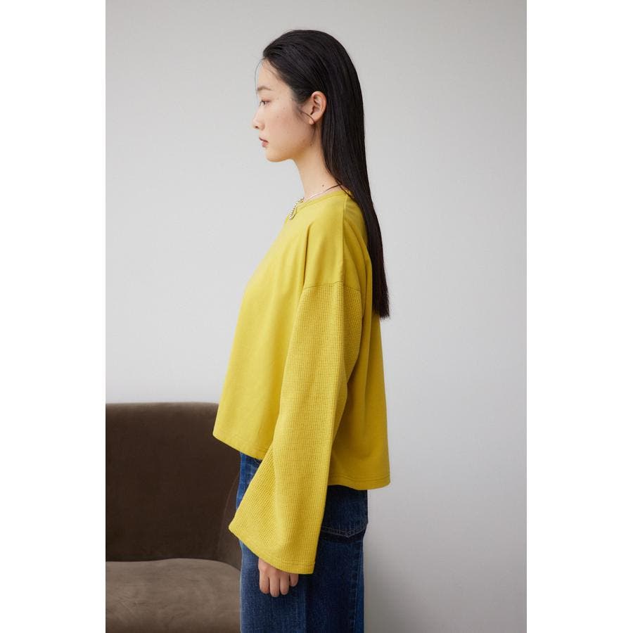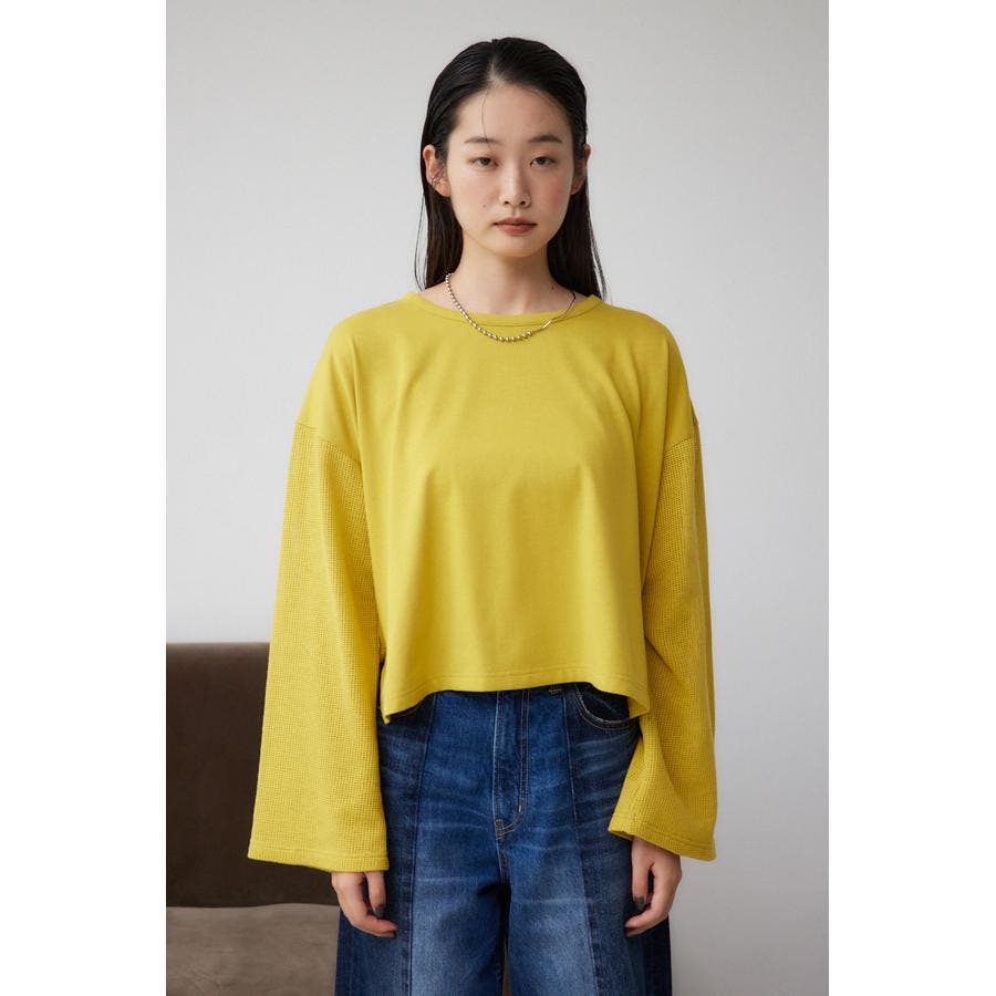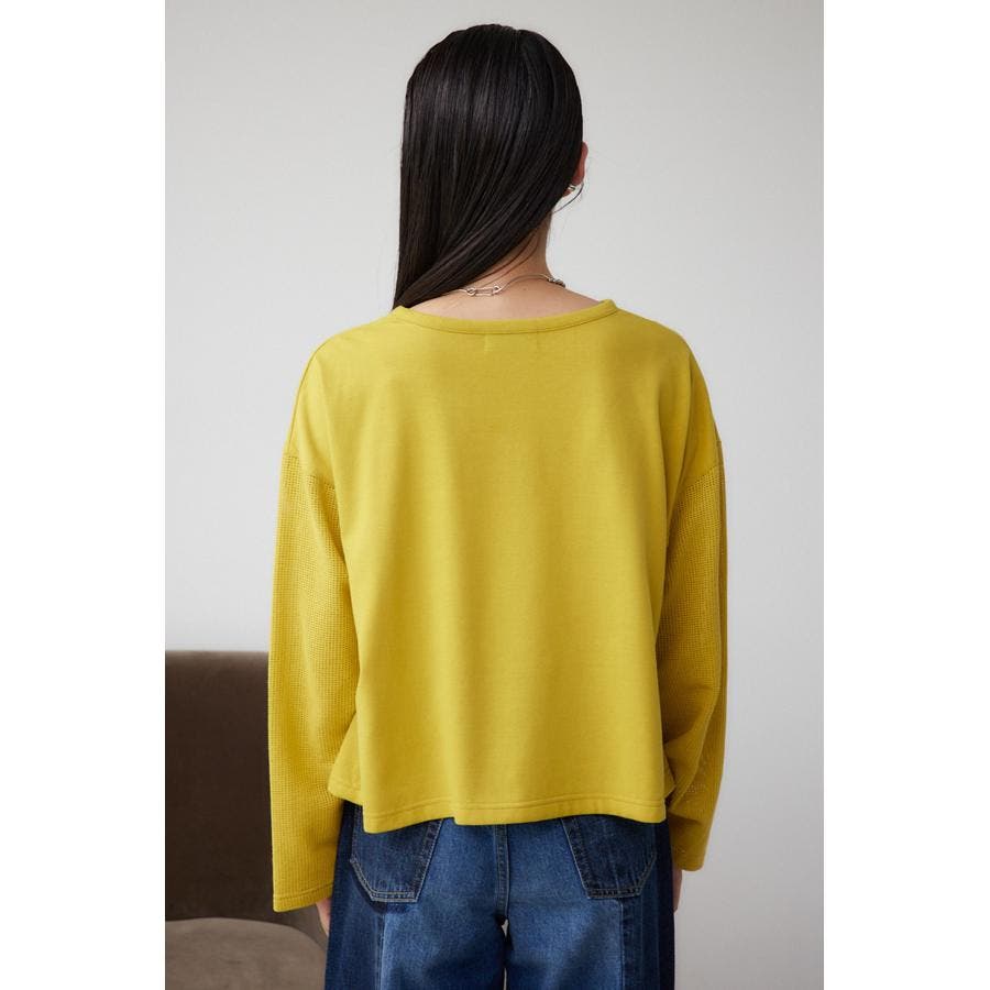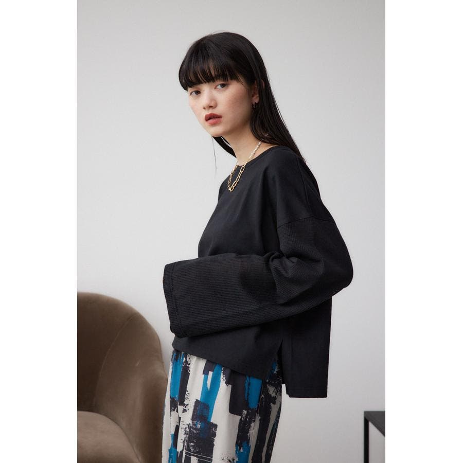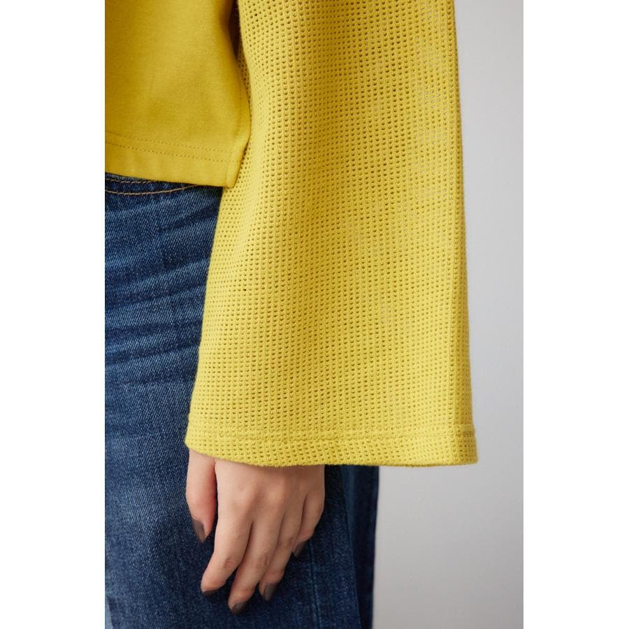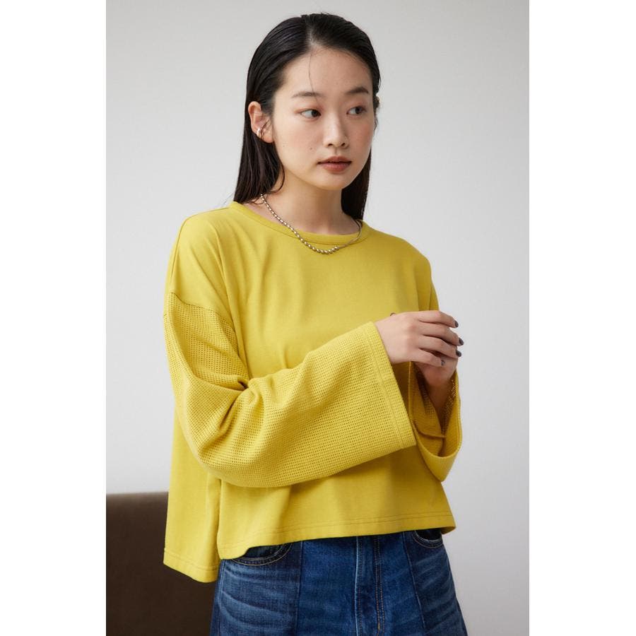 袖にメッシュ生地を使用した異素材使いのトップスです。