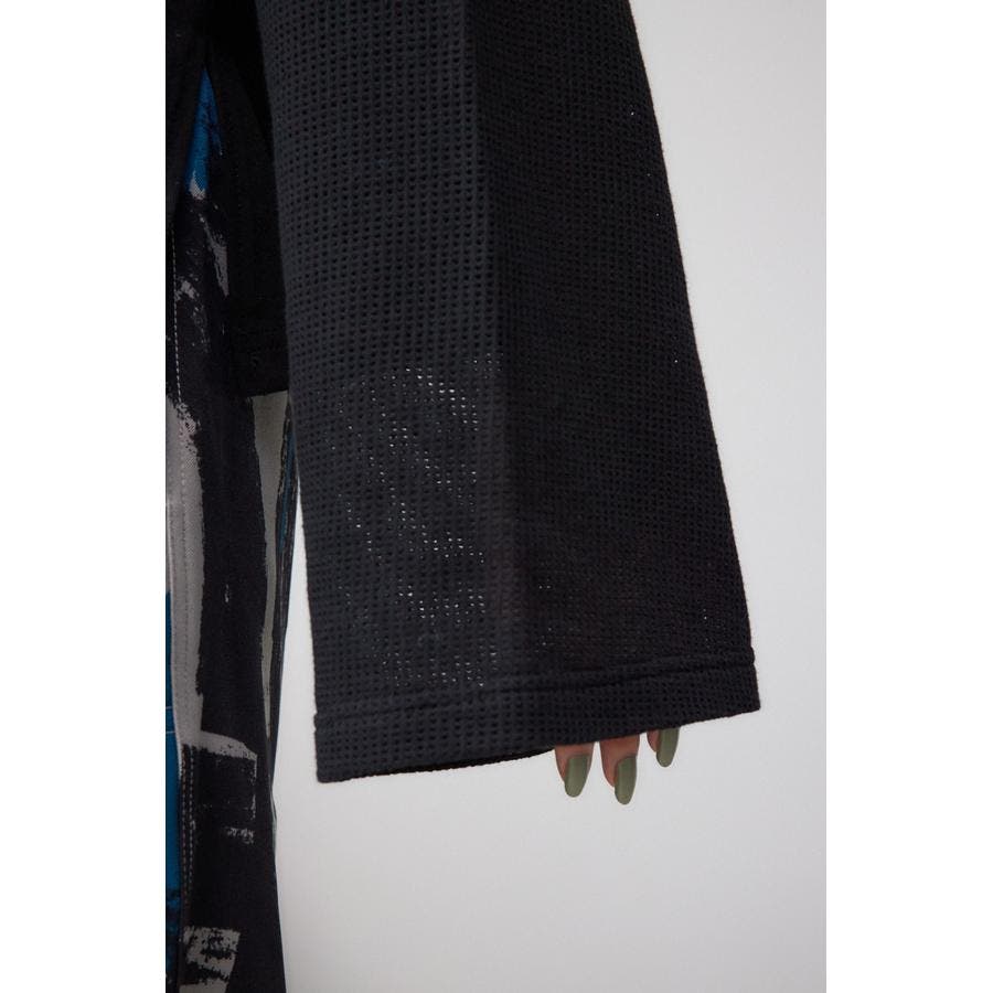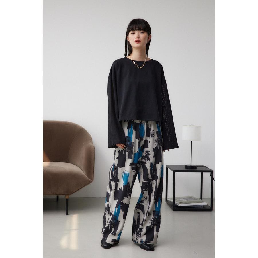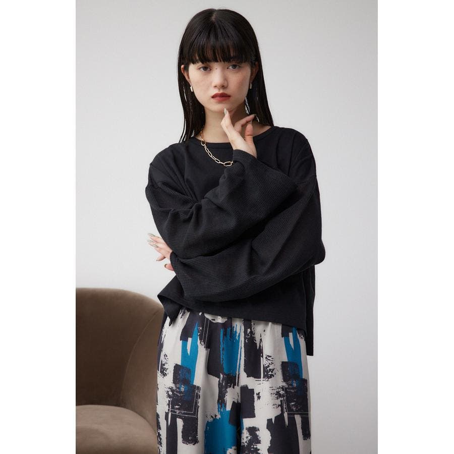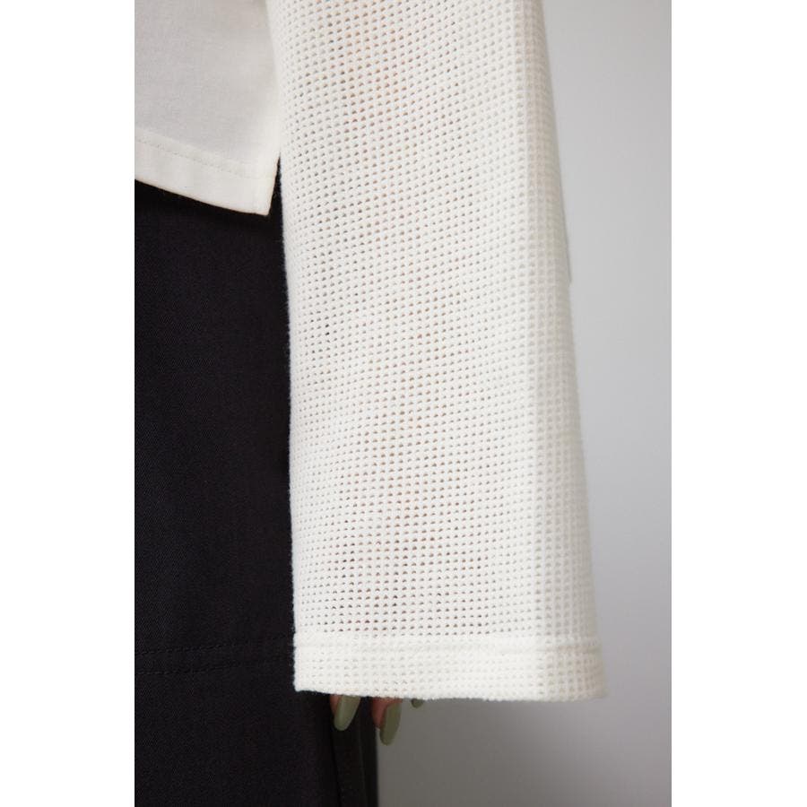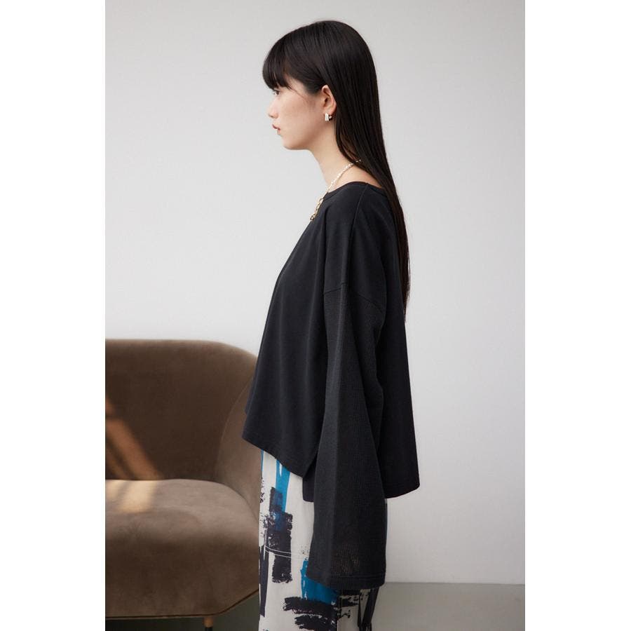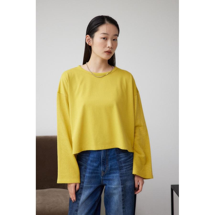 袖にメッシュ生地を使用した異素材使いのトップスです。