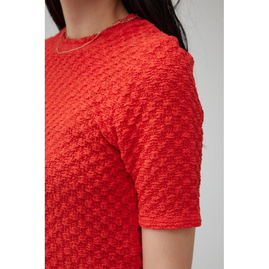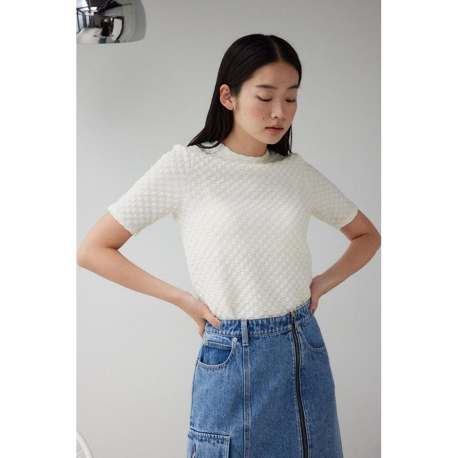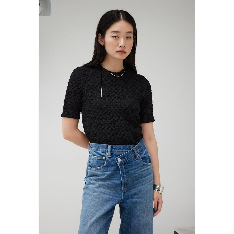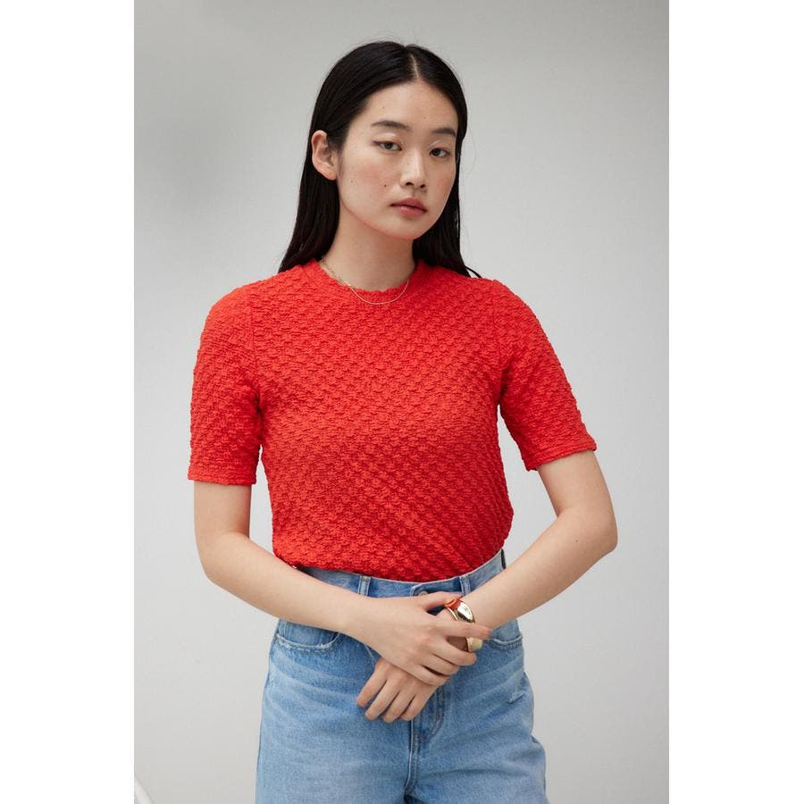 ■商品ディティール:ポイント:凹凸感のあるカットソー素材。1枚義で様になり、キレイ目ボトムスの他、カジュアルなデニムなどにも相性抜群です。