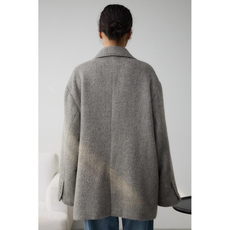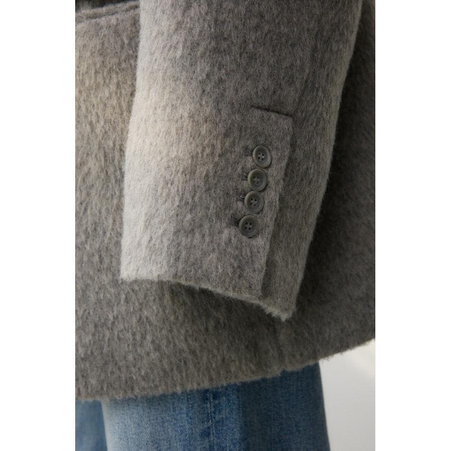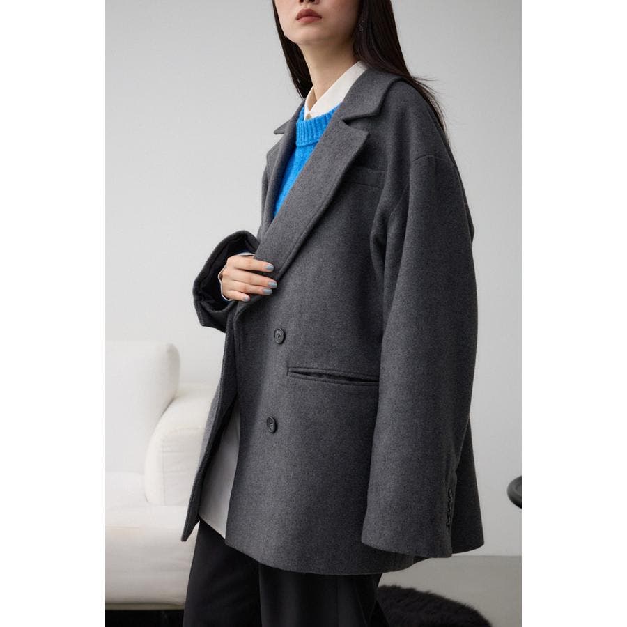 オーバーサイズでハンサムな印象のデザインですが、大きめに設定した襟元が女性らしいふんわりとした印象に魅せてくれます。