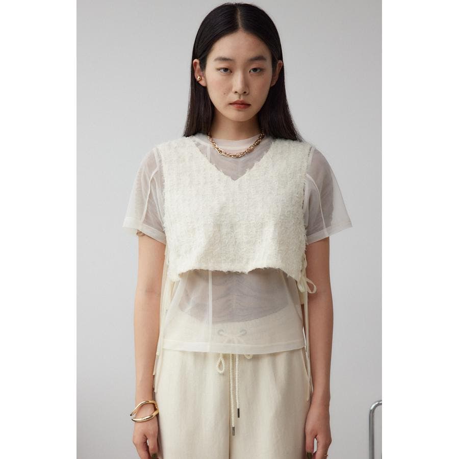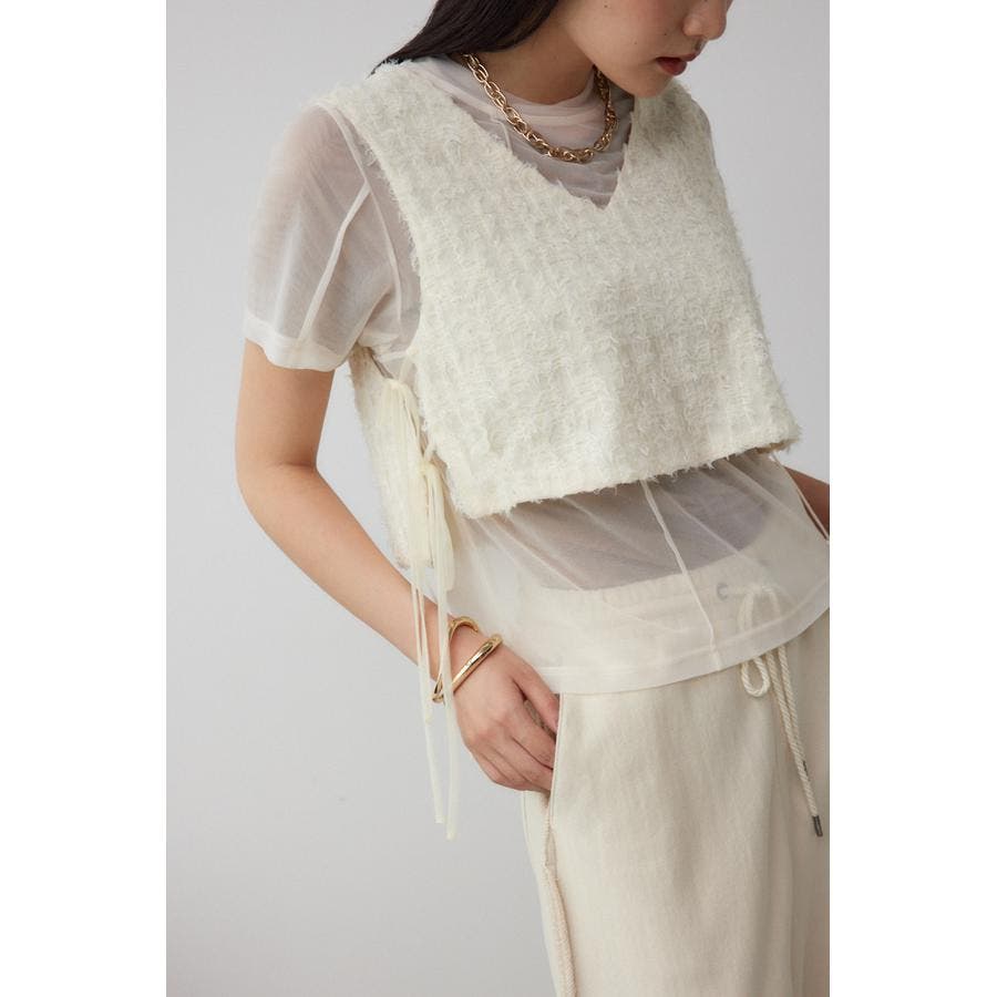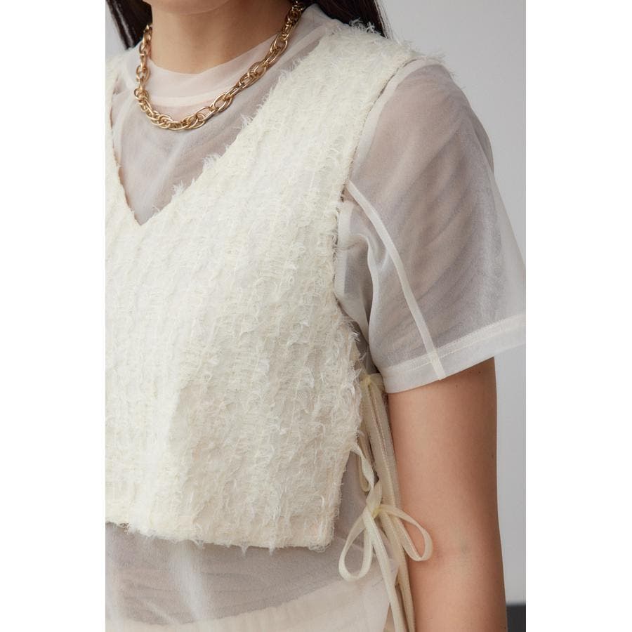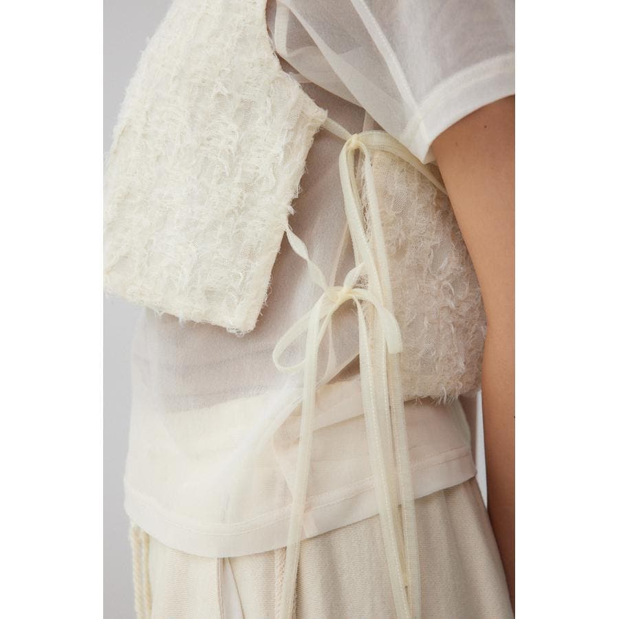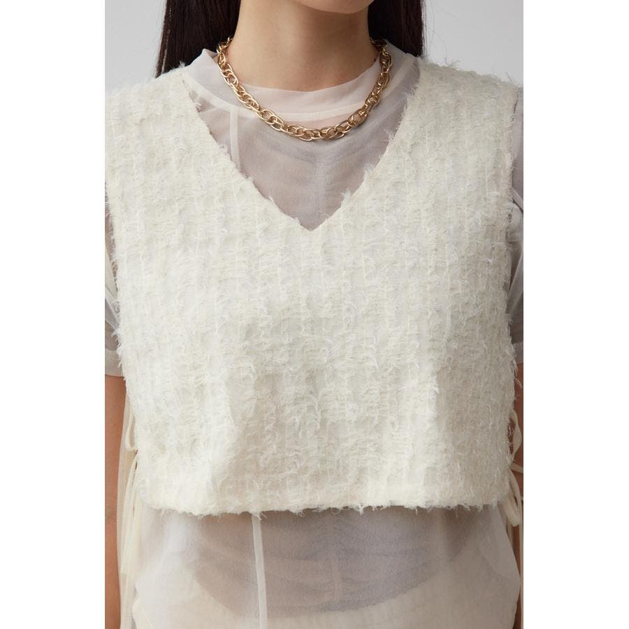 透け感のあるフェザーチュール素材を使用したクロップドベストです。