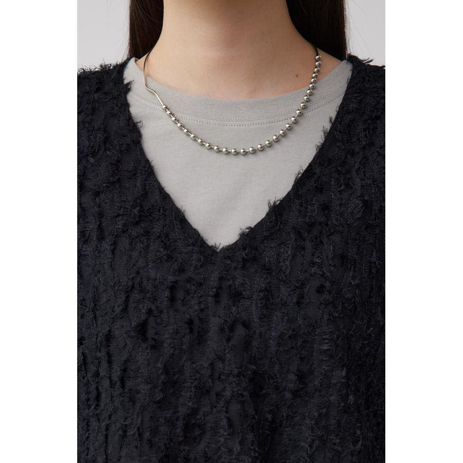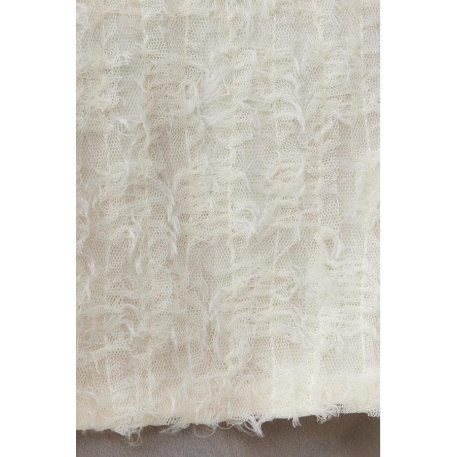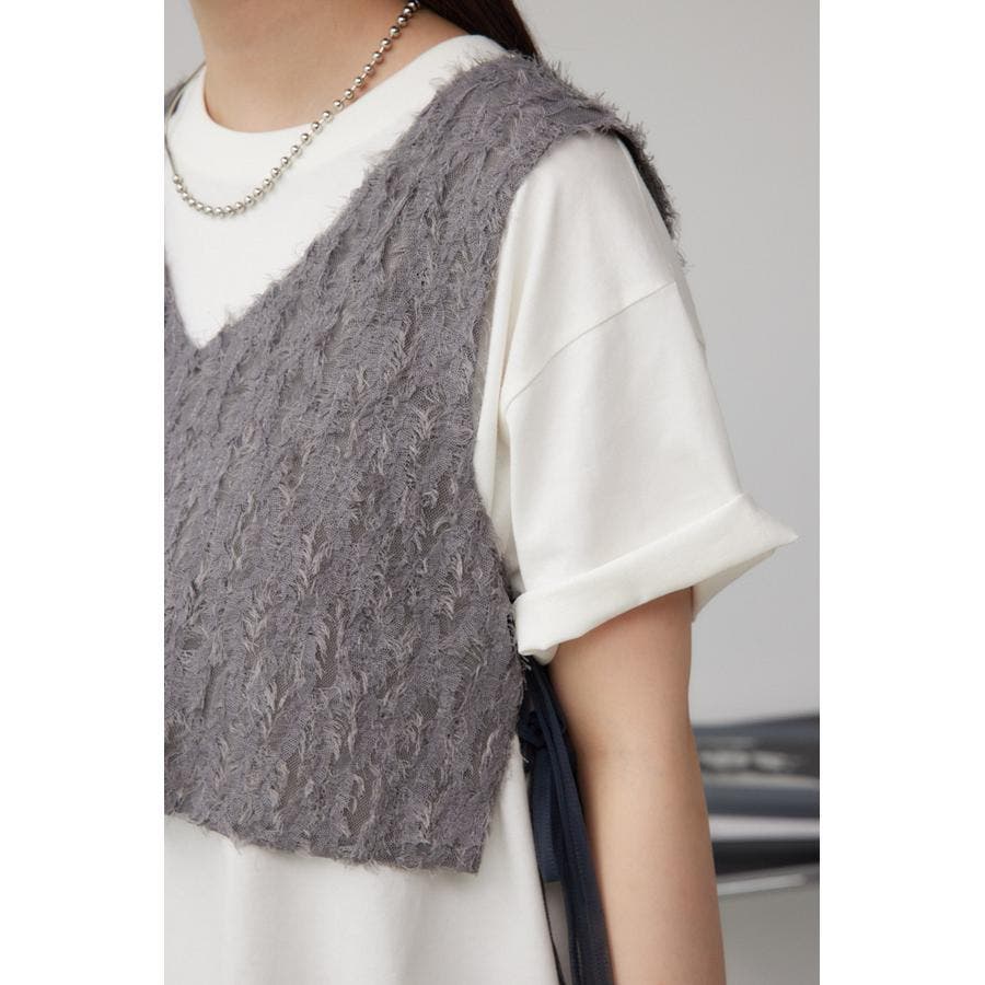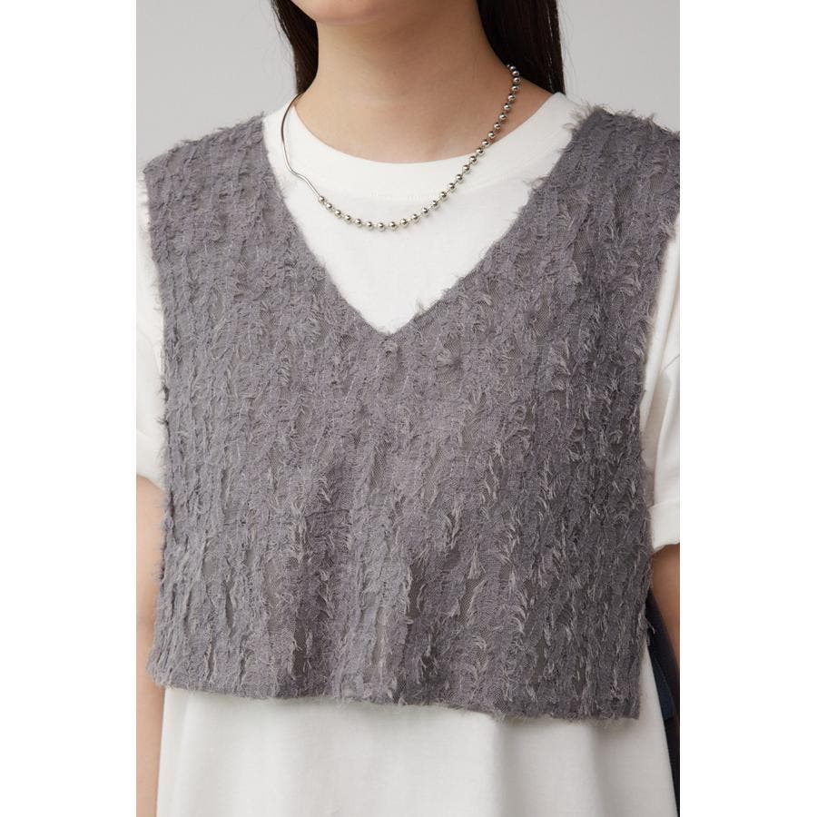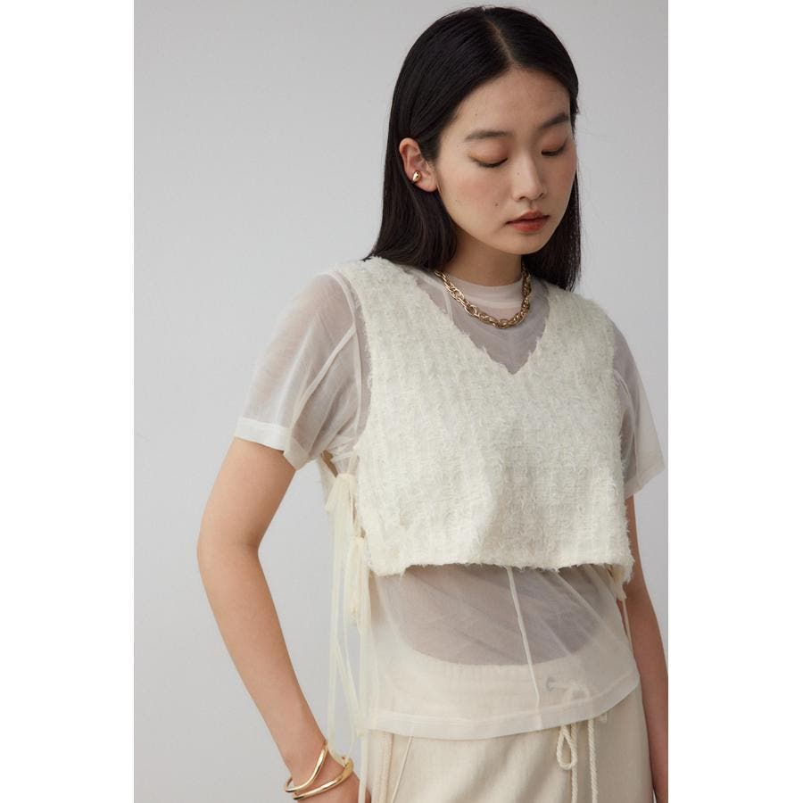 透け感のあるフェザーチュール素材を使用したクロップドベストです。