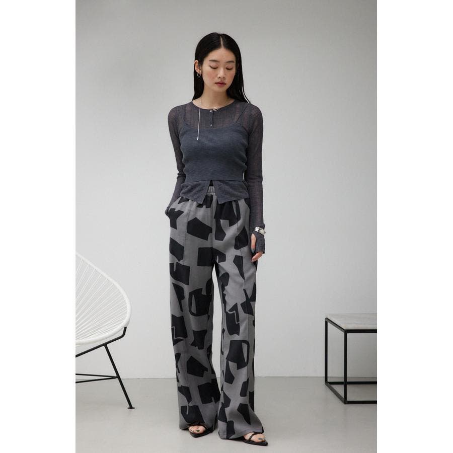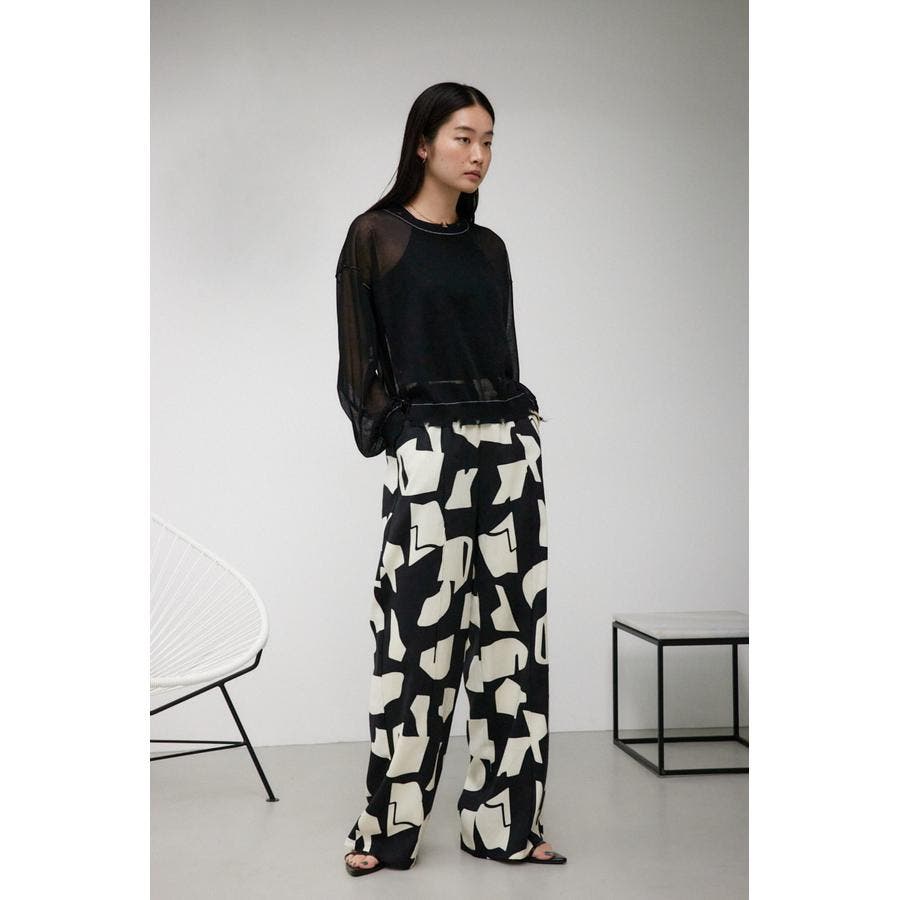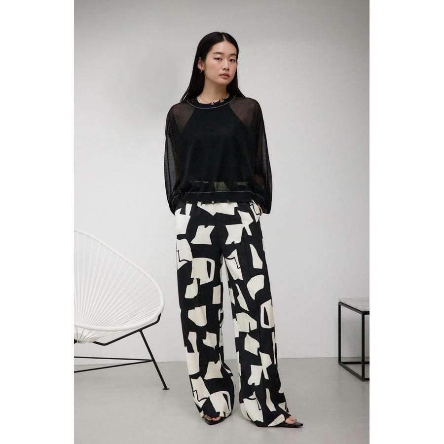 ・一枚で主役になる柄パンツは、シンプルなトップスはもちろん、シアー素材のTシャツやビスチェをレイヤードするだけでトレンドライクな印象に仕上がります。